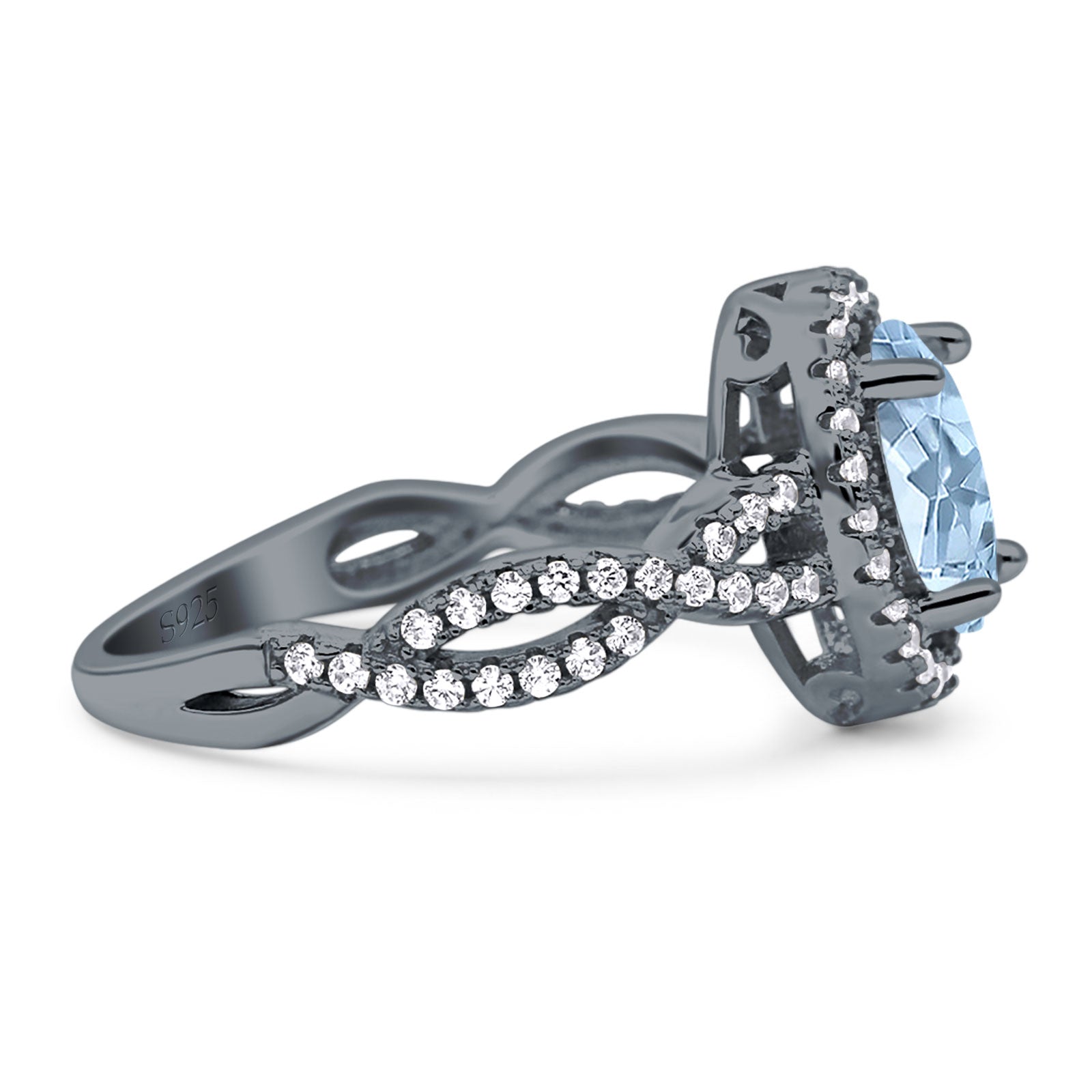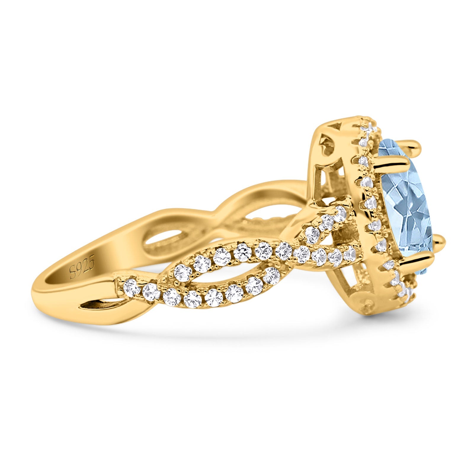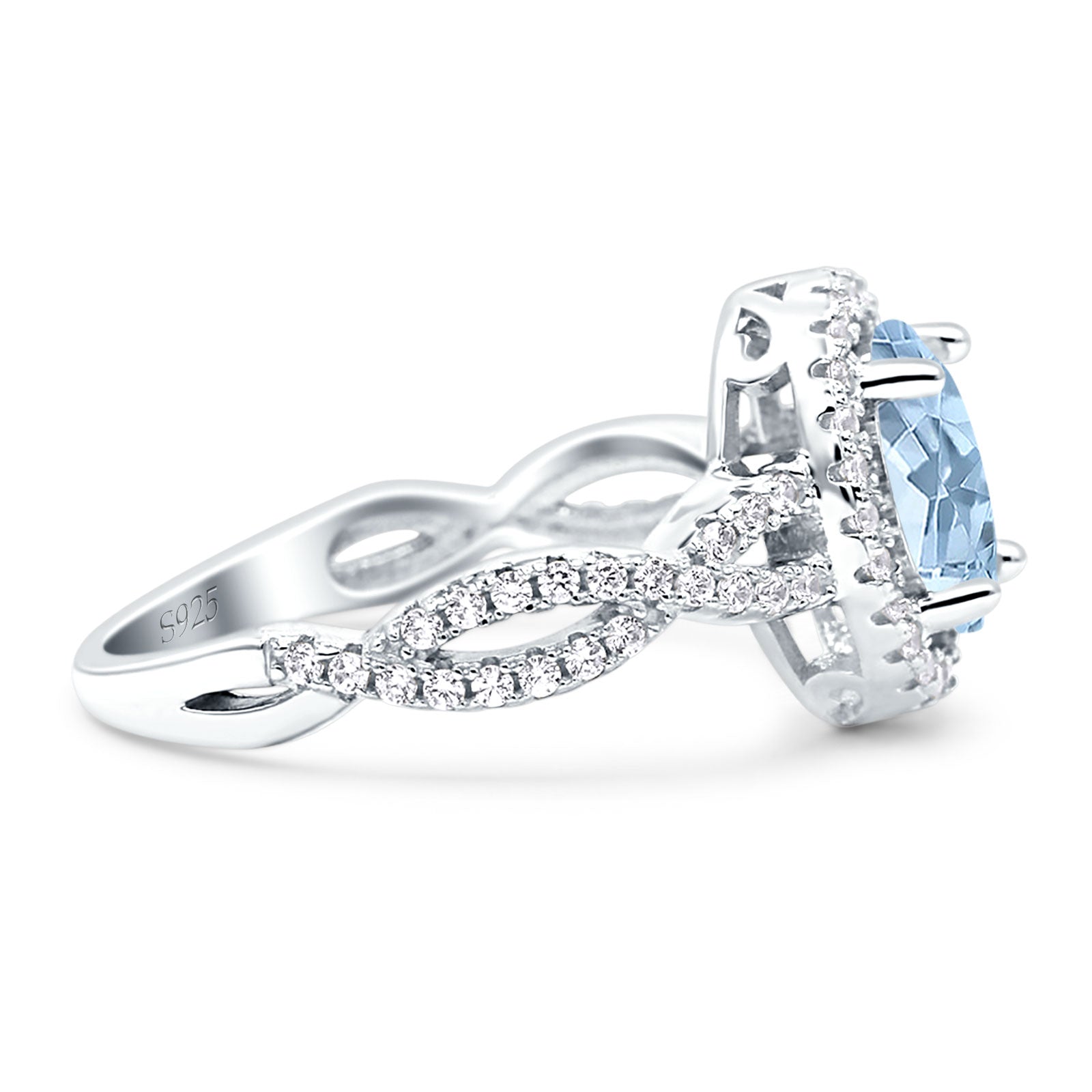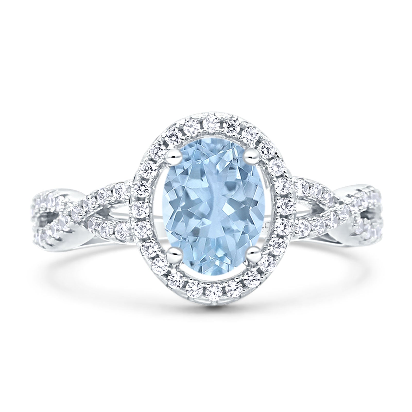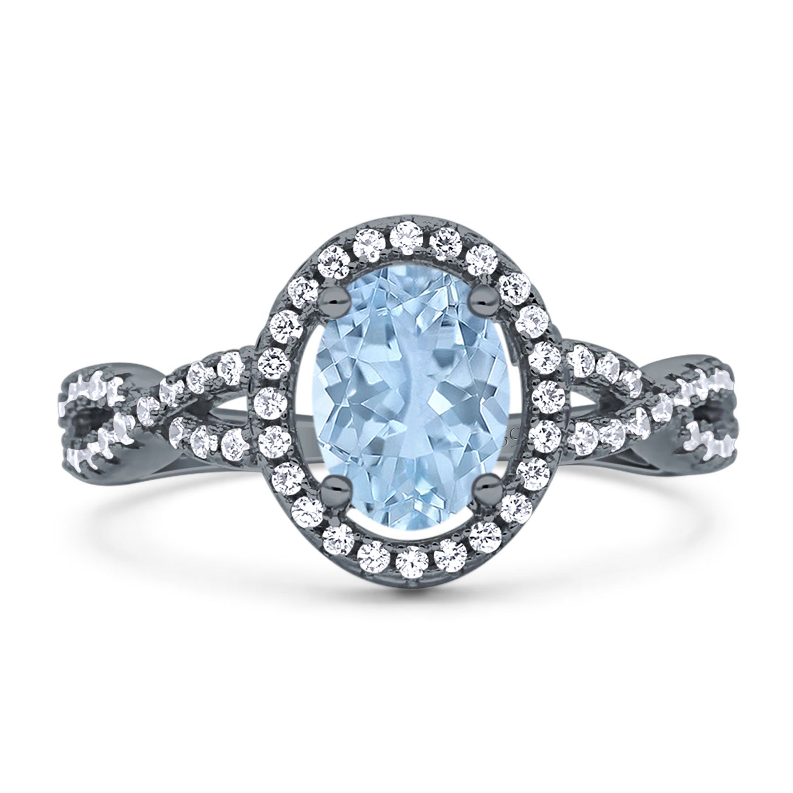 Vintage Style Oval Natural Aquamarine Infinity Shank Ring 925 Sterling Silver