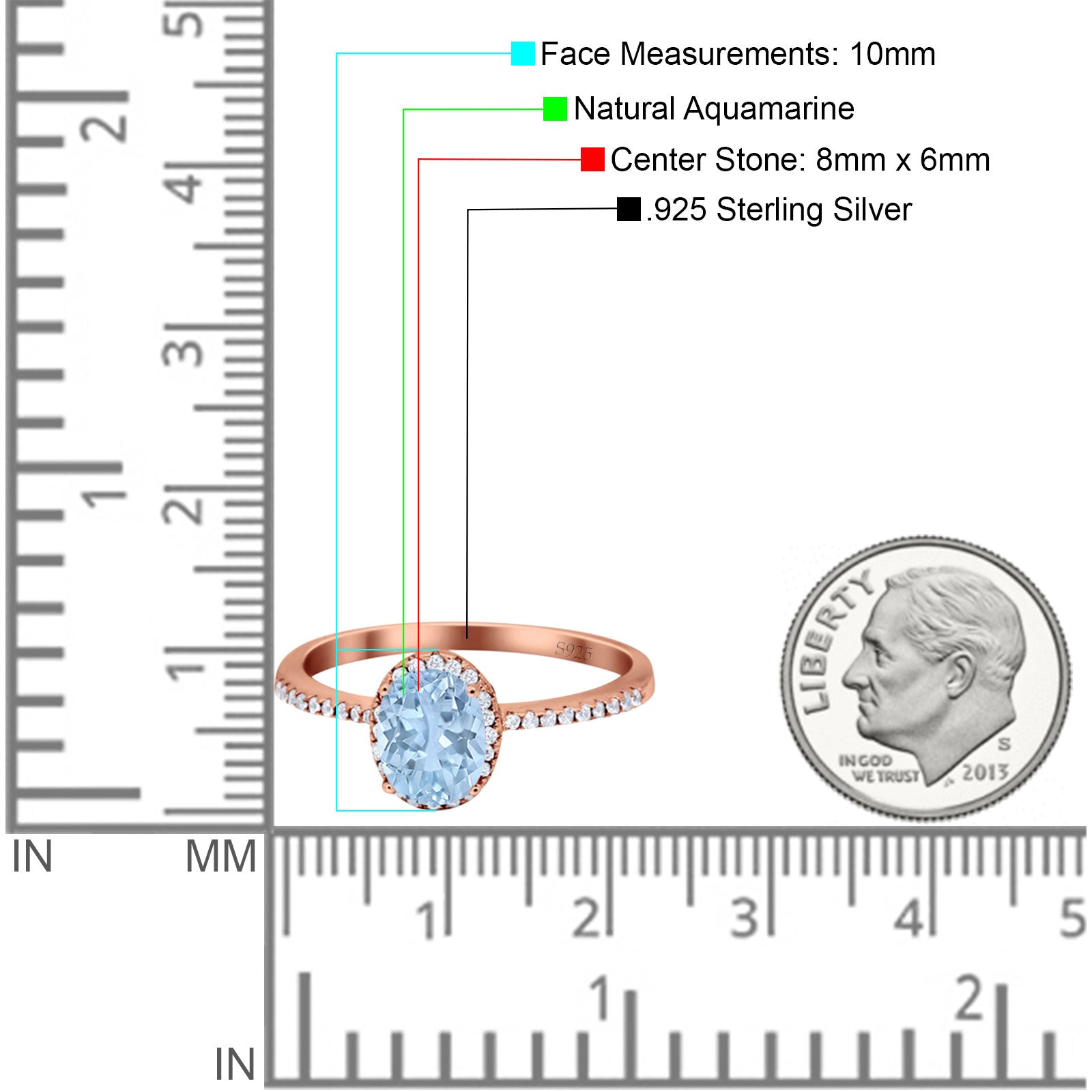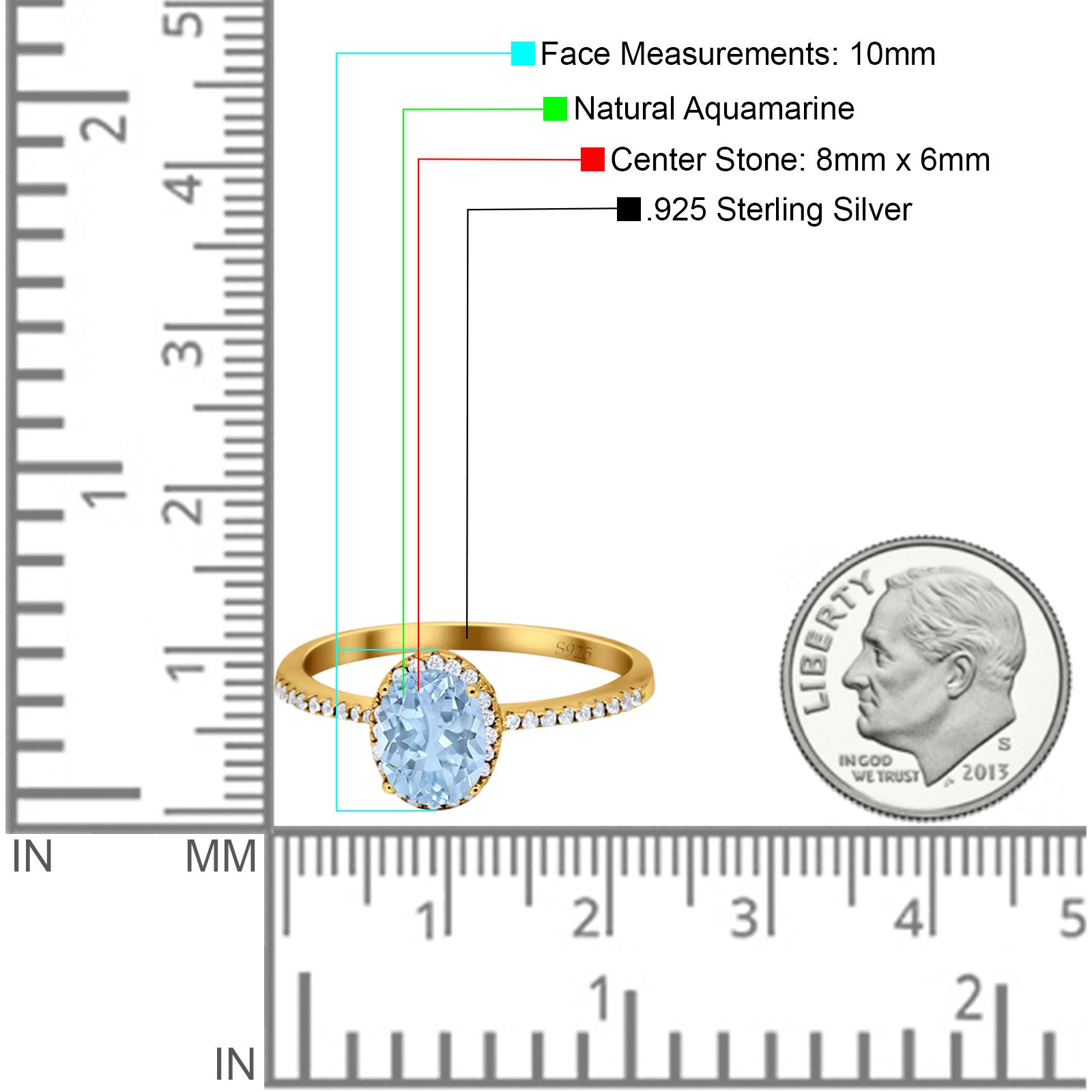 Vintage Style Oval Natural Aquamarine Solitaire Ring 925 Sterling Silver