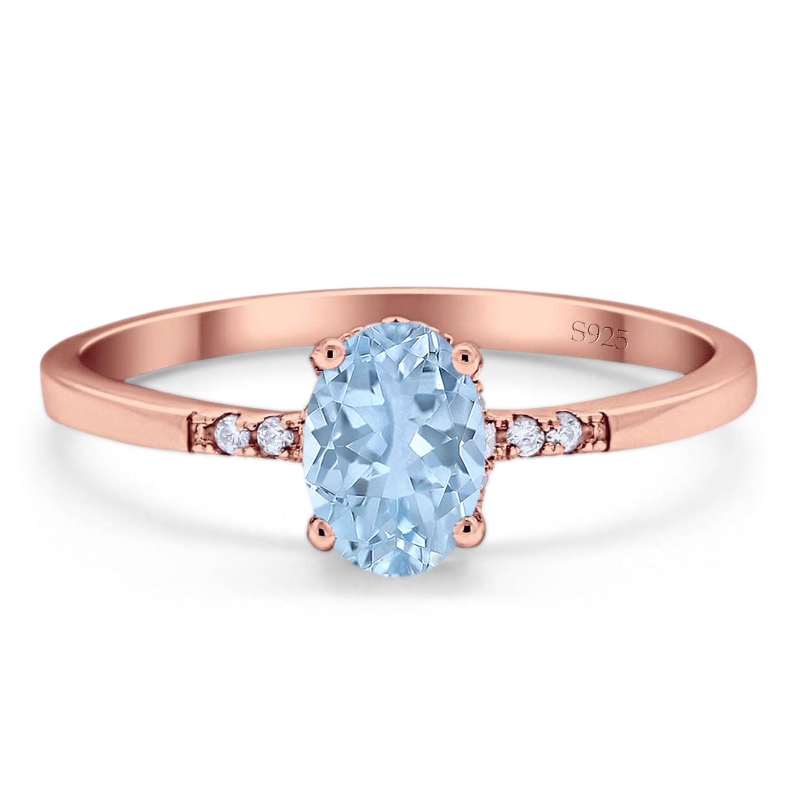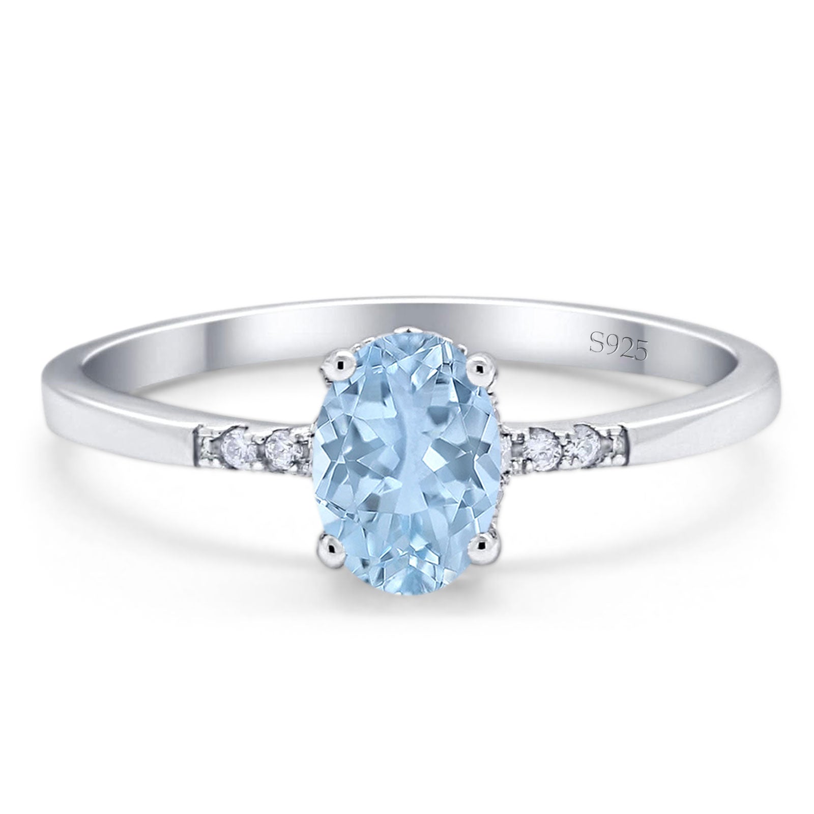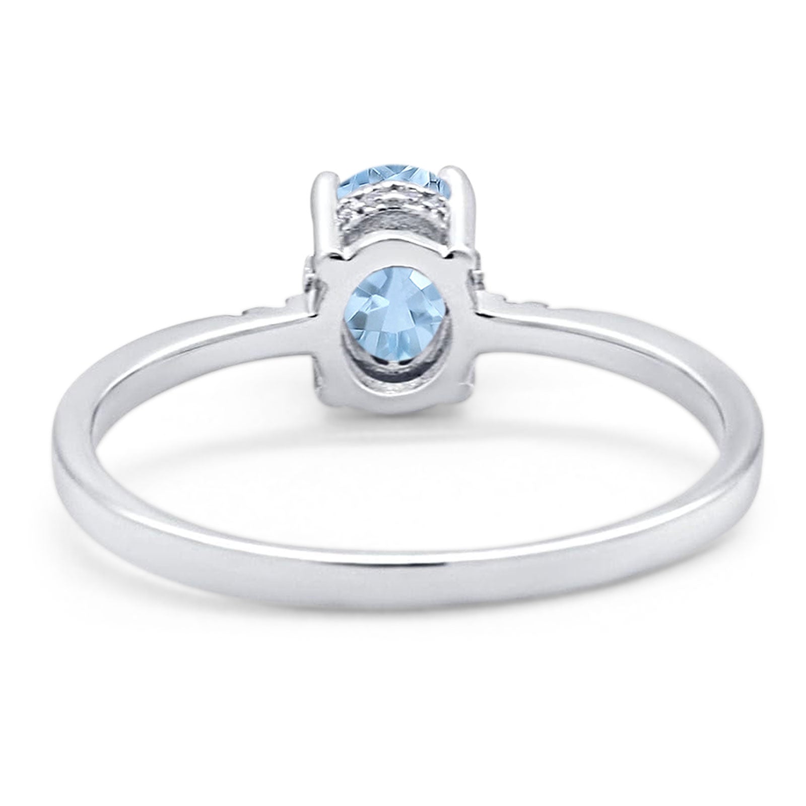 Vintage Style Oval Natural Aquamarine Wedding Ring 925 Sterling Silver