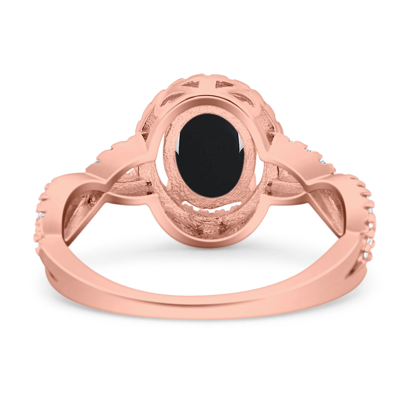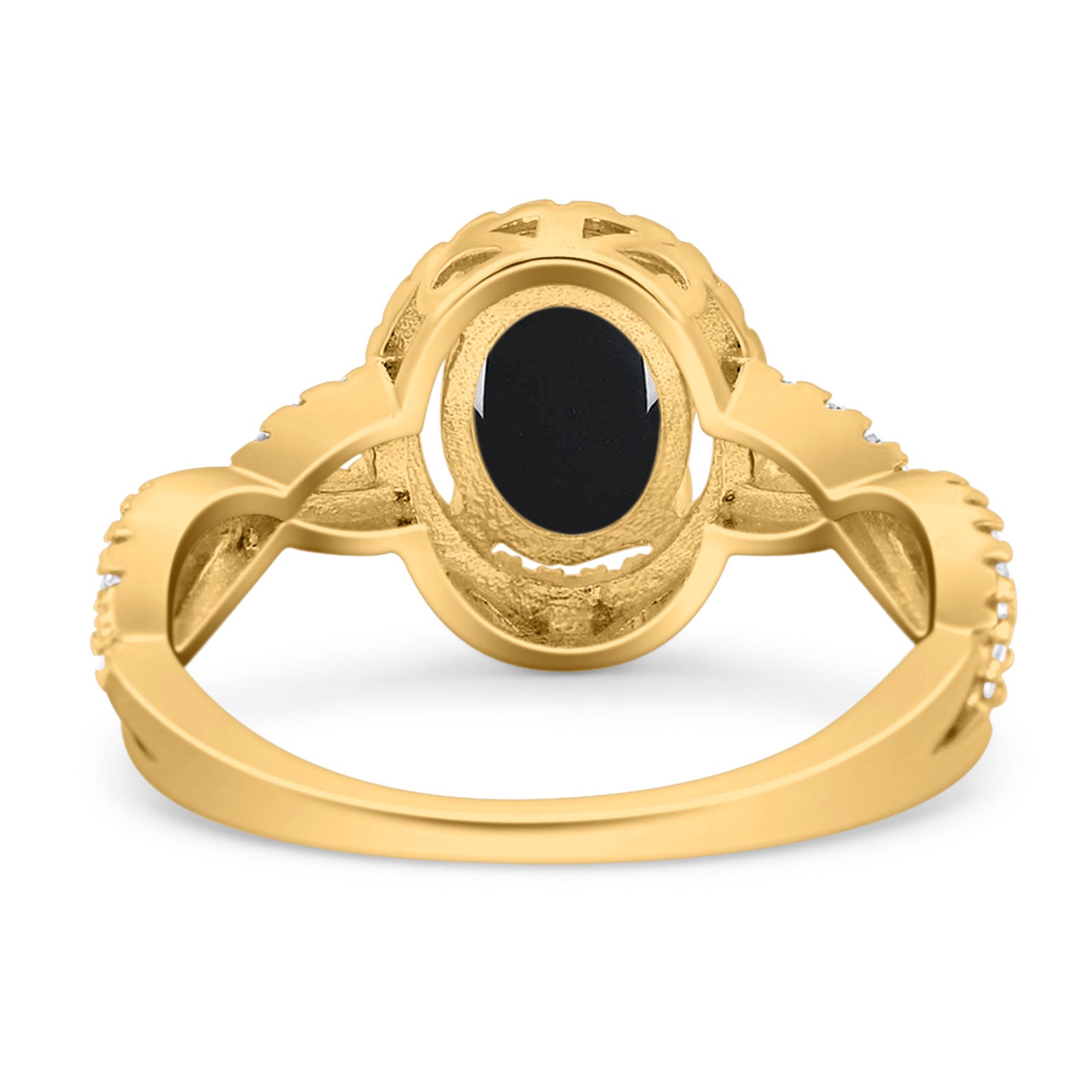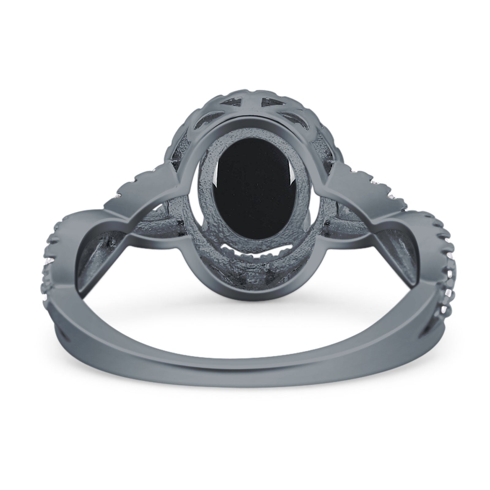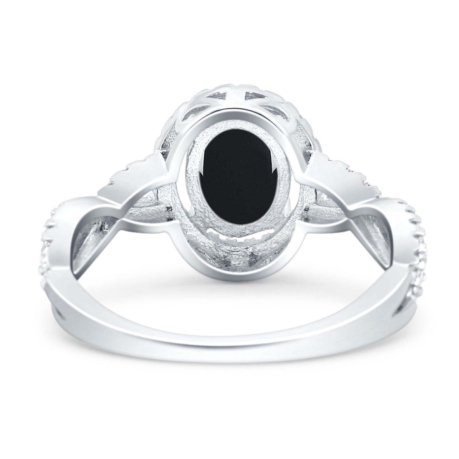 Vintage Style Oval Natural Black Onyx Infinity Shank Ring 925 Sterling Silver