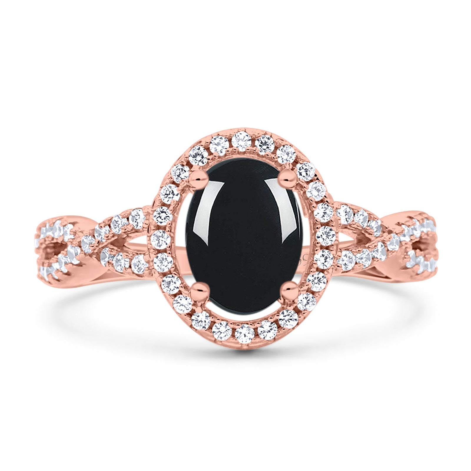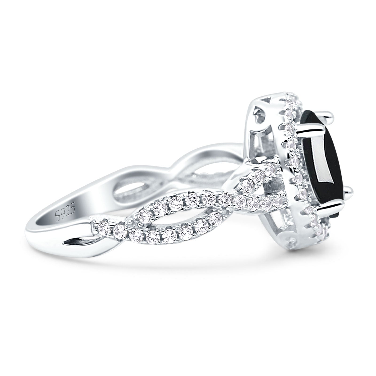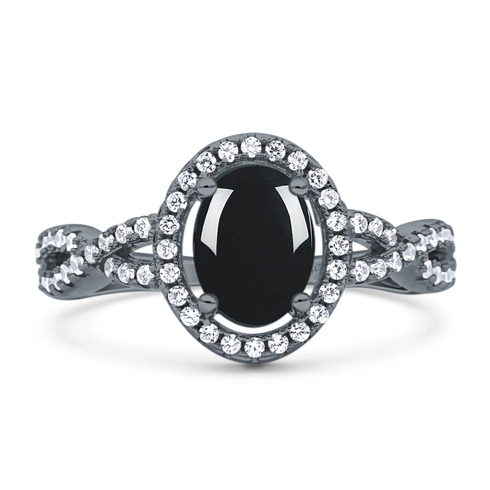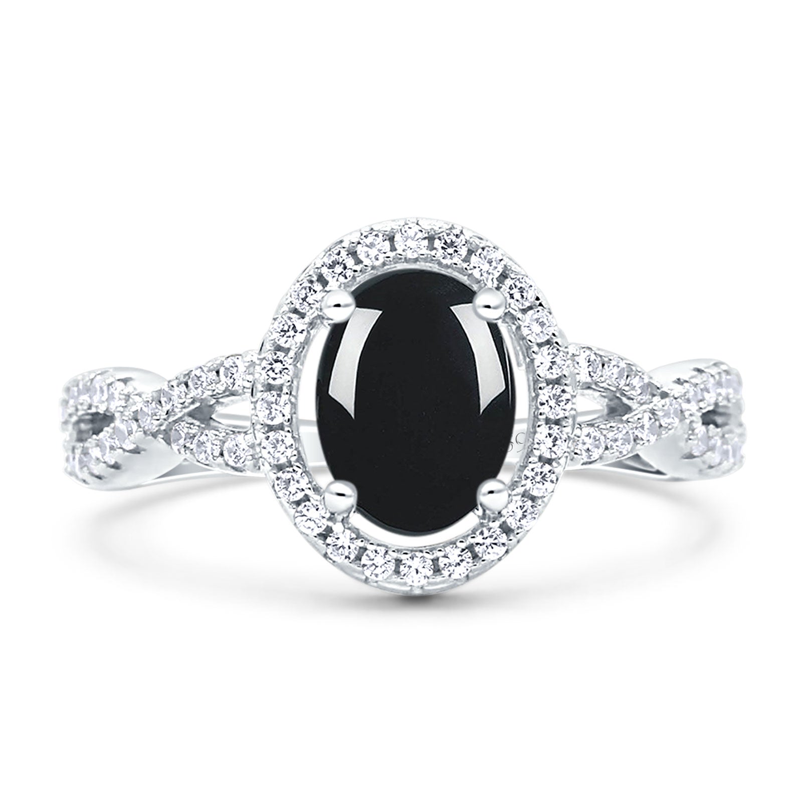 Vintage Style Oval Natural Black Onyx Infinity Shank Ring 925 Sterling Silver