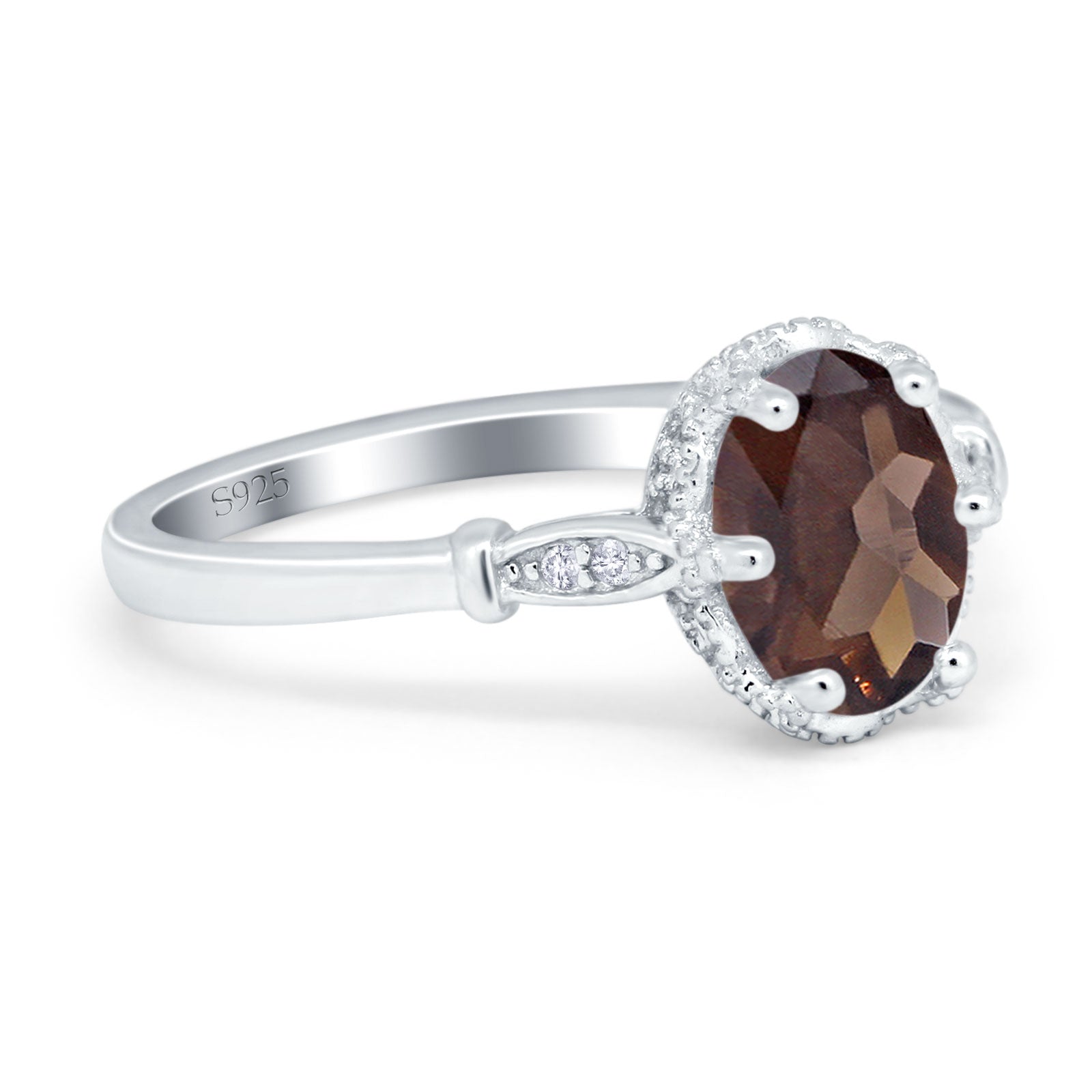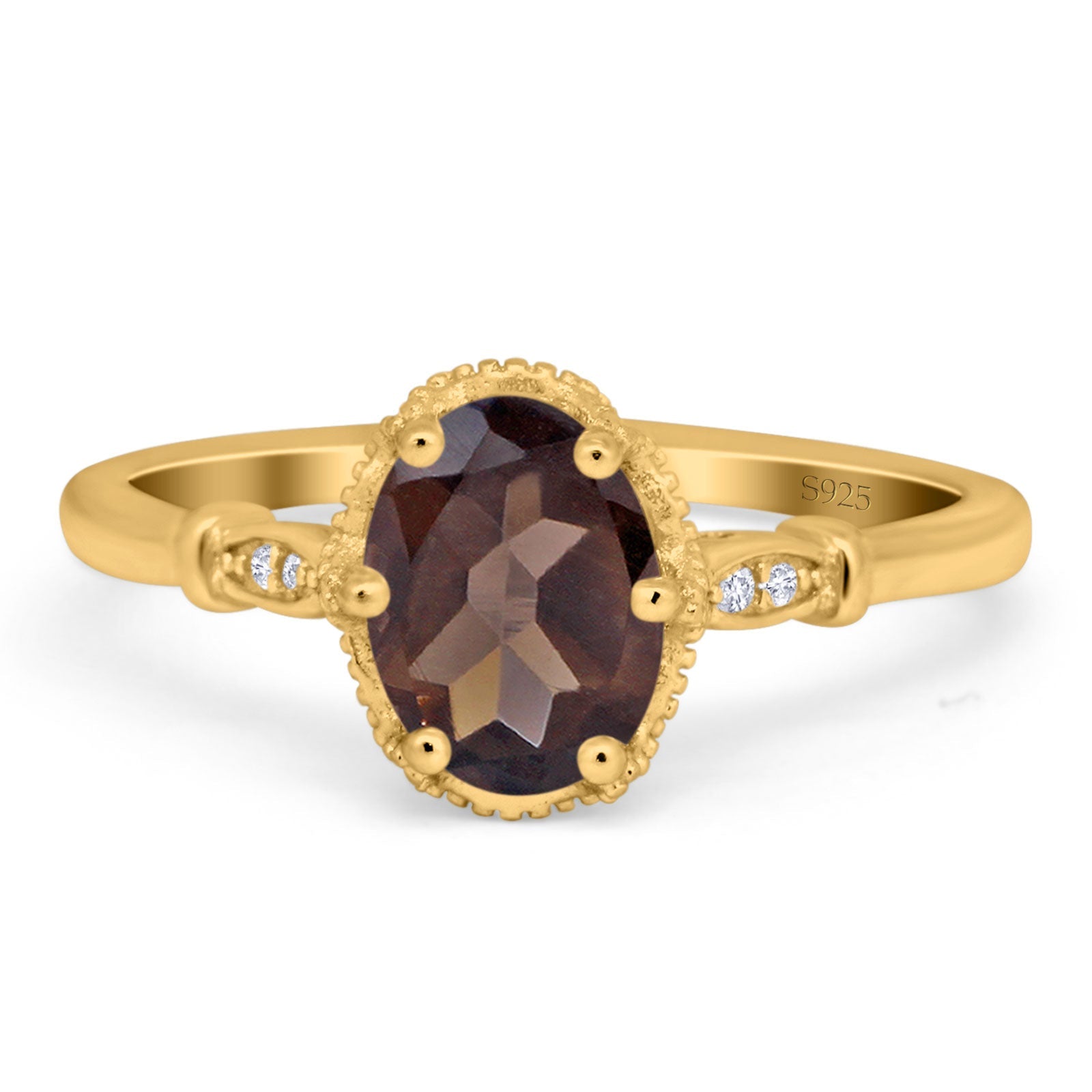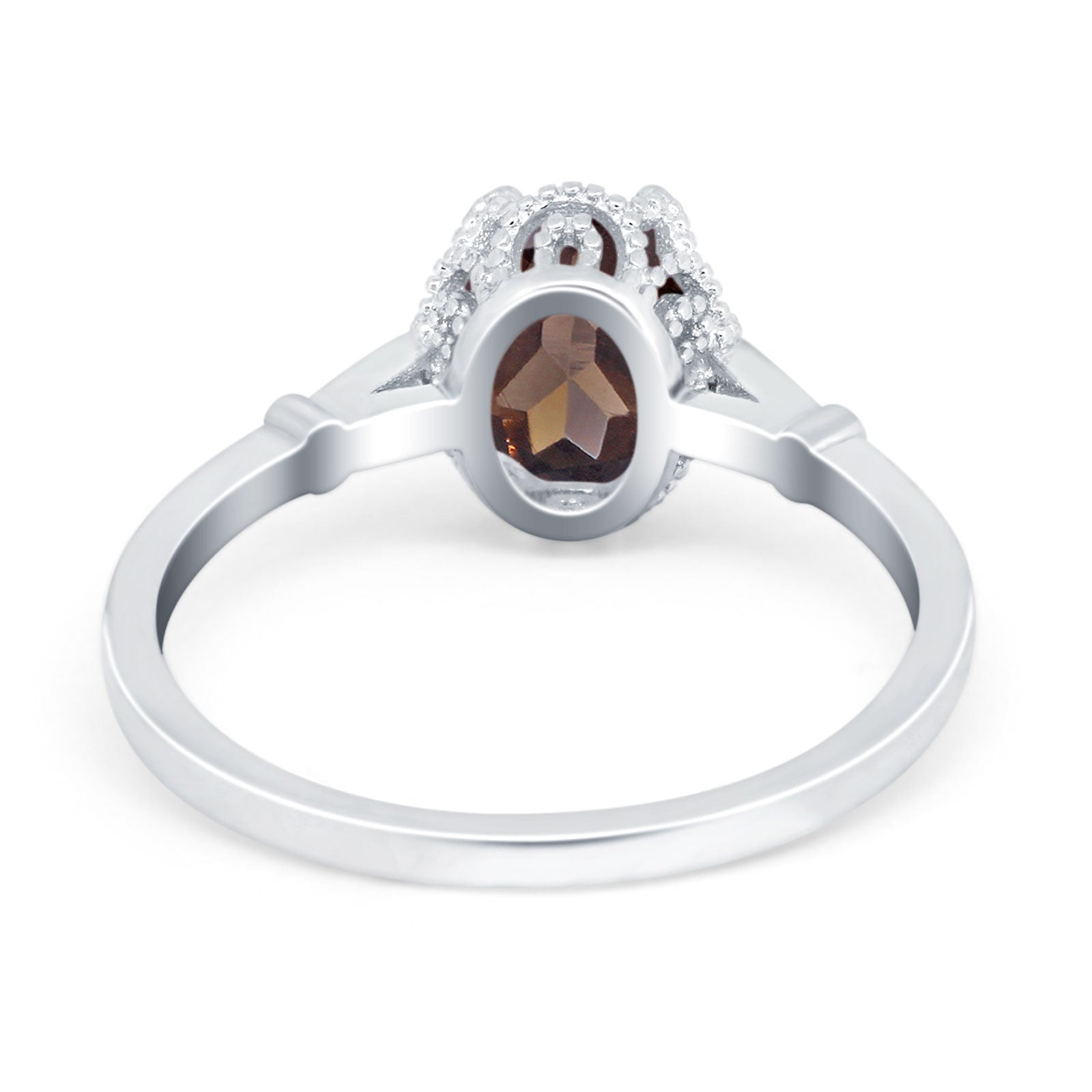Vintage Style Oval Natural Chocolate Smoky Quartz Beaded Ring 925 Sterling Silver
