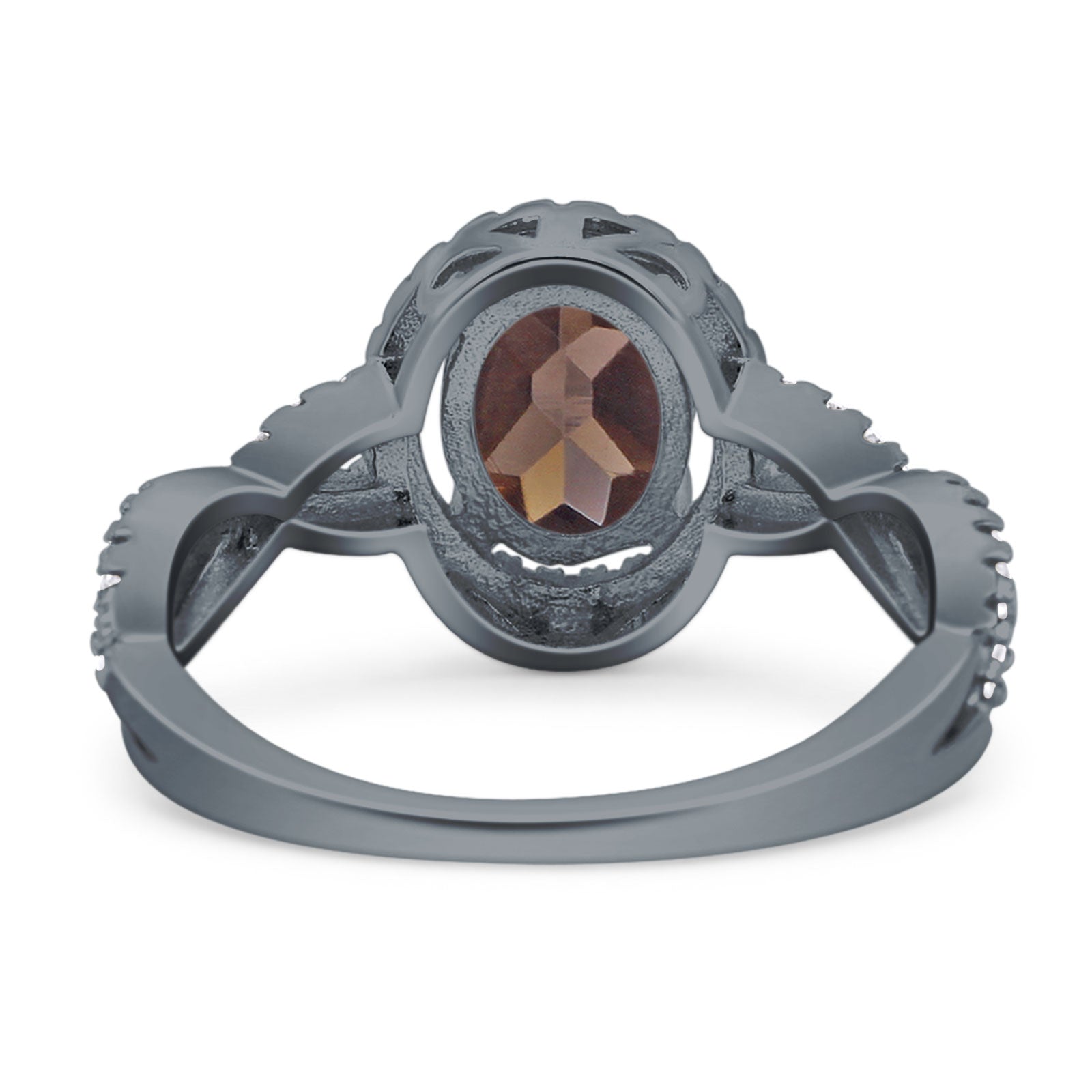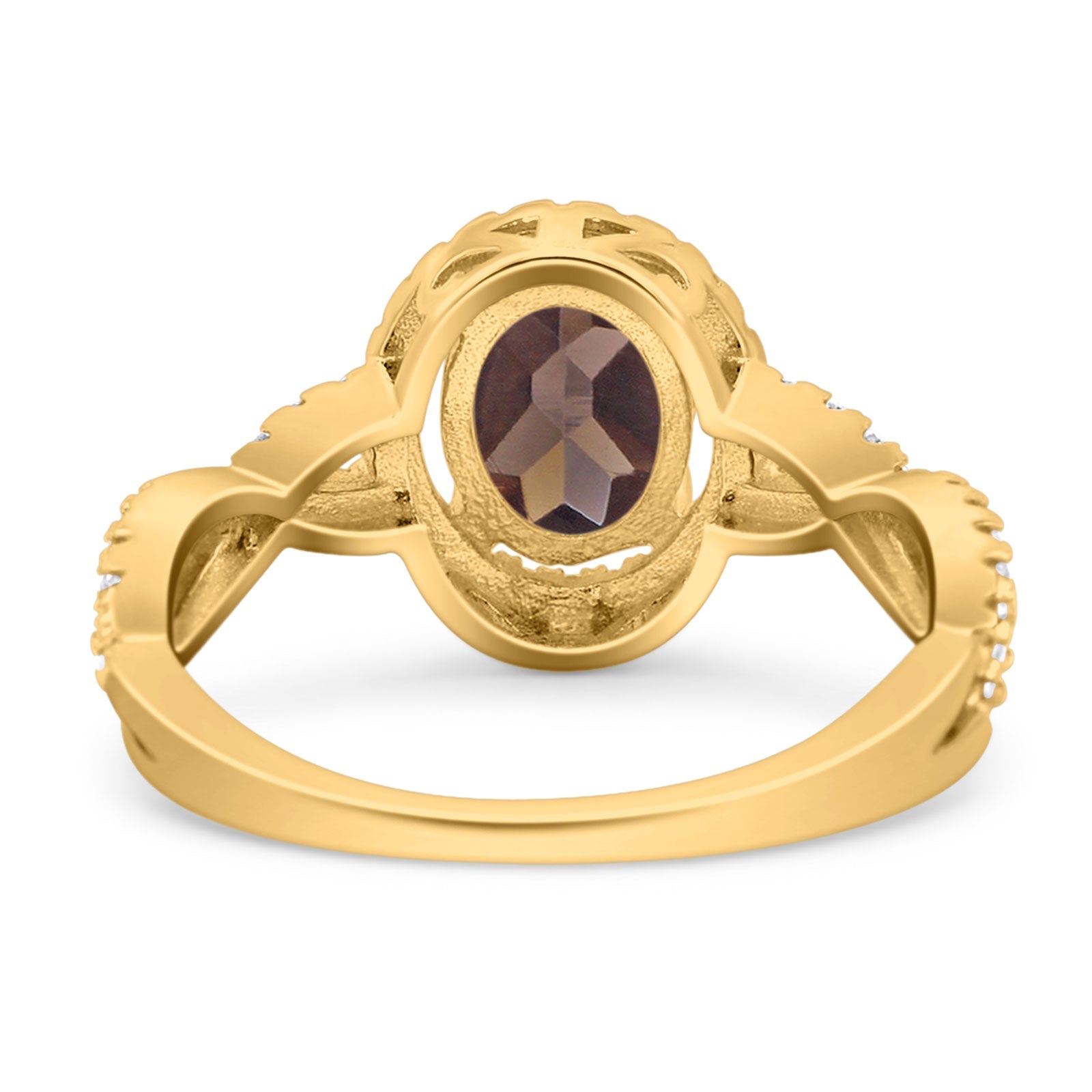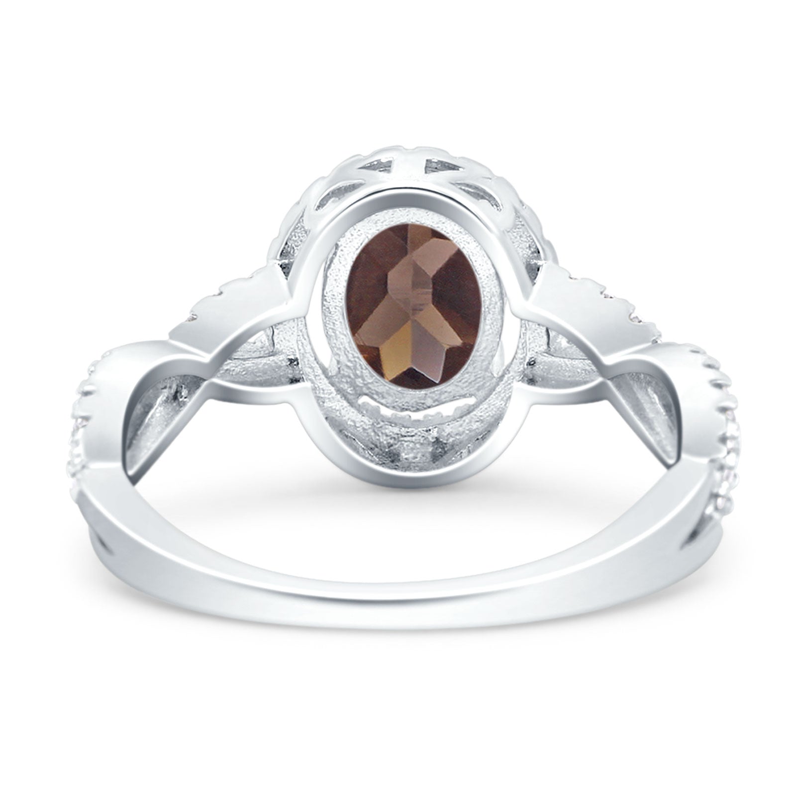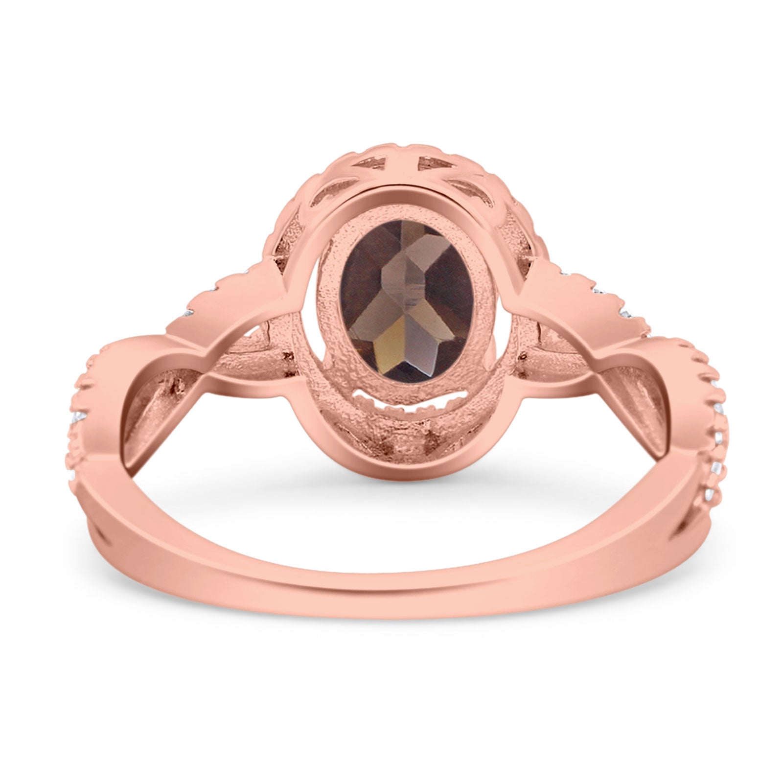 Vintage Style Oval Natural Chocolate Smoky Quartz Infinity Shank Ring 925 Sterling Silver