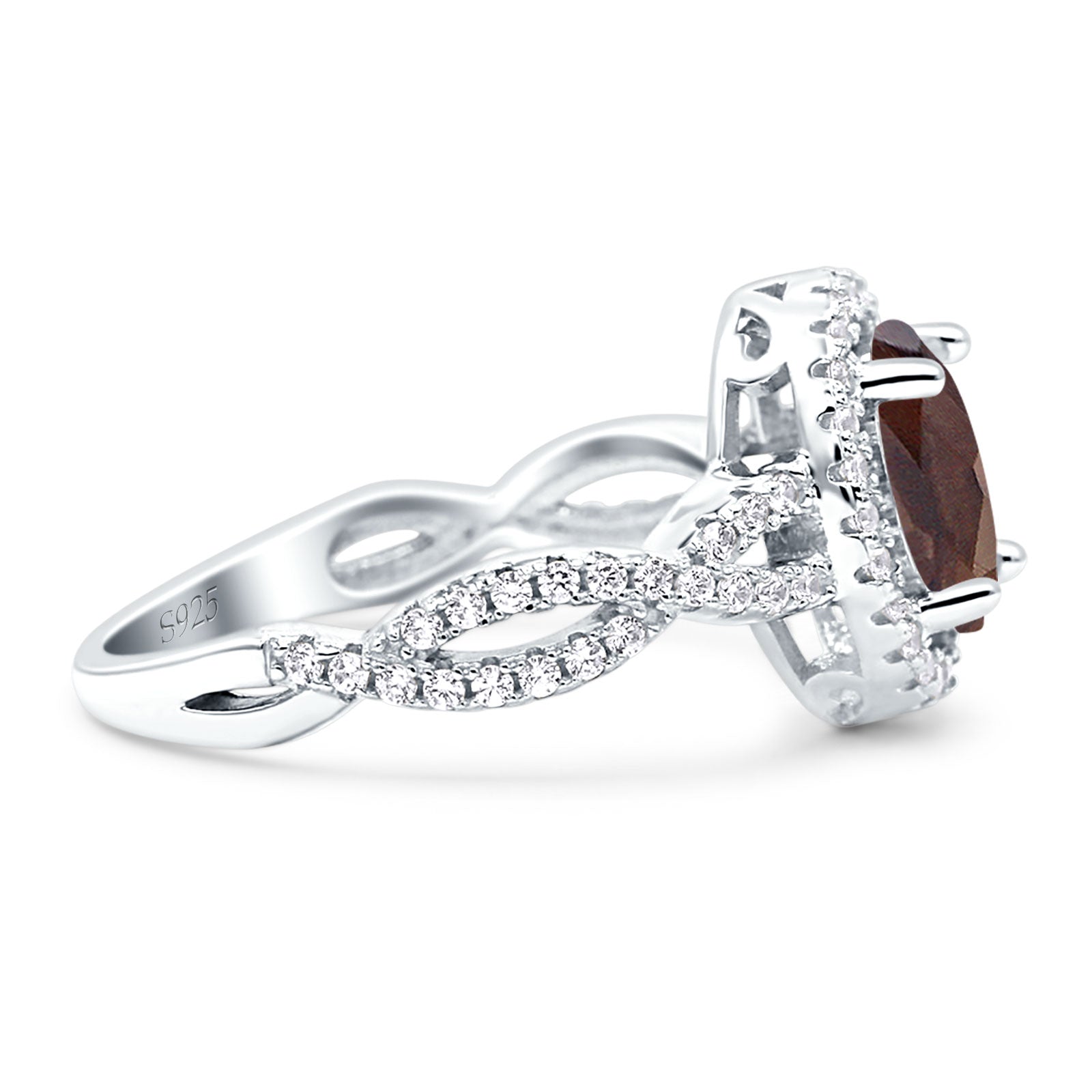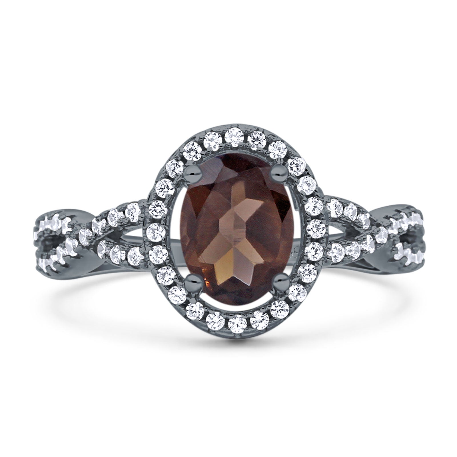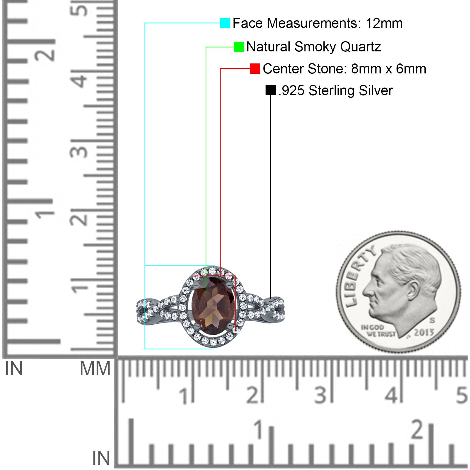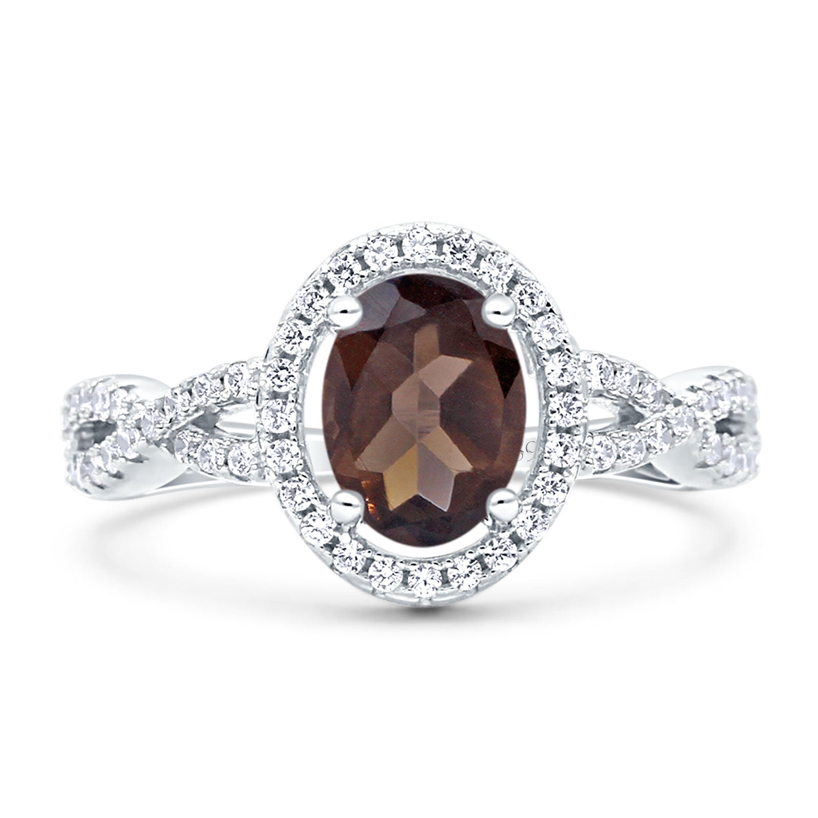 Vintage Style Oval Natural Chocolate Smoky Quartz Infinity Shank Ring 925 Sterling Silver