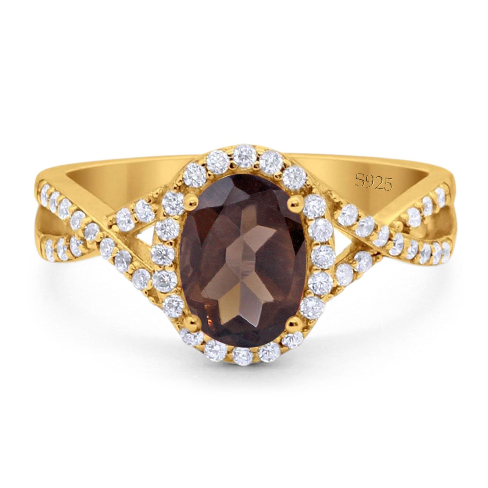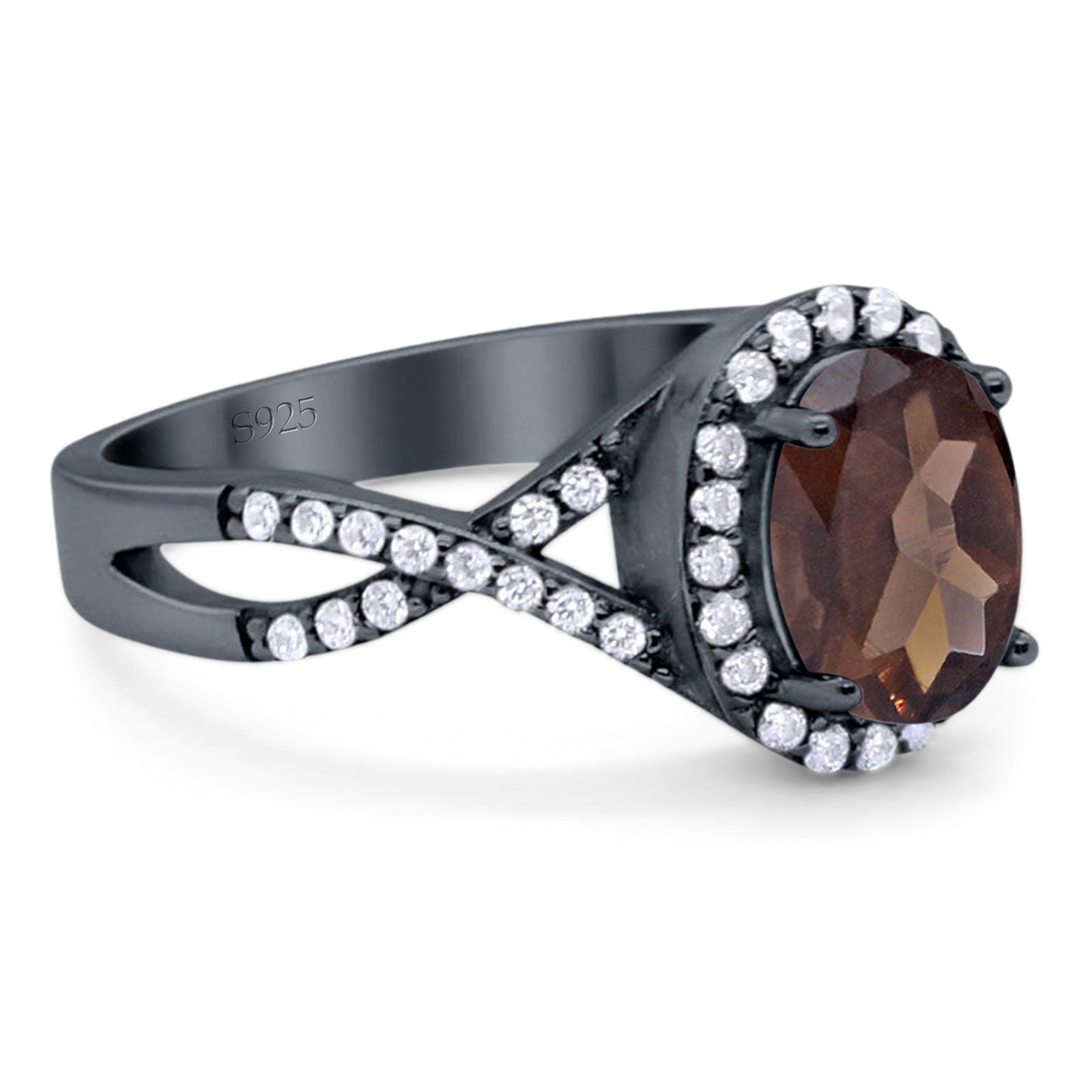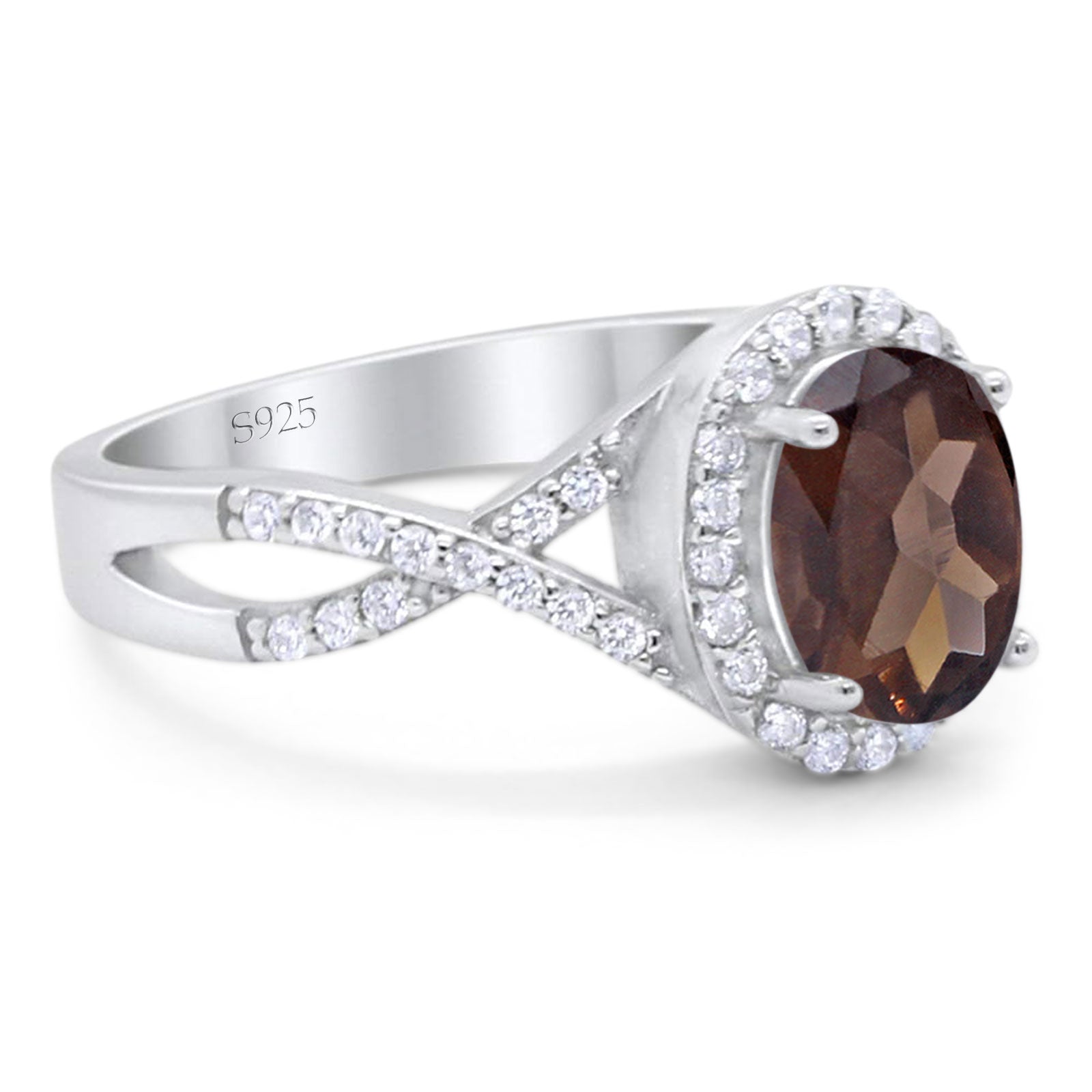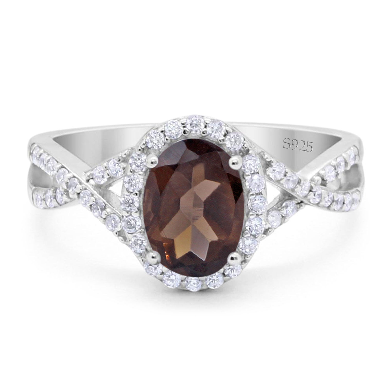 Vintage Style Oval Natural Chocolate Smoky Quartz Twisted Ring 925 Sterling Silver
