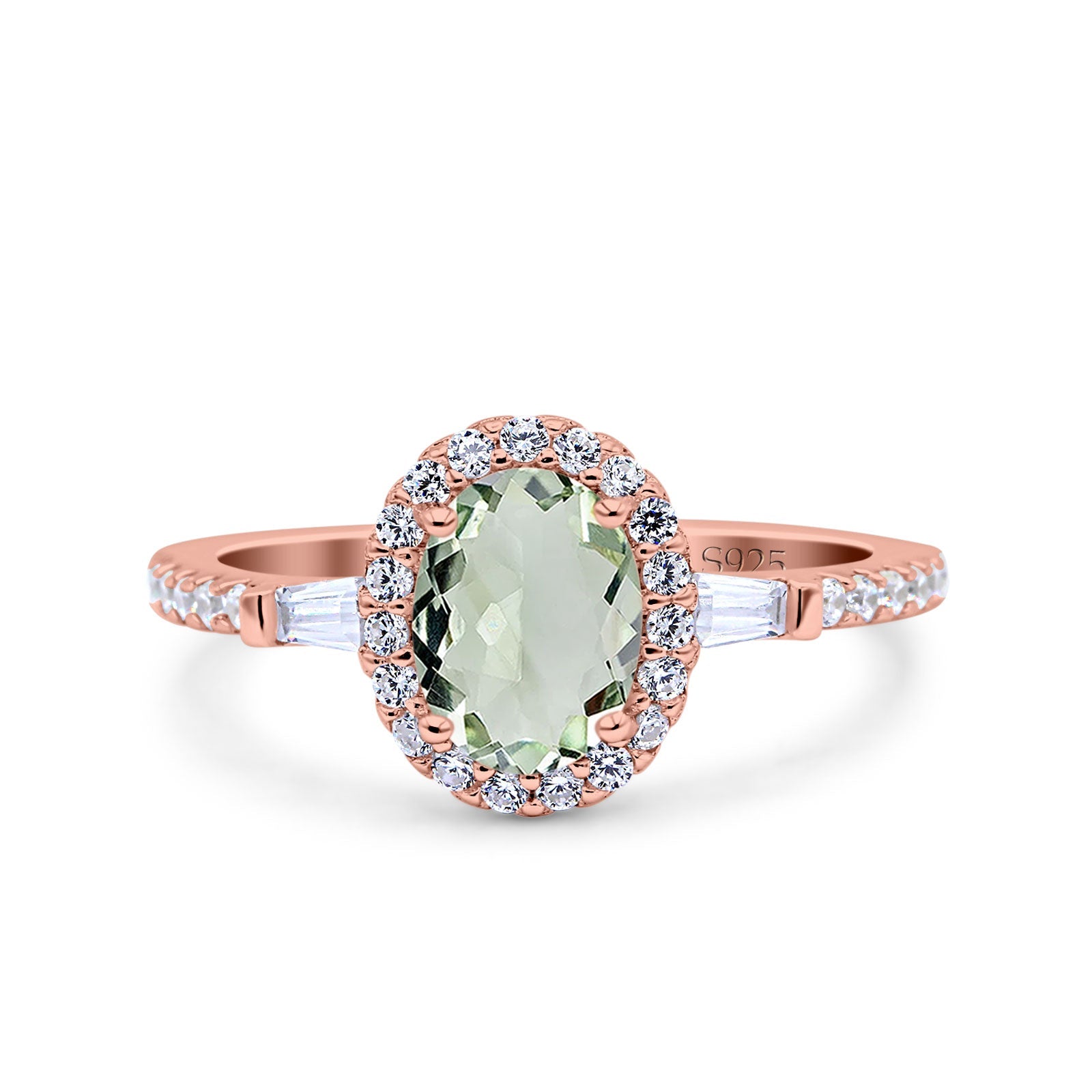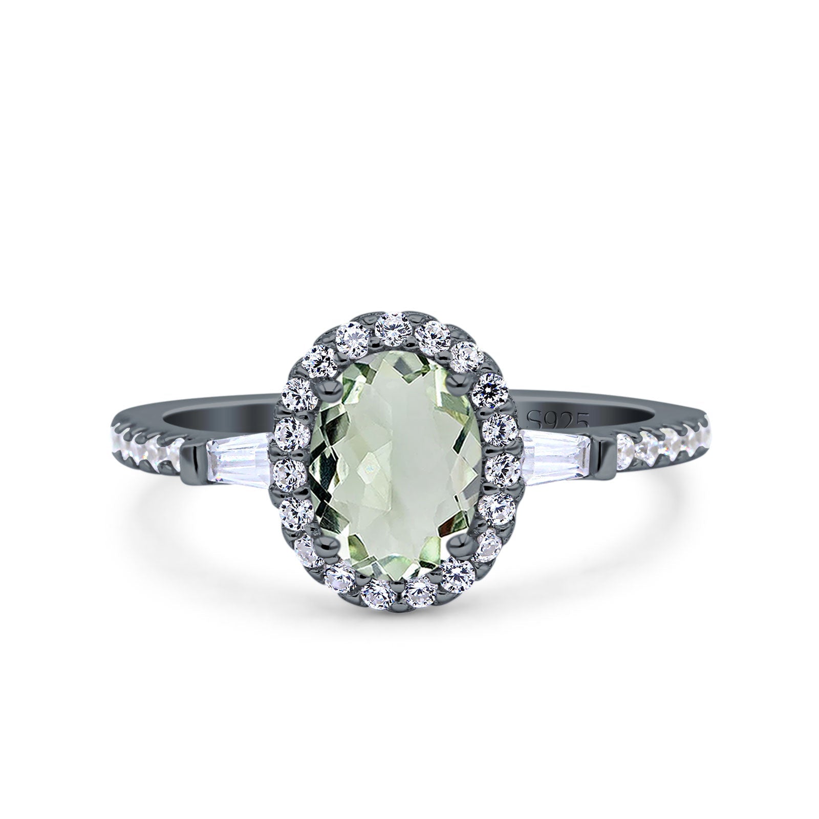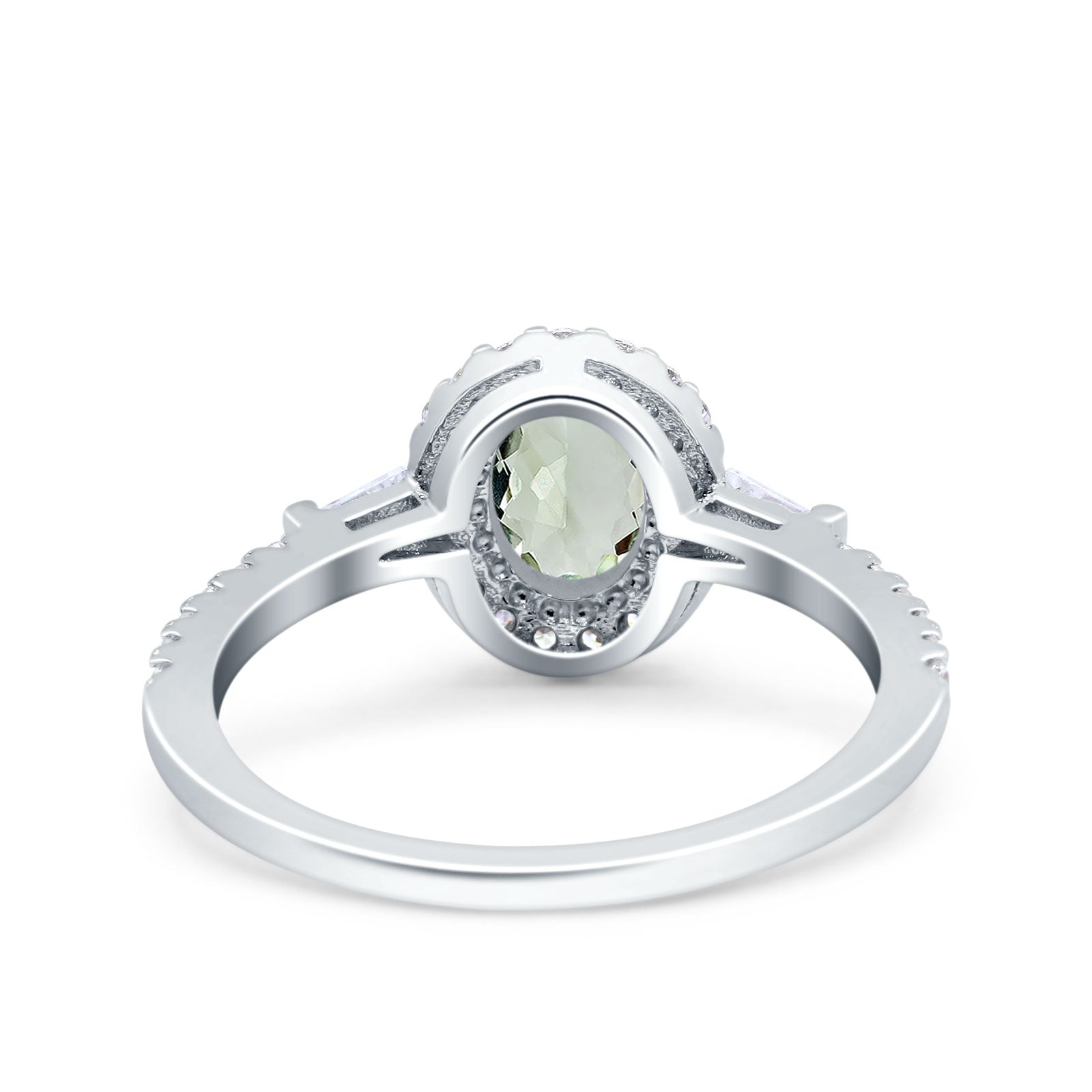 Vintage Style Oval Natural Green Amethyst Prasiolite Art Deco Ring 925 Sterling Silver