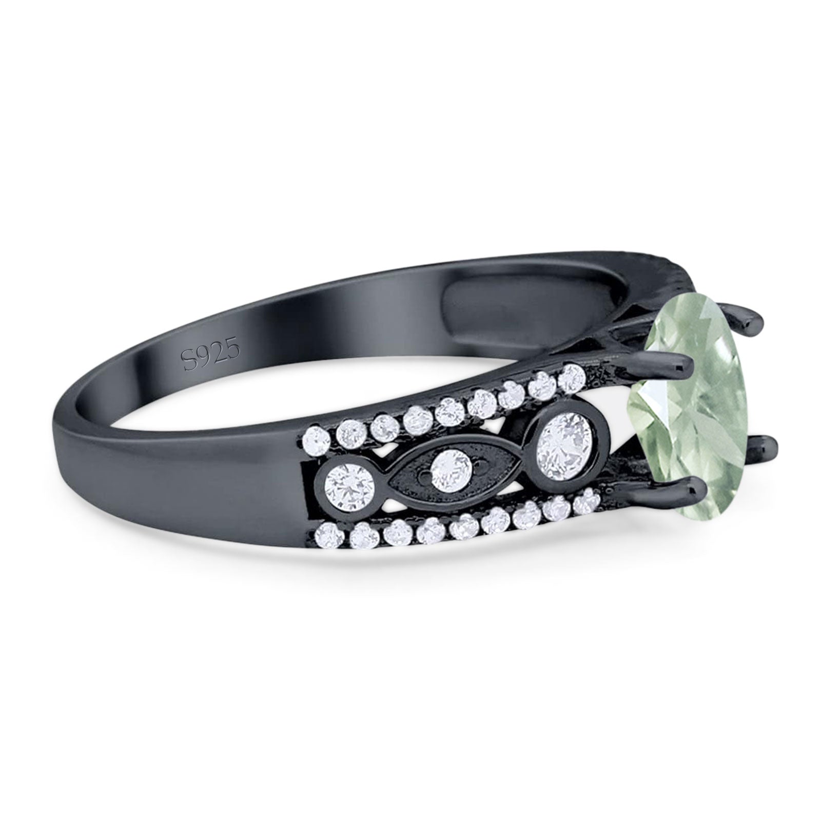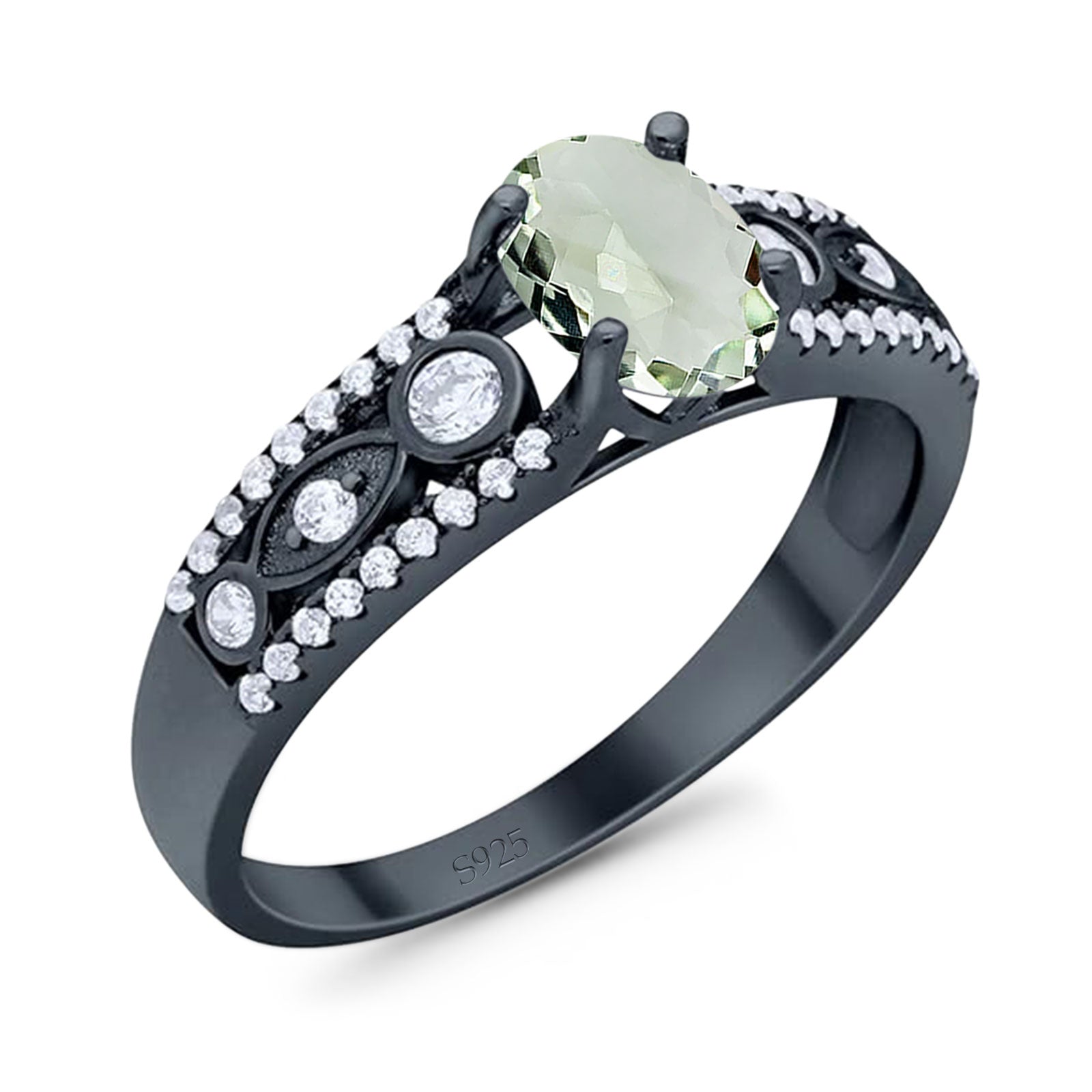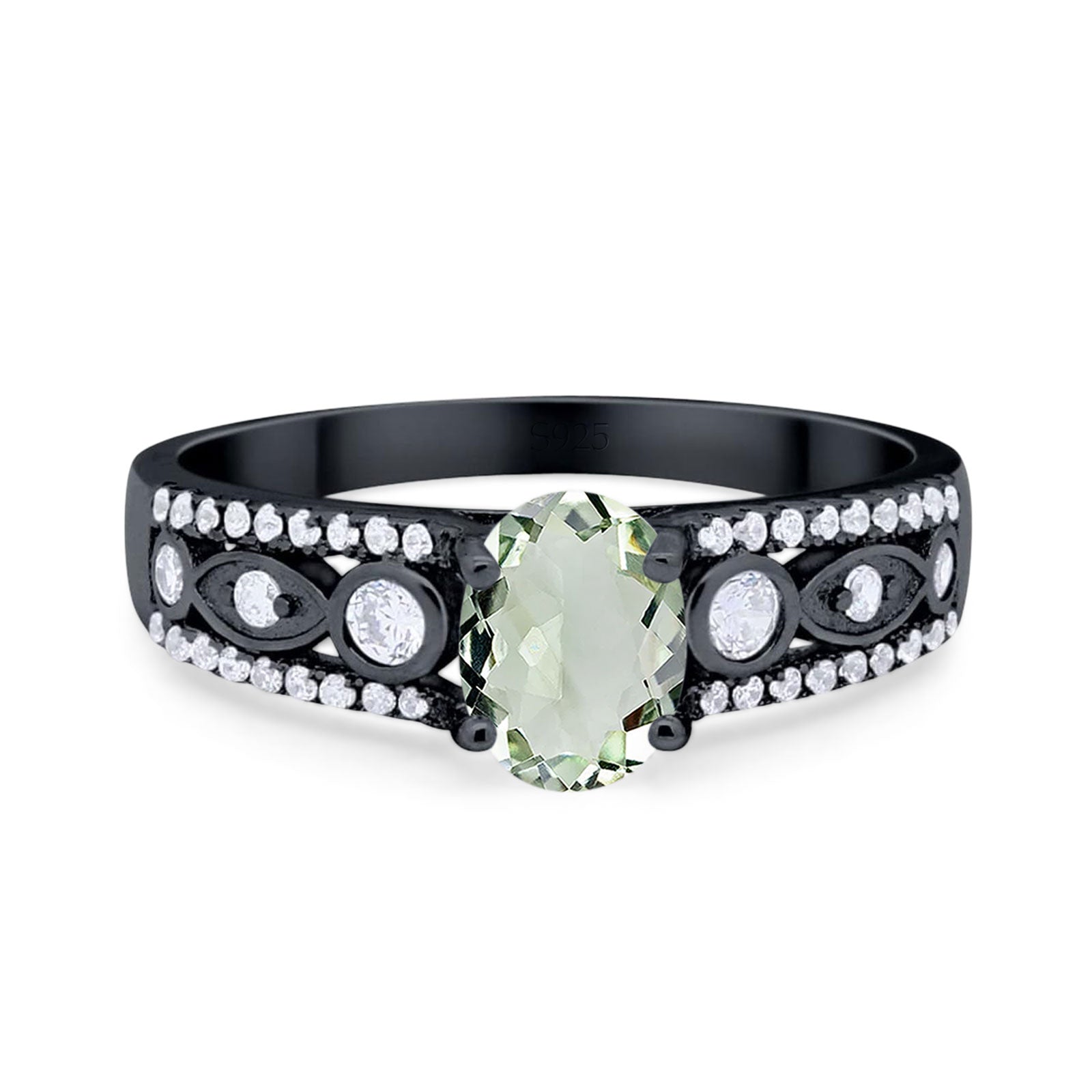 Natural Green Amethyst Prasiolite Black Tone Silver