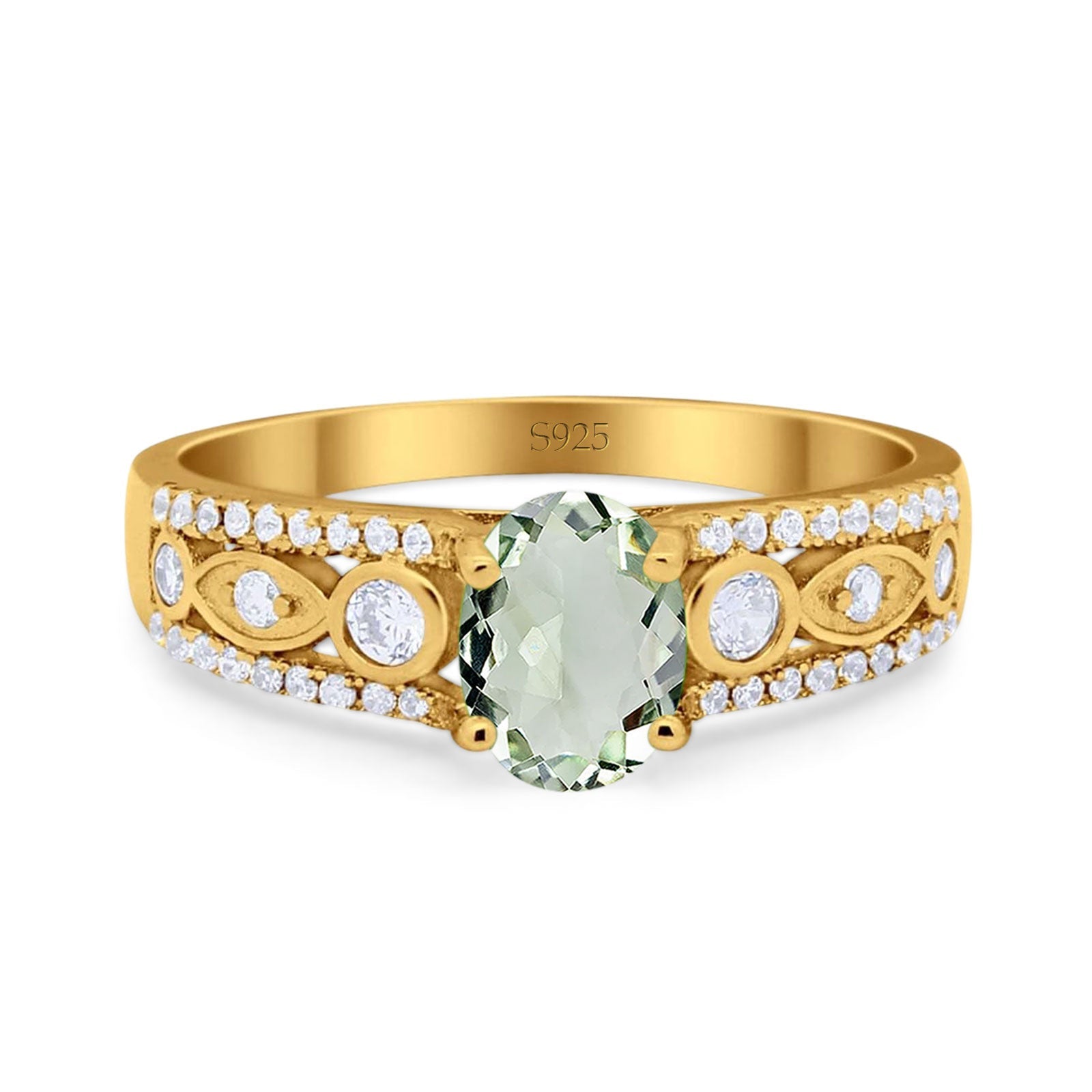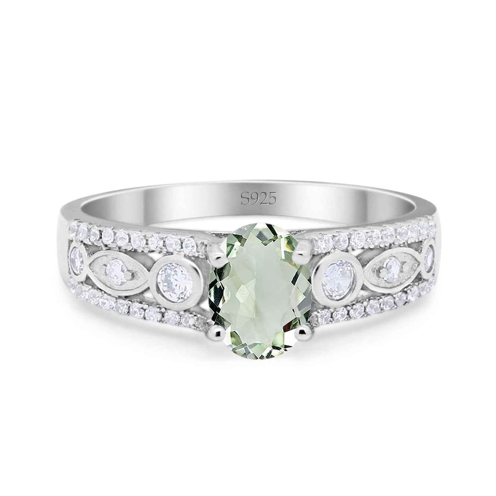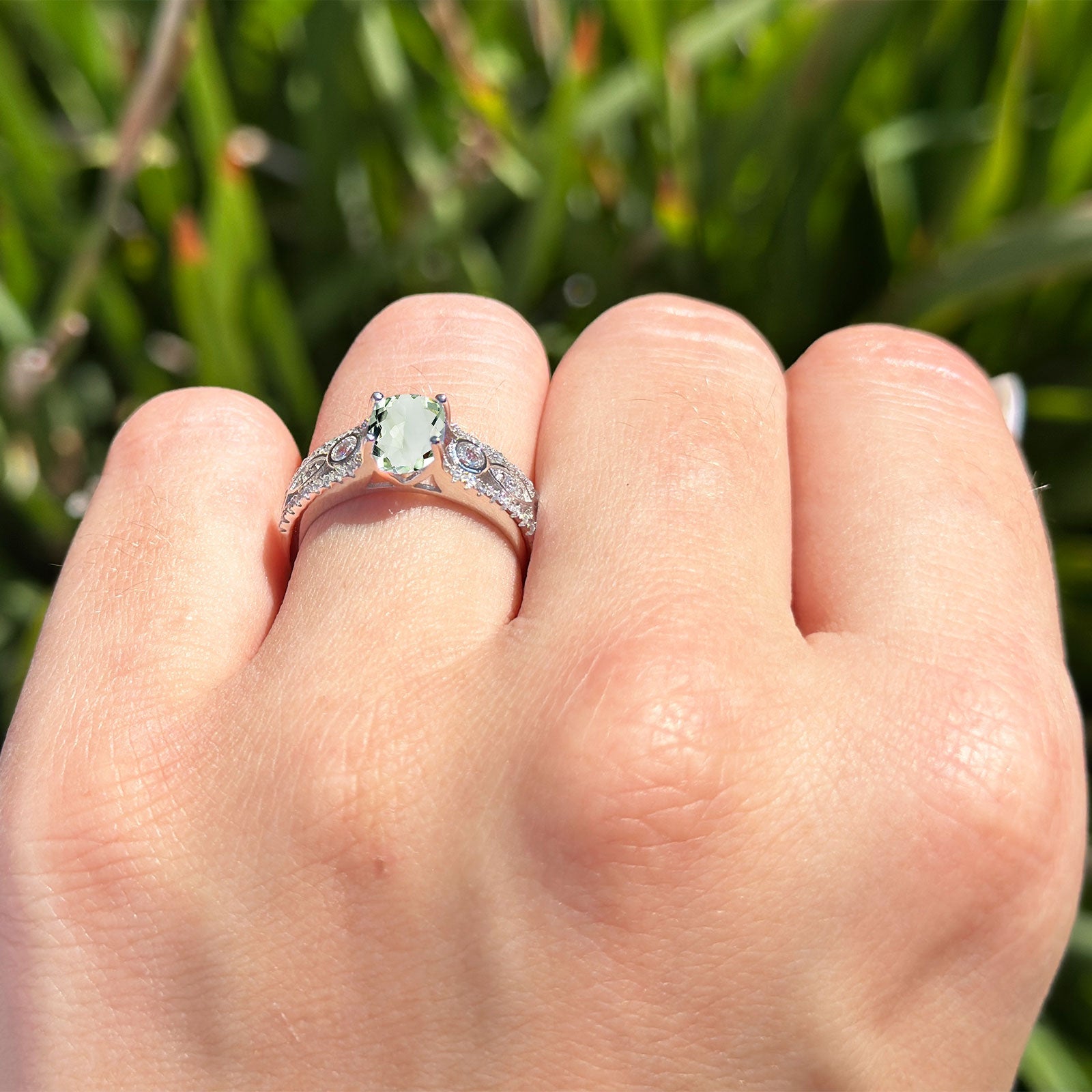Vintage Style Oval Natural Green Amethyst Prasiolite Art Deco Ring 925 Sterling Silver