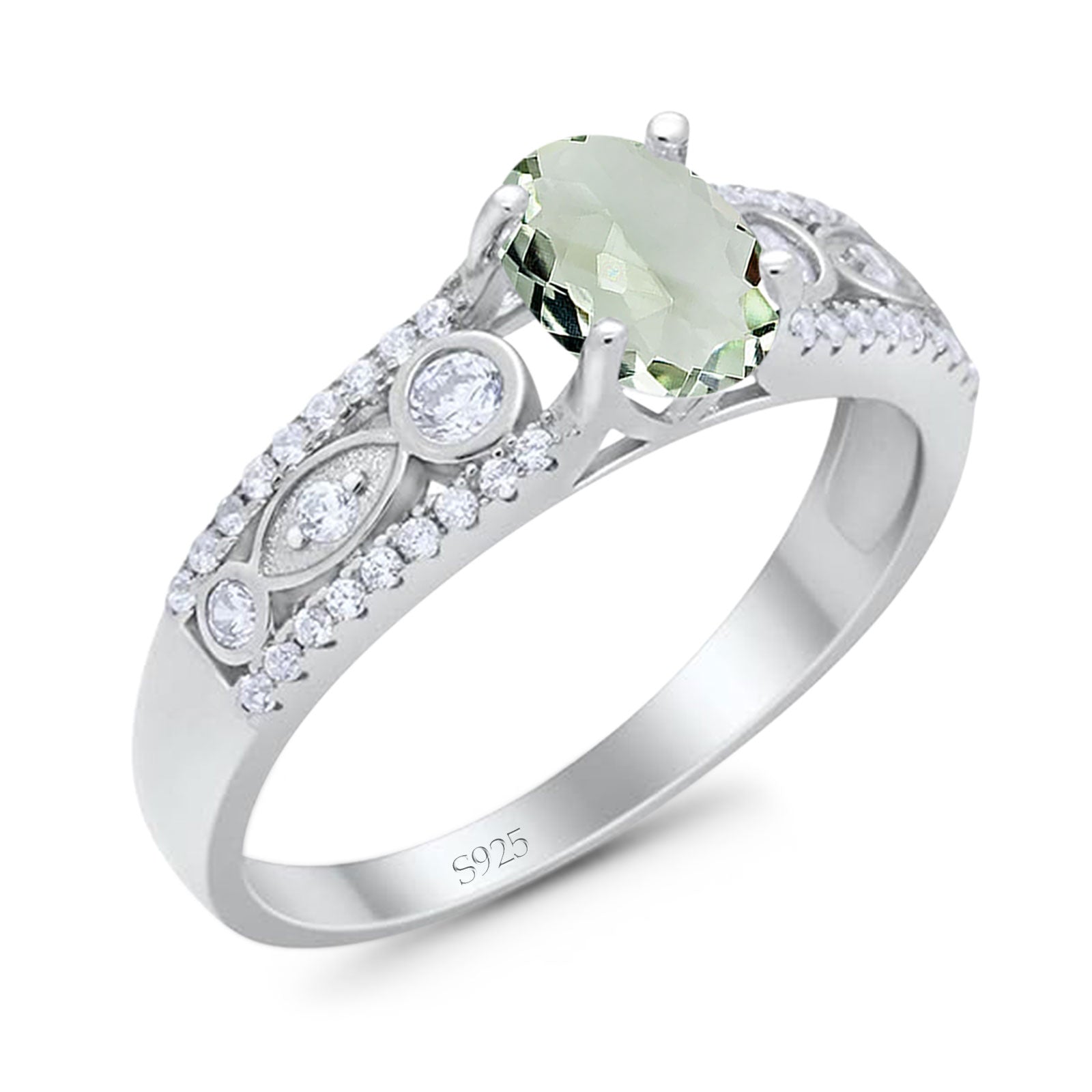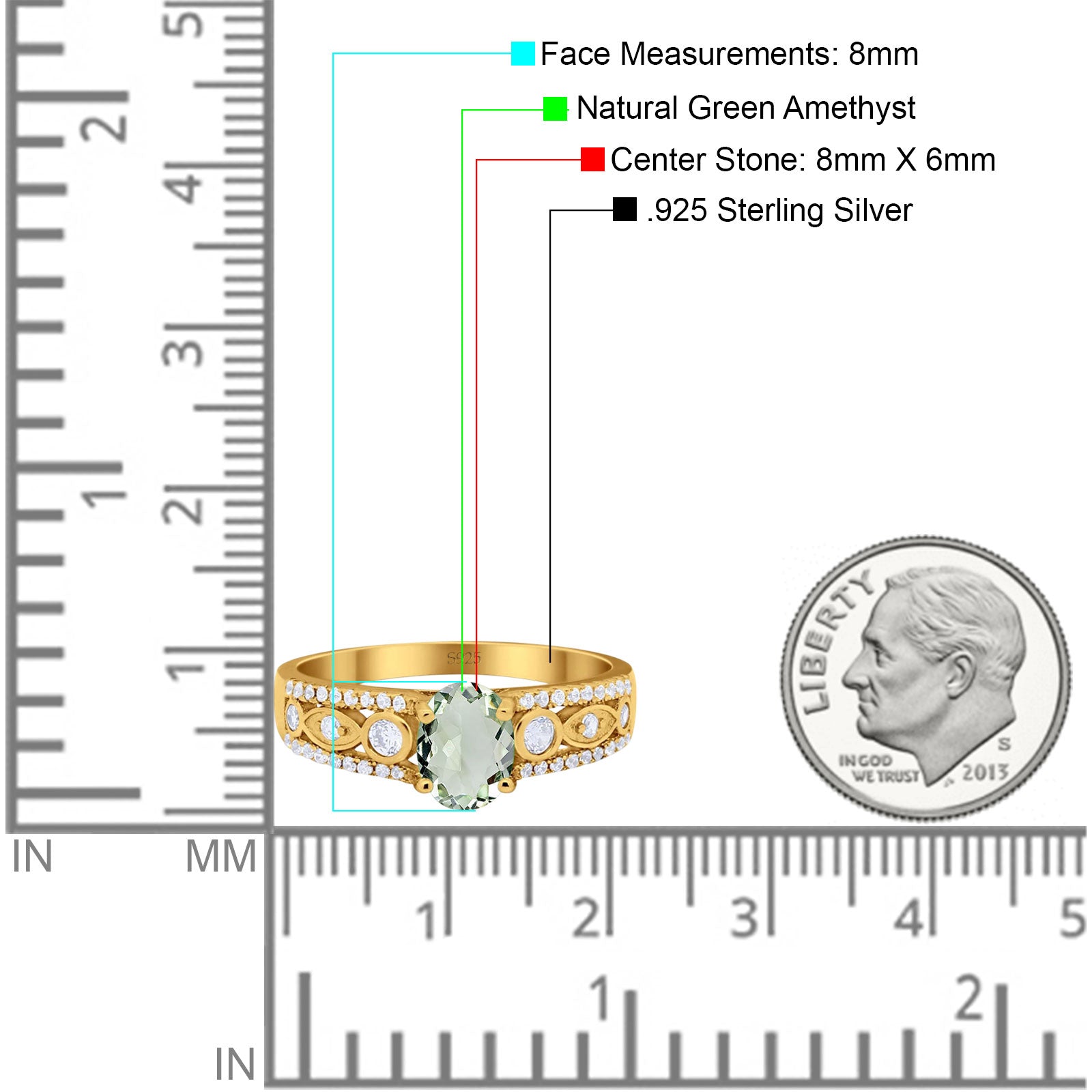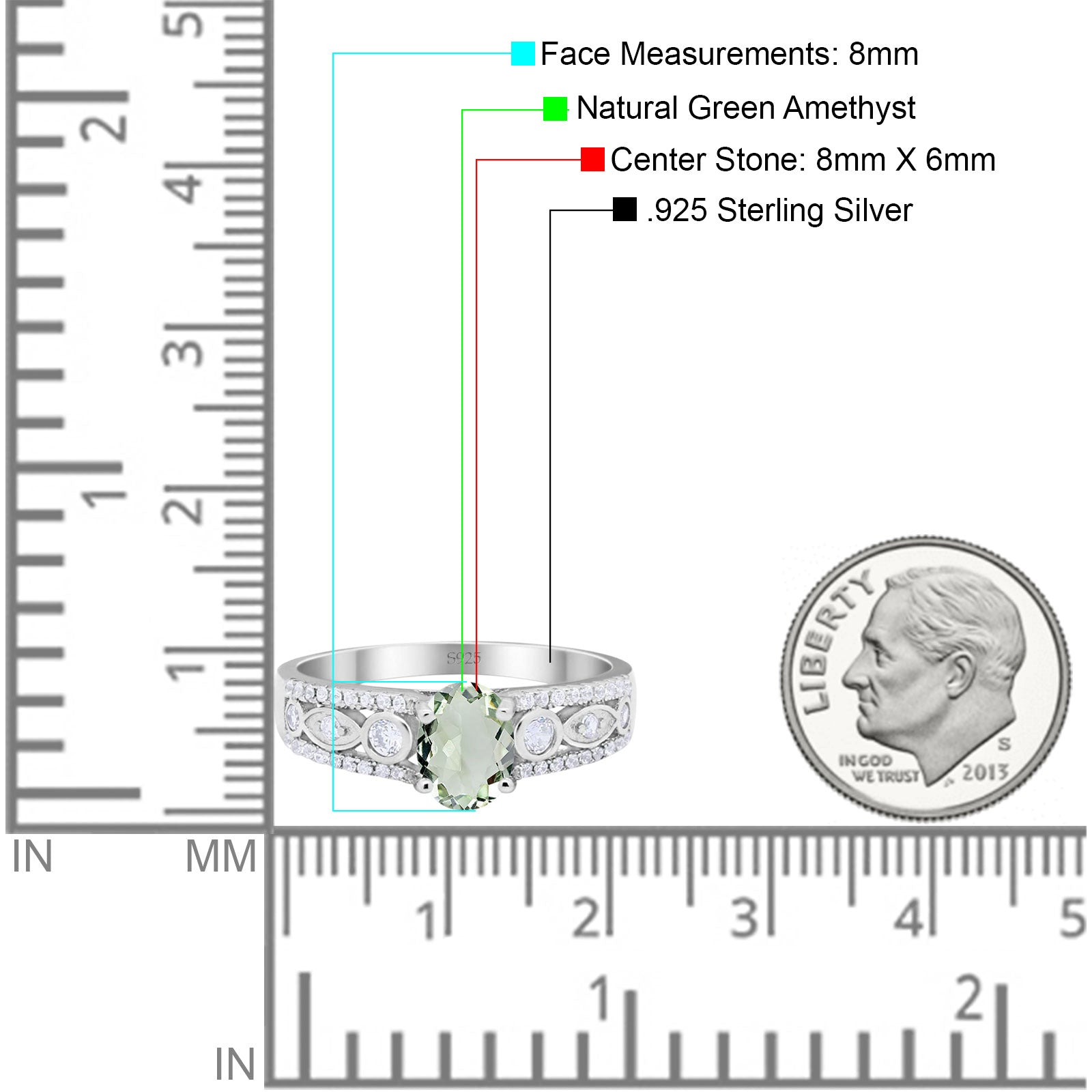 Vintage Style Oval Natural Green Amethyst Prasiolite Art Deco Ring 925 Sterling Silver