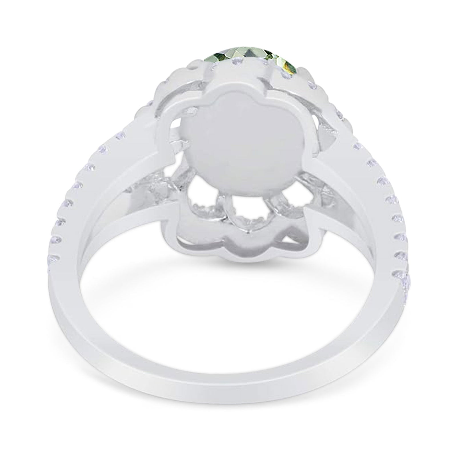 Vintage Style Oval Natural Green Amethyst Prasiolite Flower Ring 925 Sterling Silver