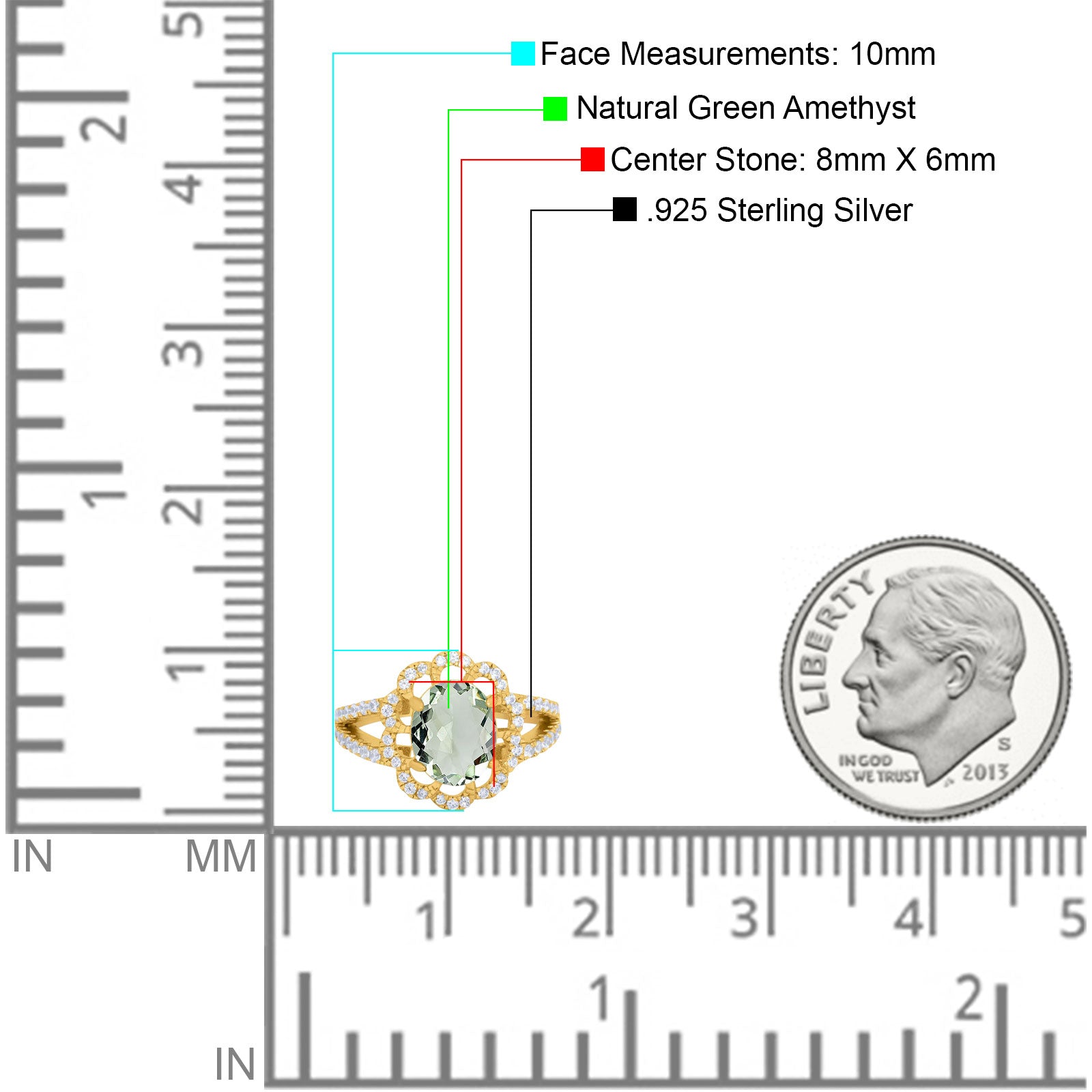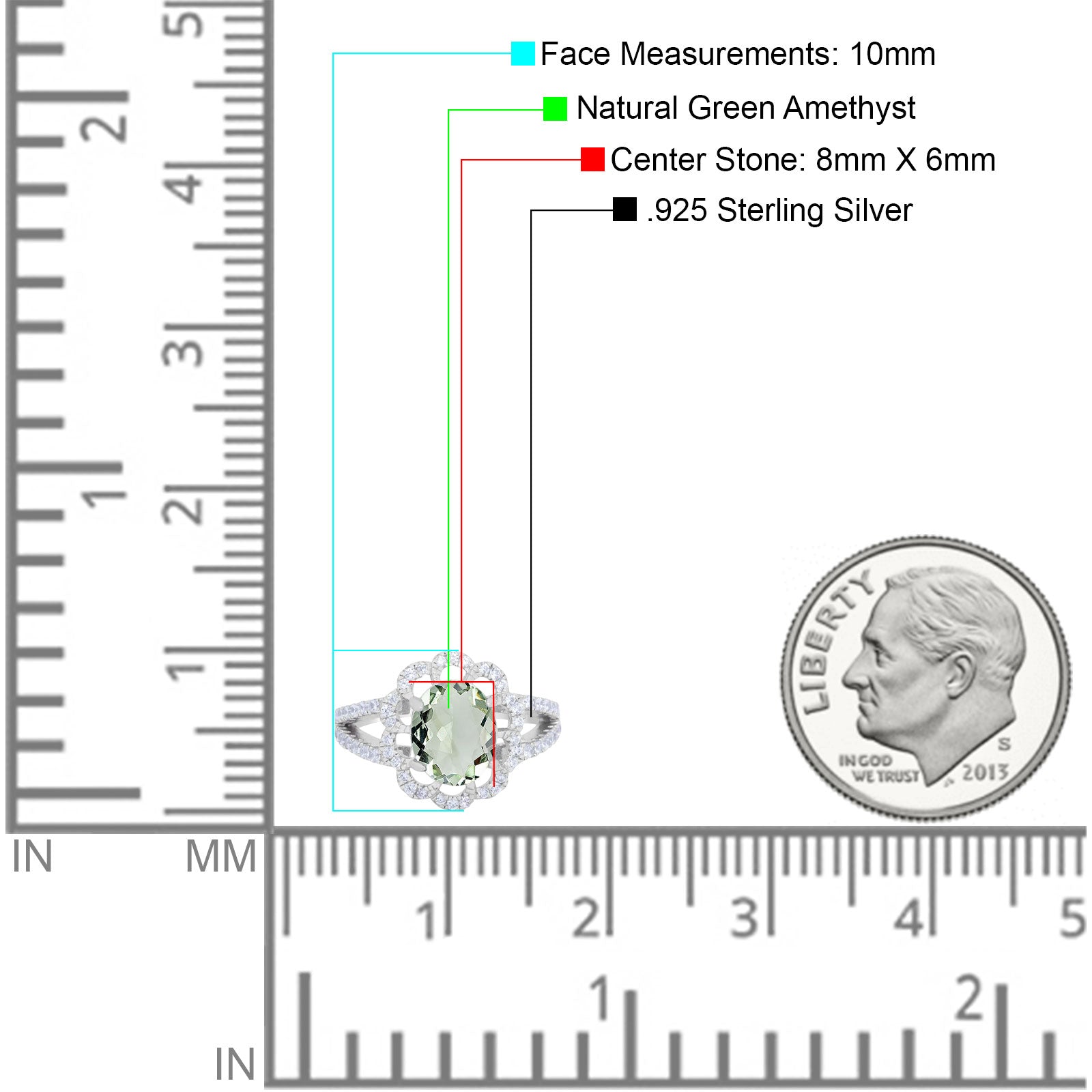 Center Stone Measurements: 8mmX6mm.