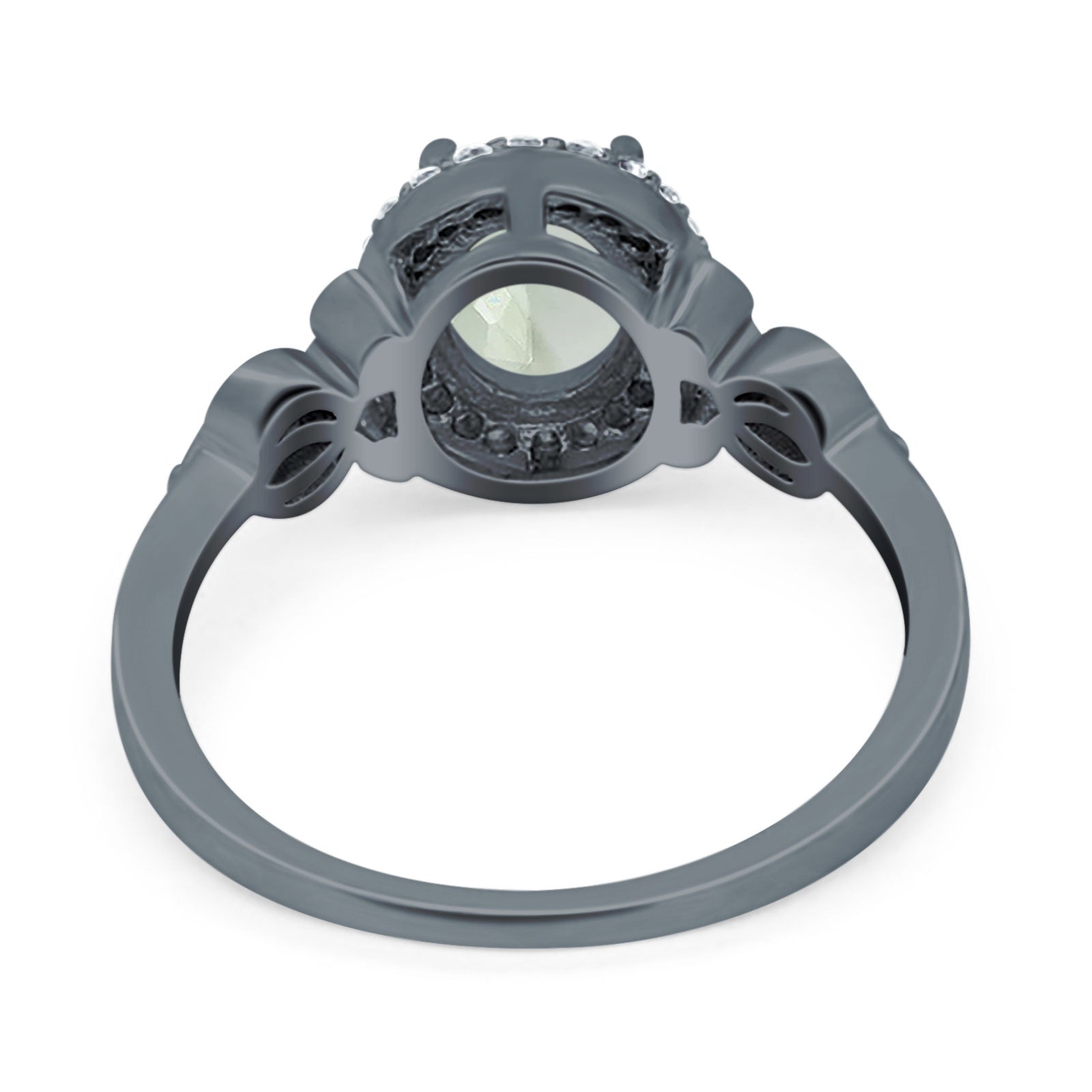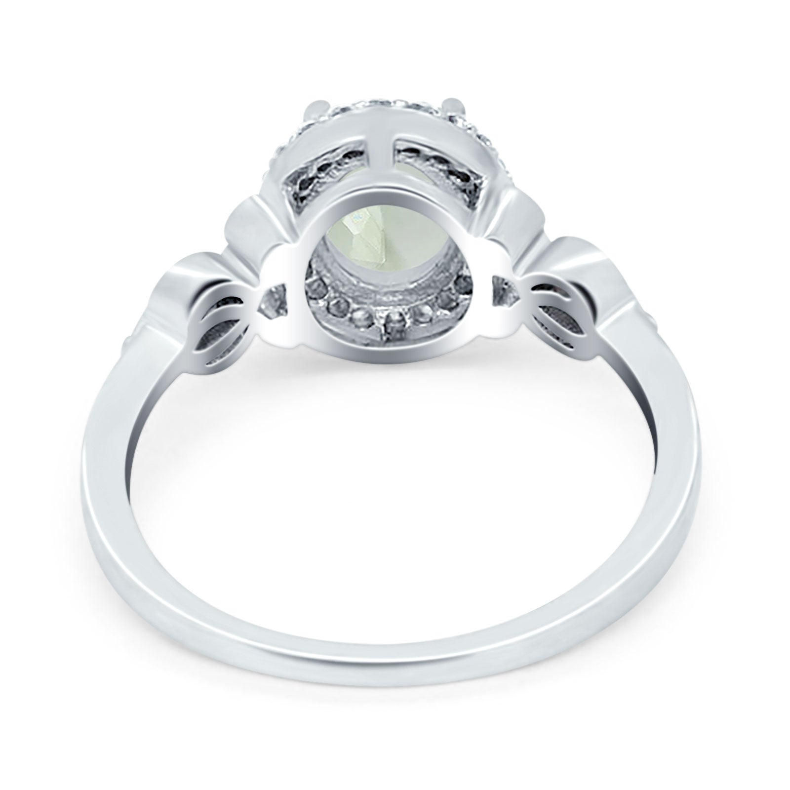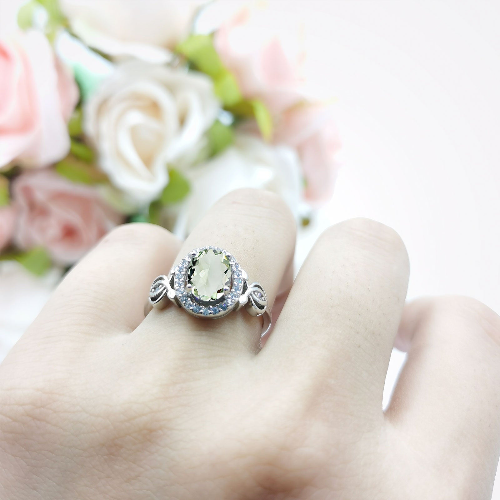 Vintage Style Oval Natural Green Amethyst Prasiolite Halo CZ Split Shank Twisted 925 Sterling Silver