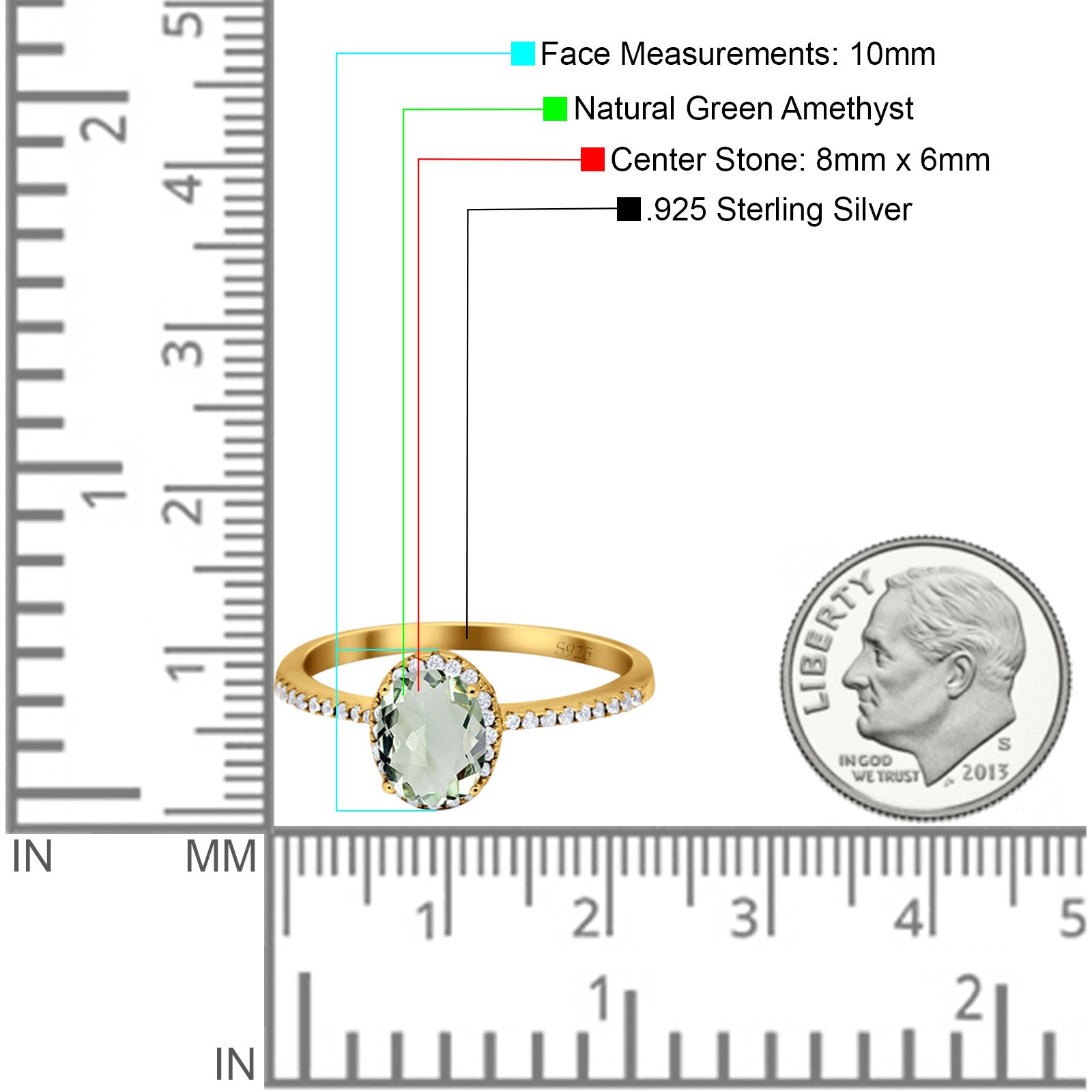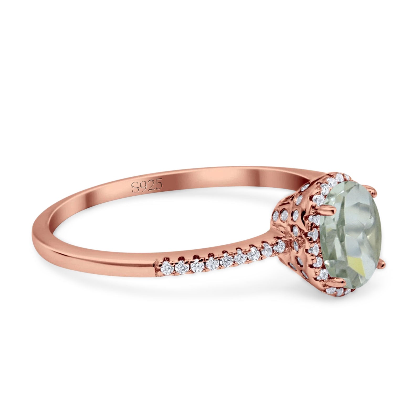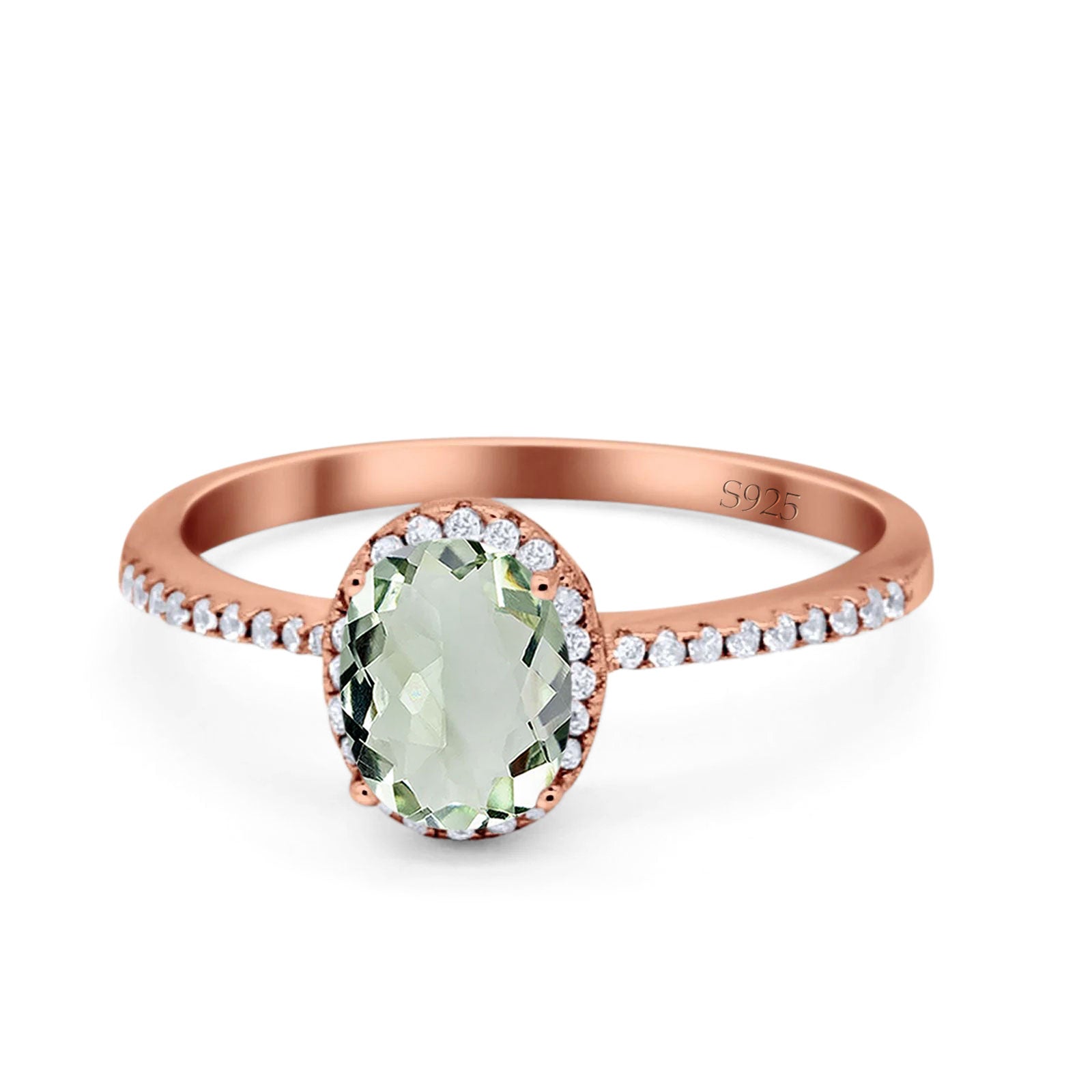 Vintage Style Oval Natural Green Amethyst Prasiolite Solitaire Ring 925 Sterling Silver