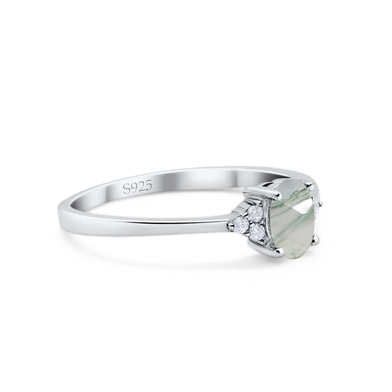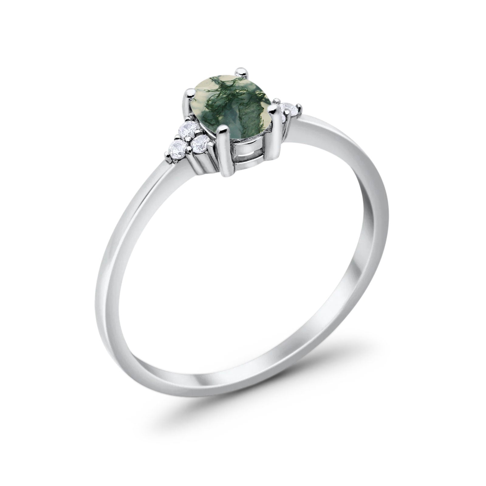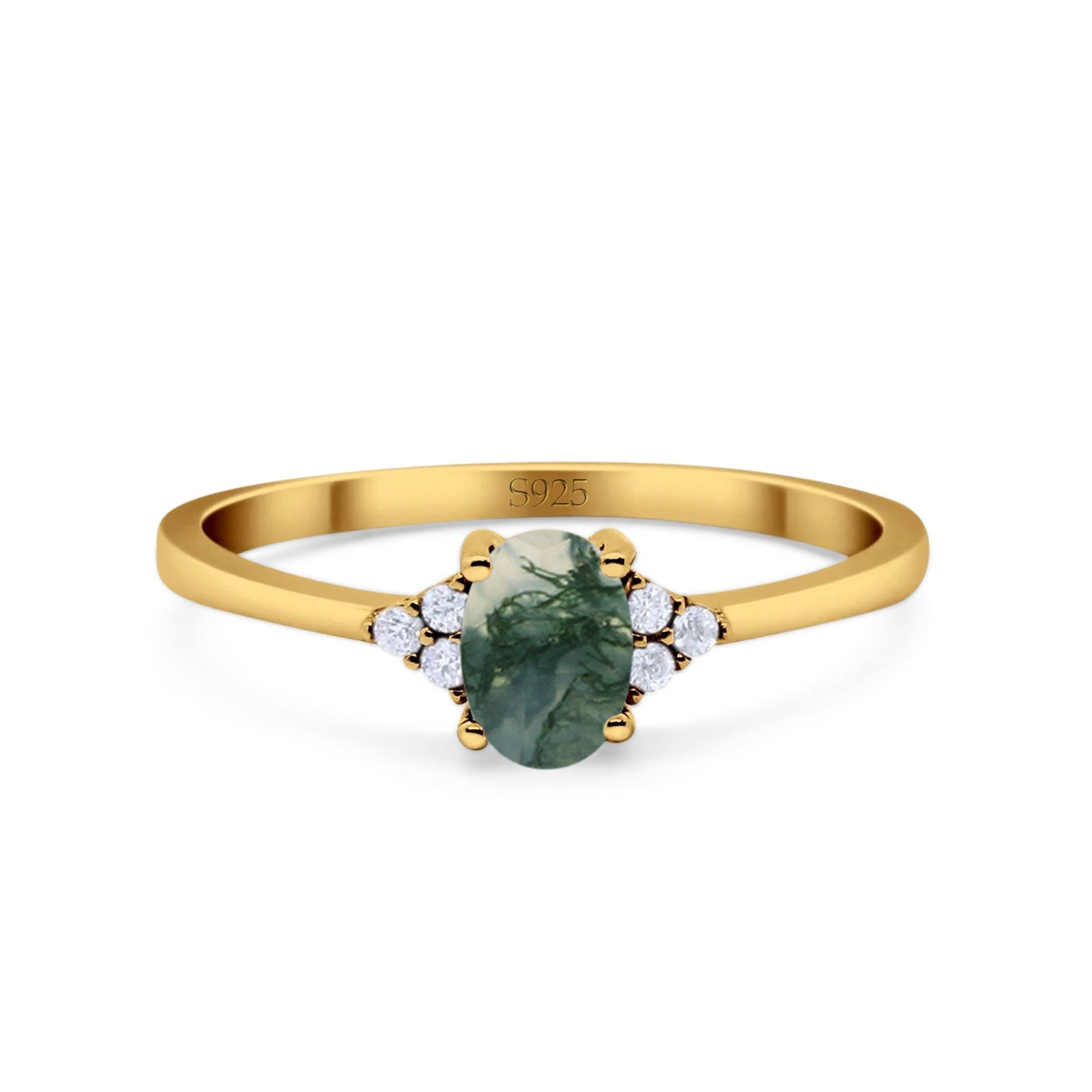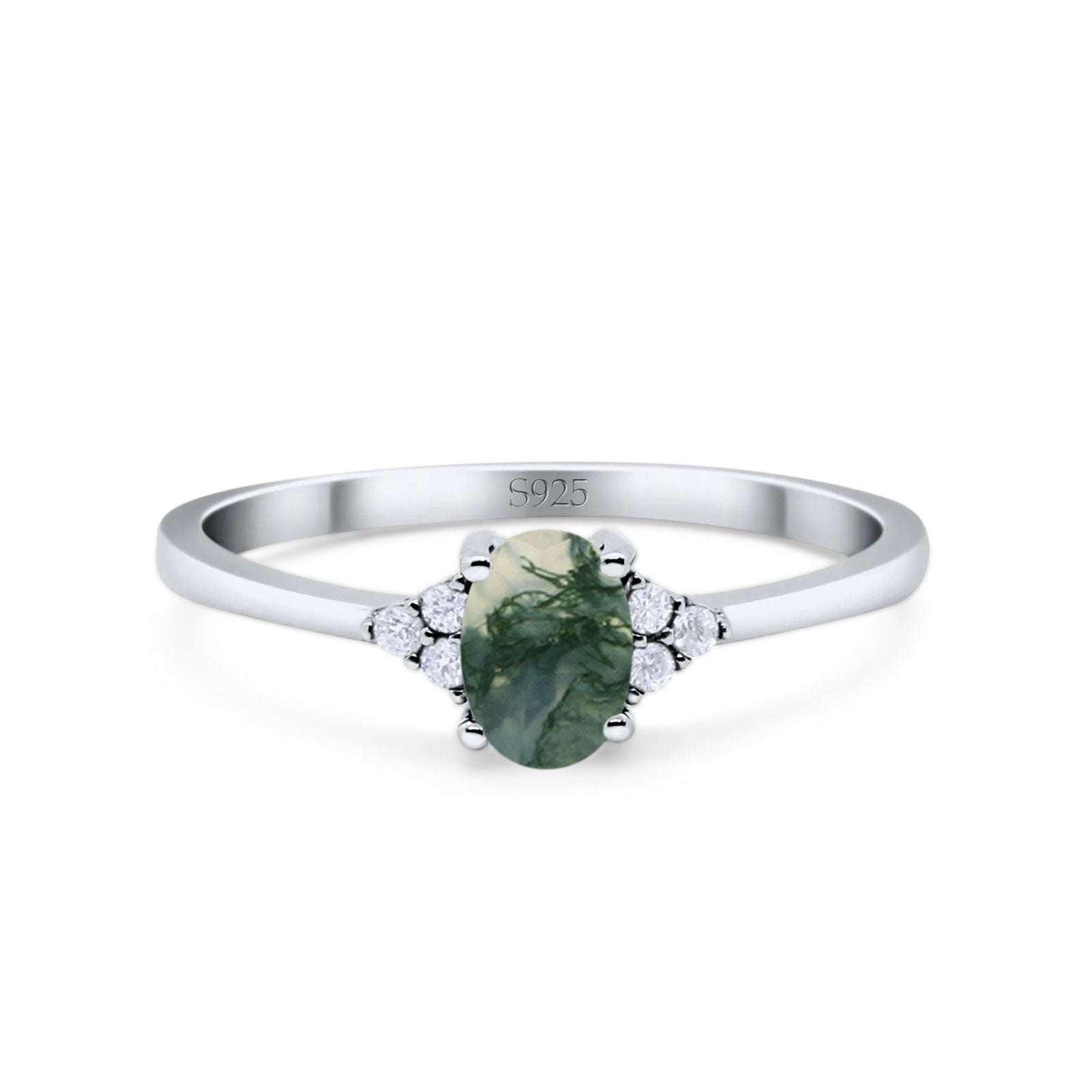 Vintage Style Oval Natural Green Moss Agate Trillium Ring 925 Sterling Silver