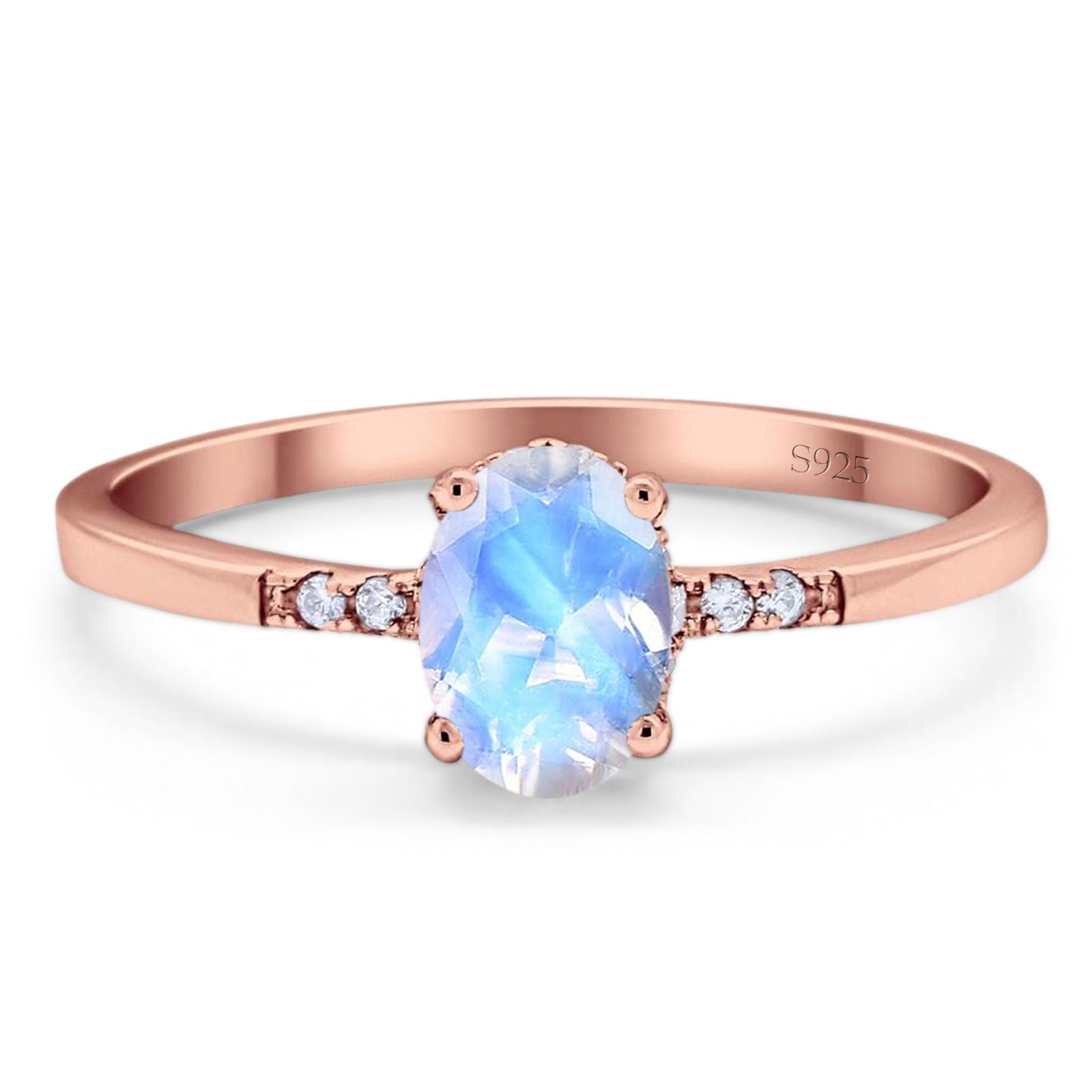 Vintage Style Oval Natural Moonstone Wedding Ring 925 Sterling Silver