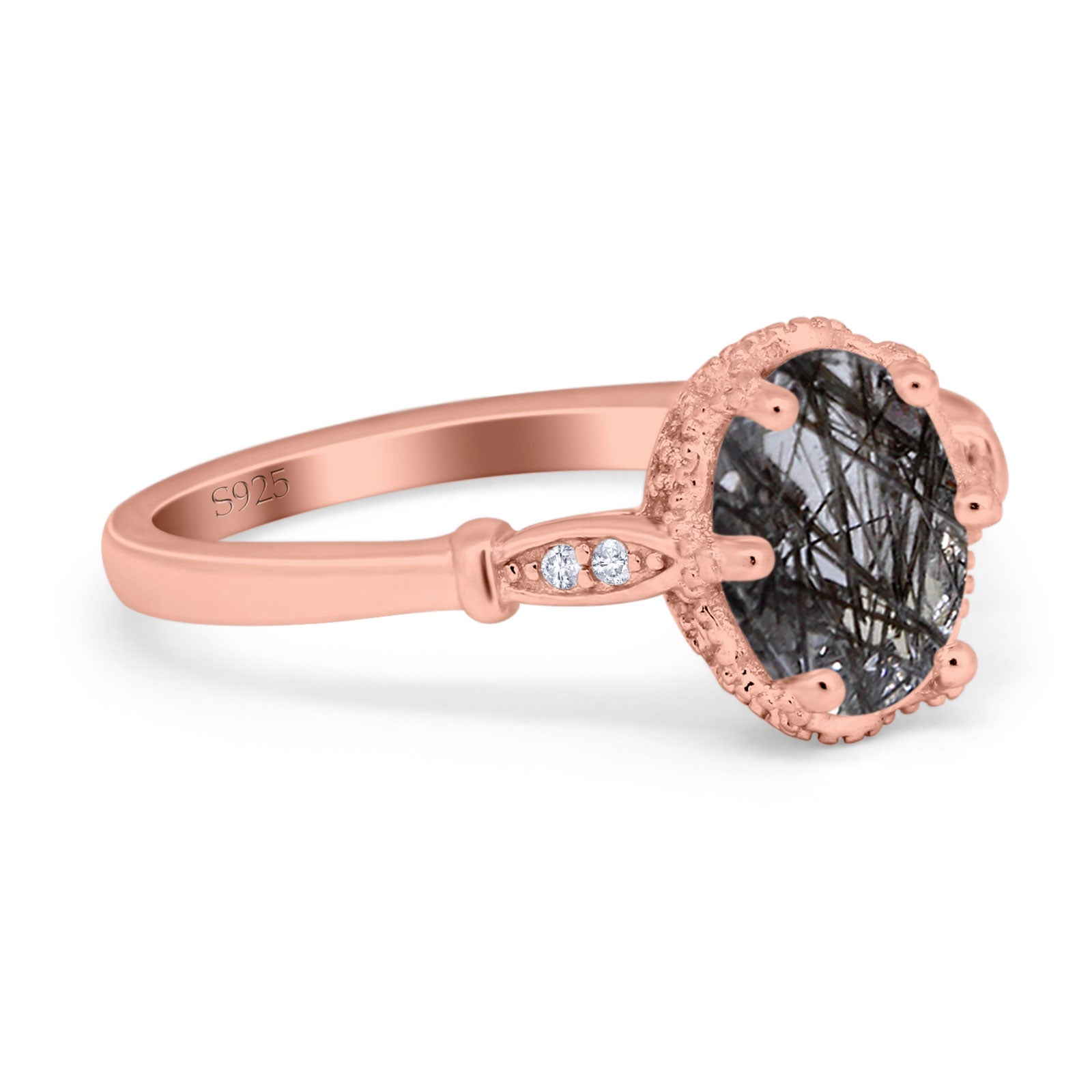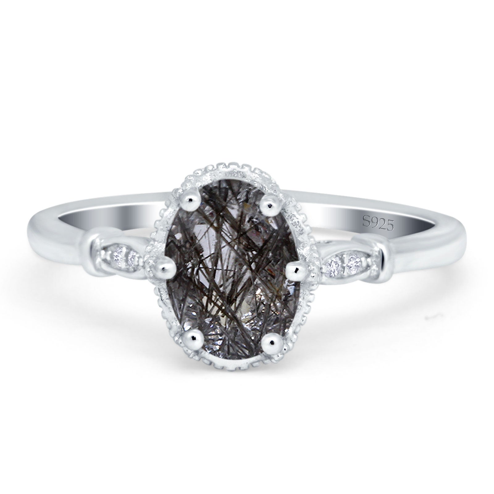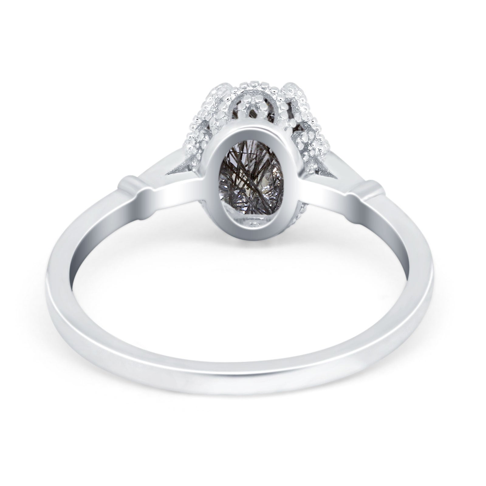 Vintage Style Oval Natural Rutilated Quartz Beaded Ring 925 Sterling Silver