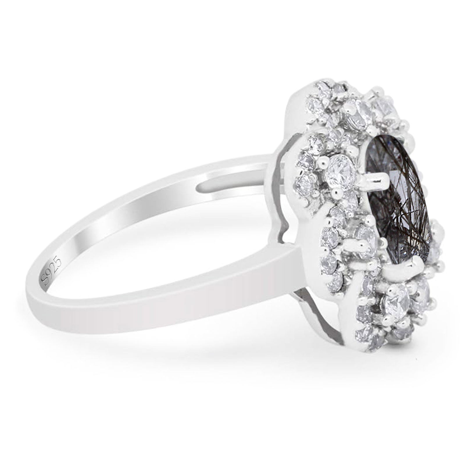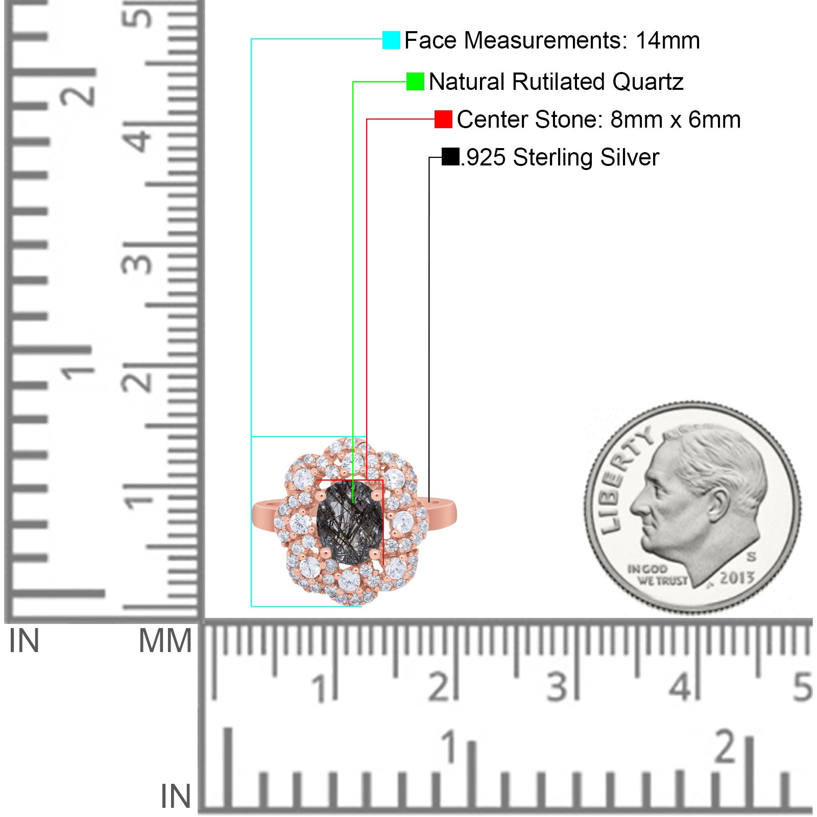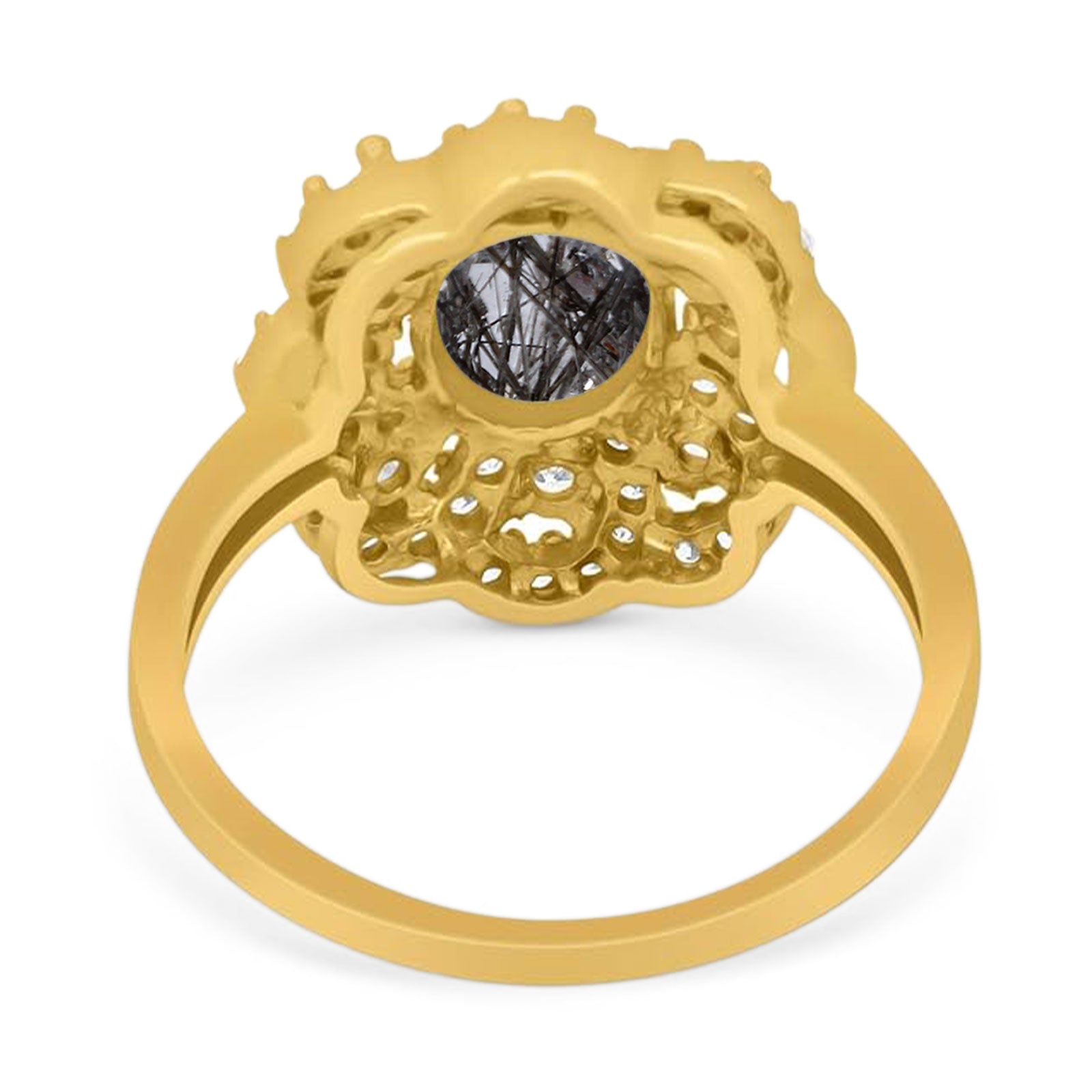 Vintage Style Oval Natural Rutilated Quartz Flower Ring 925 Sterling Silver