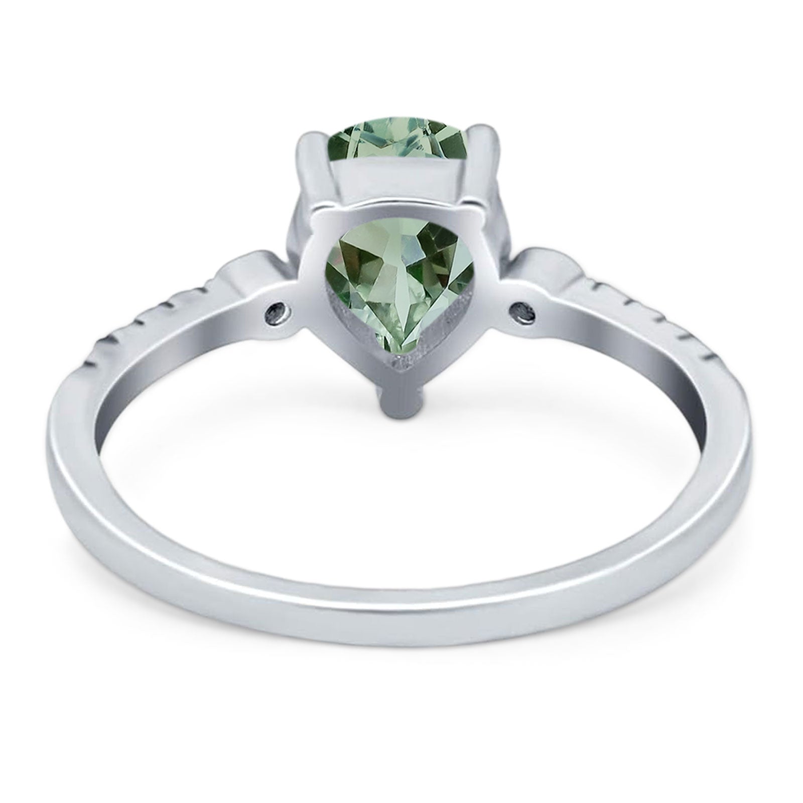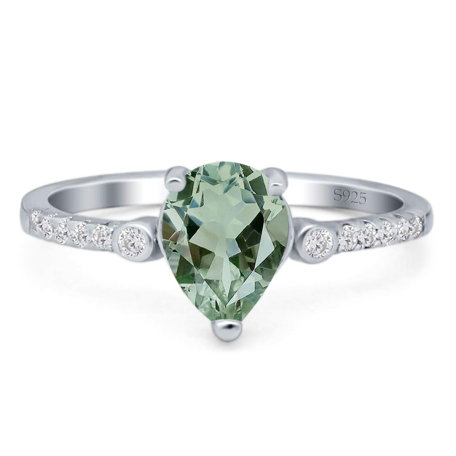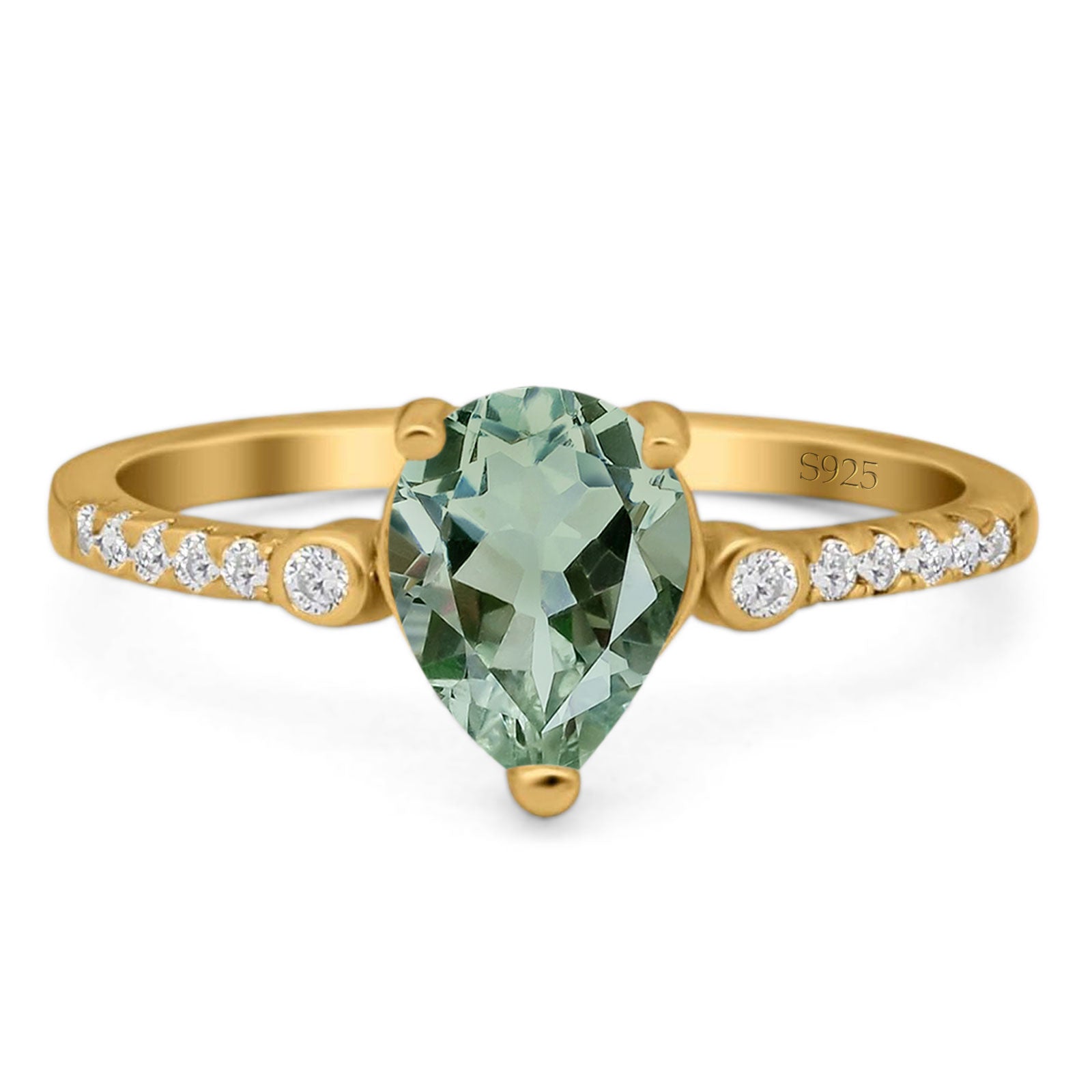 Vintage Style Pear Teardrop Natural Green Amethyst Prasiolite Wedding Ring 925 Sterling Silver