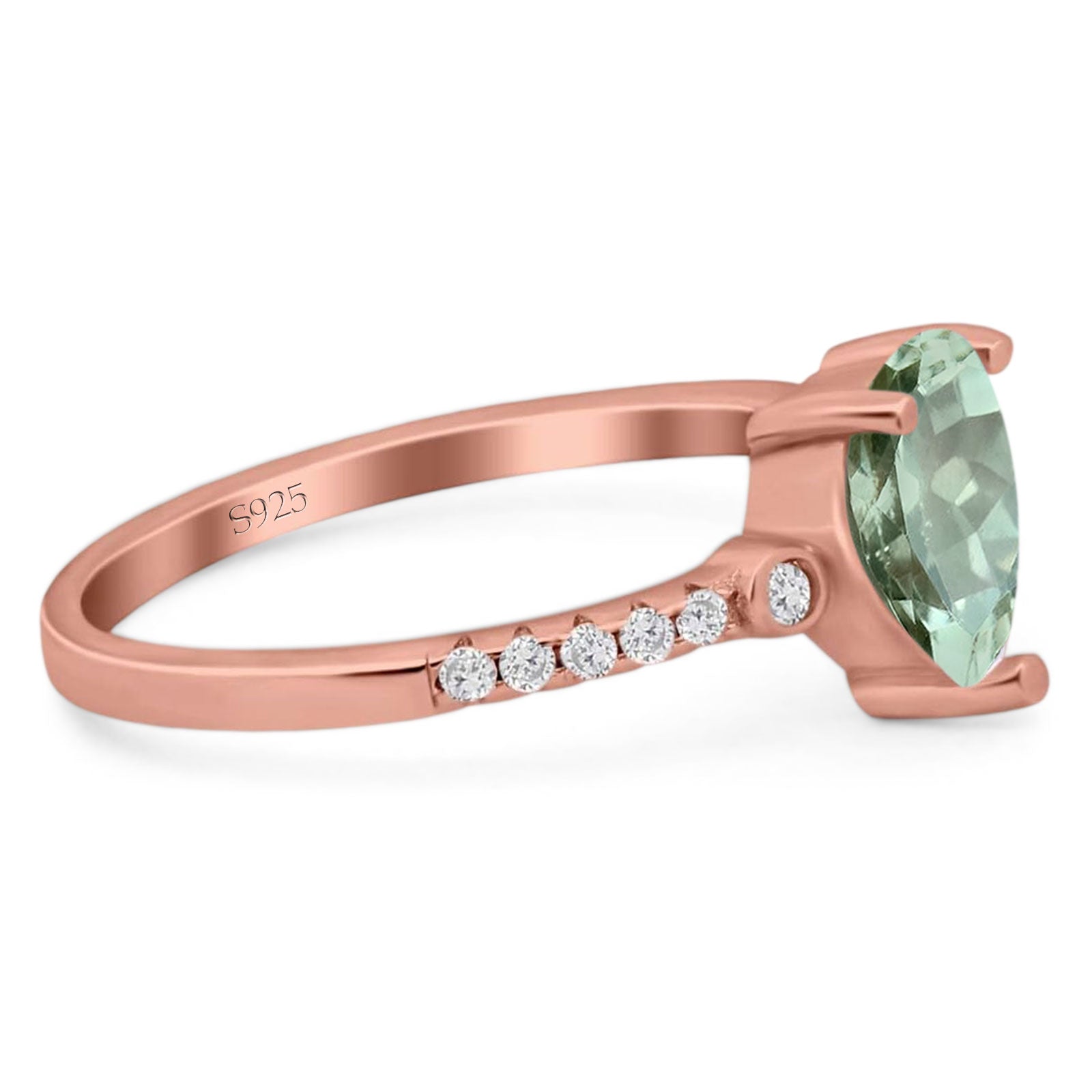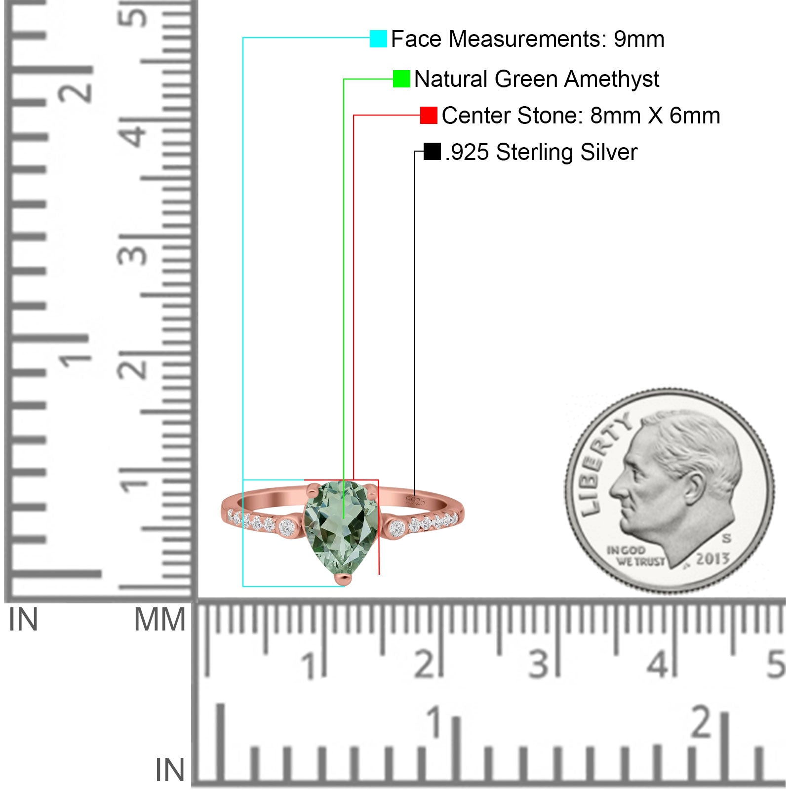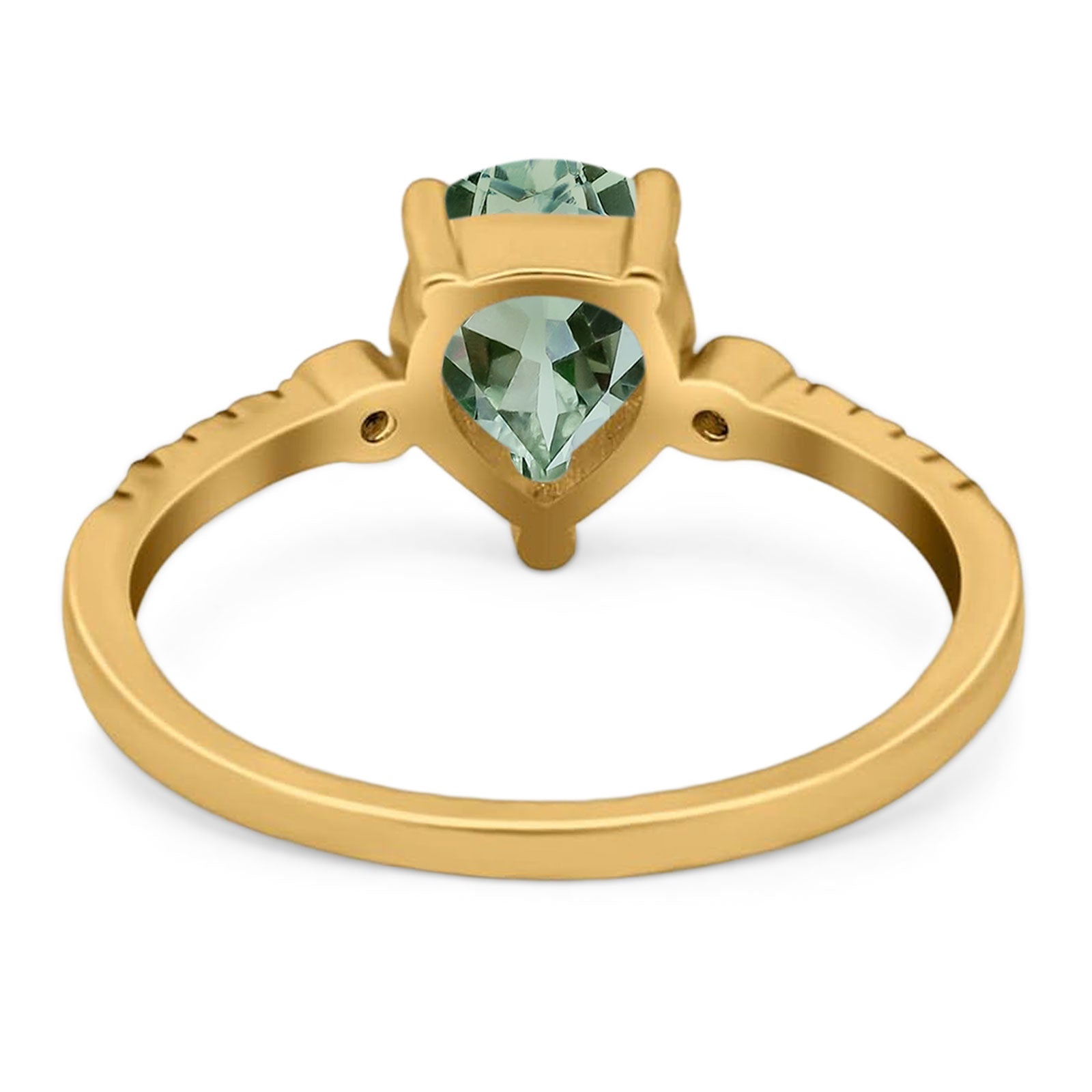 Vintage Style Pear Teardrop Natural Green Amethyst Prasiolite Wedding Ring 925 Sterling Silver