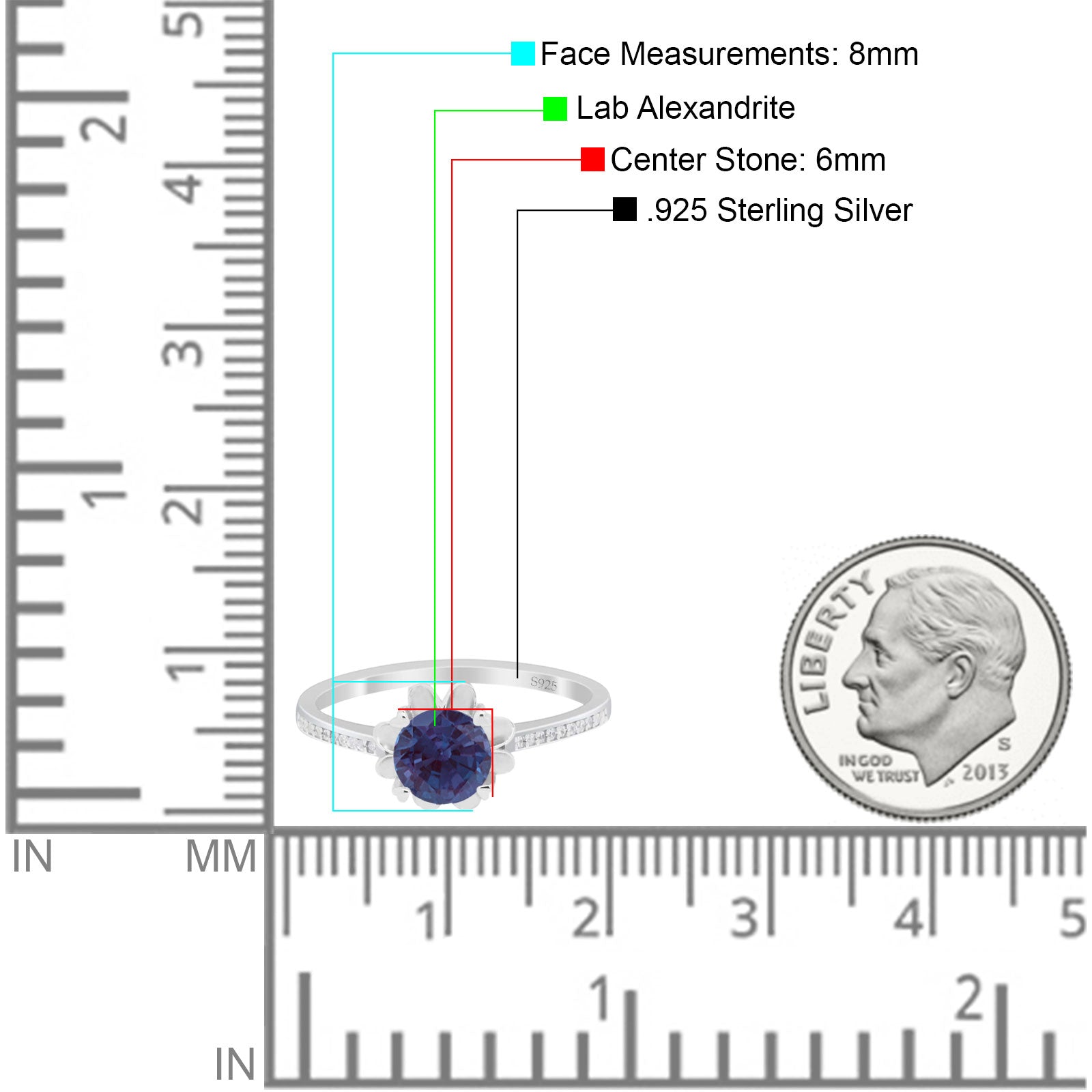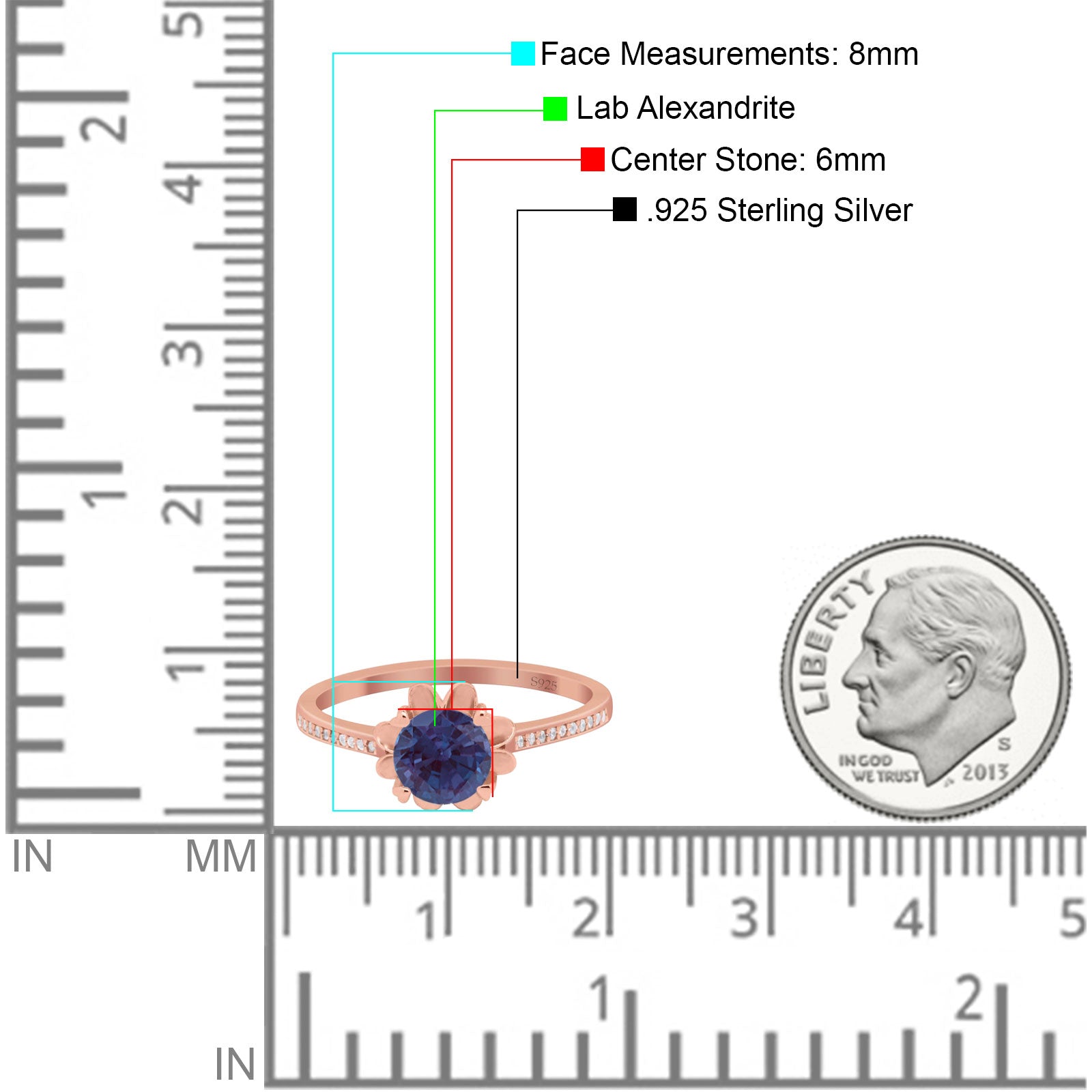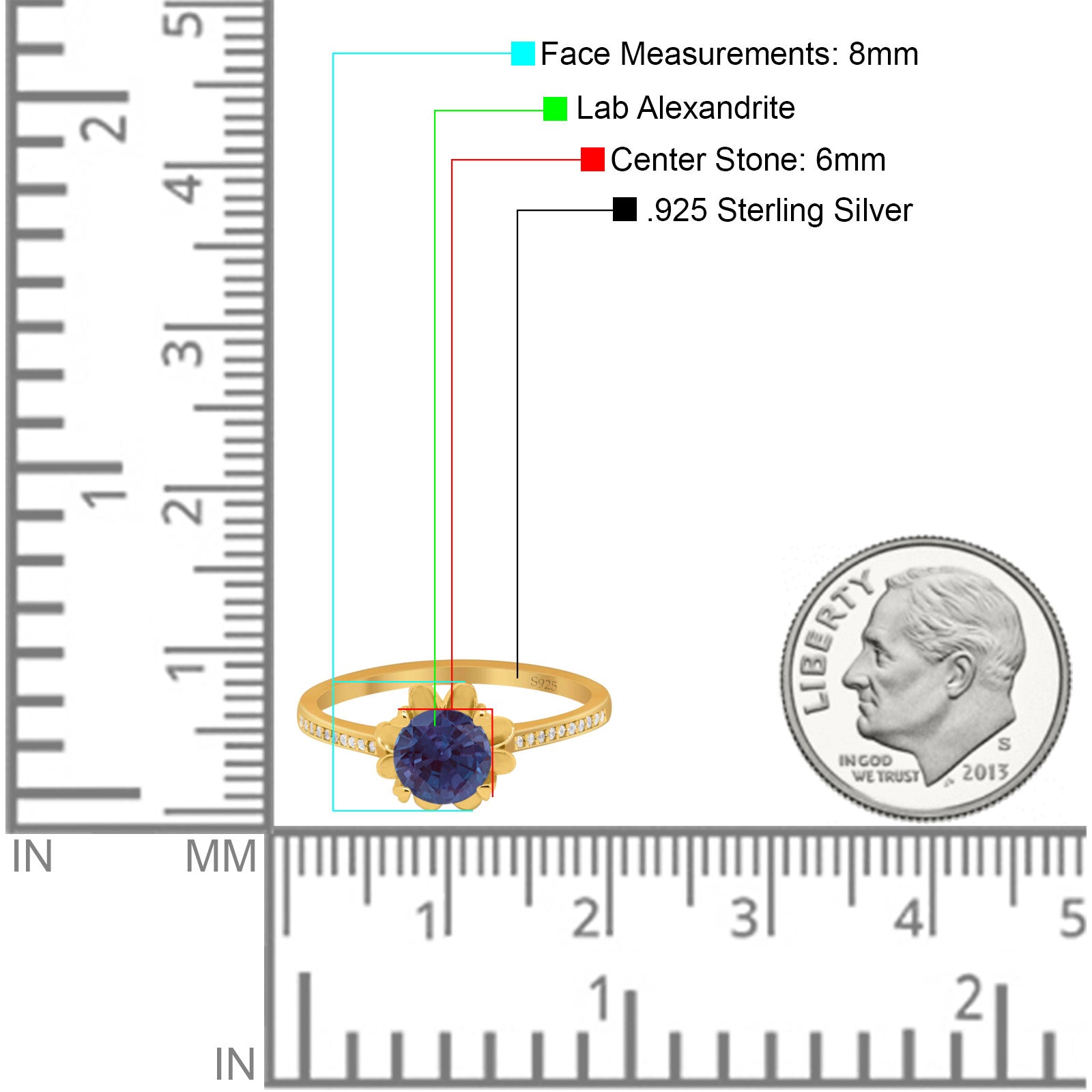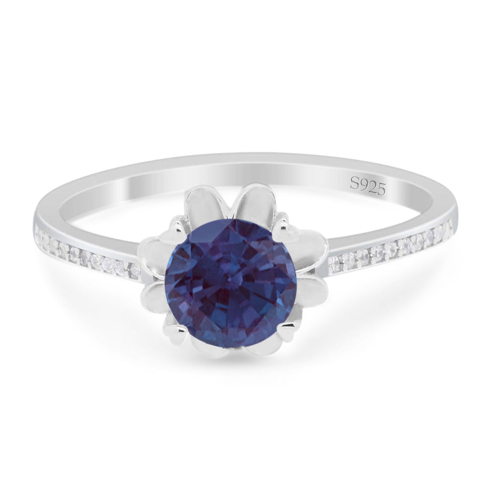 Vintage Style Round Lab Alexandrite Flower Ring 925 Sterling Silver
