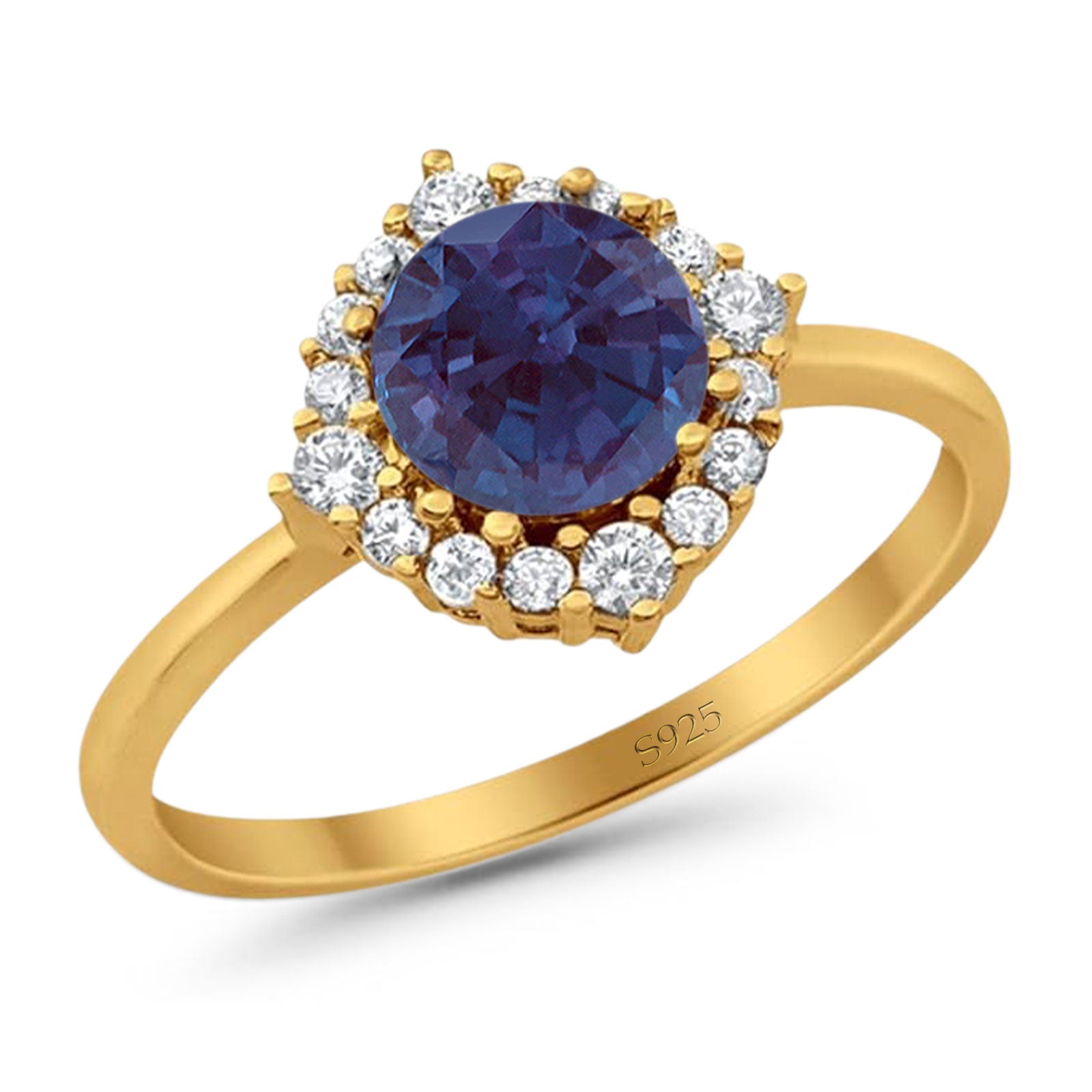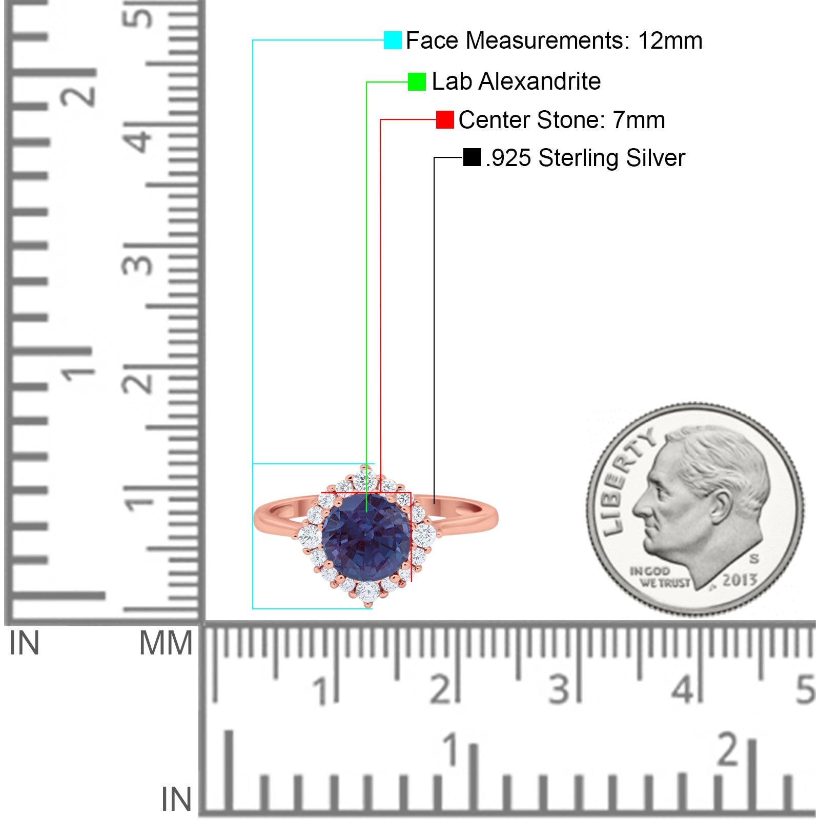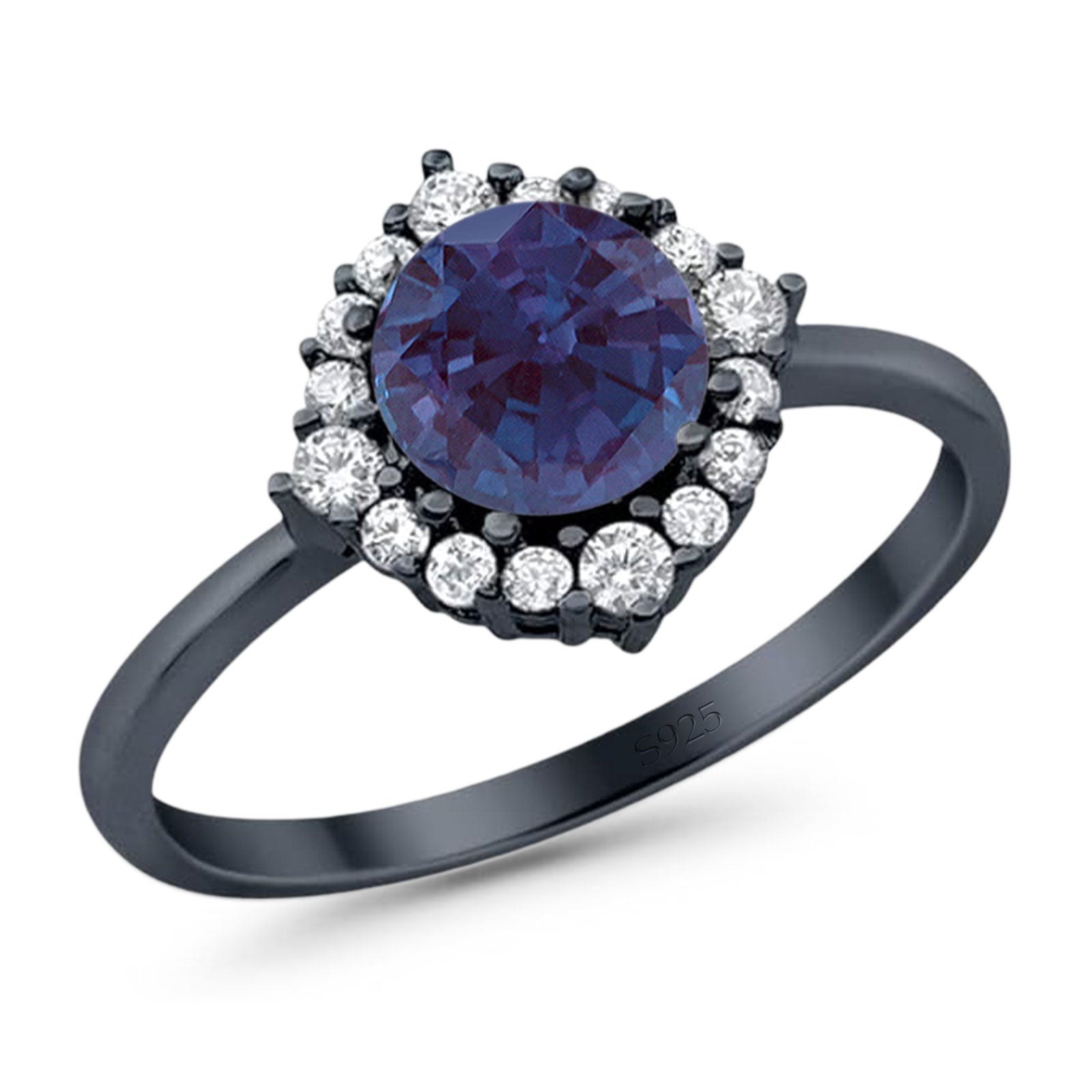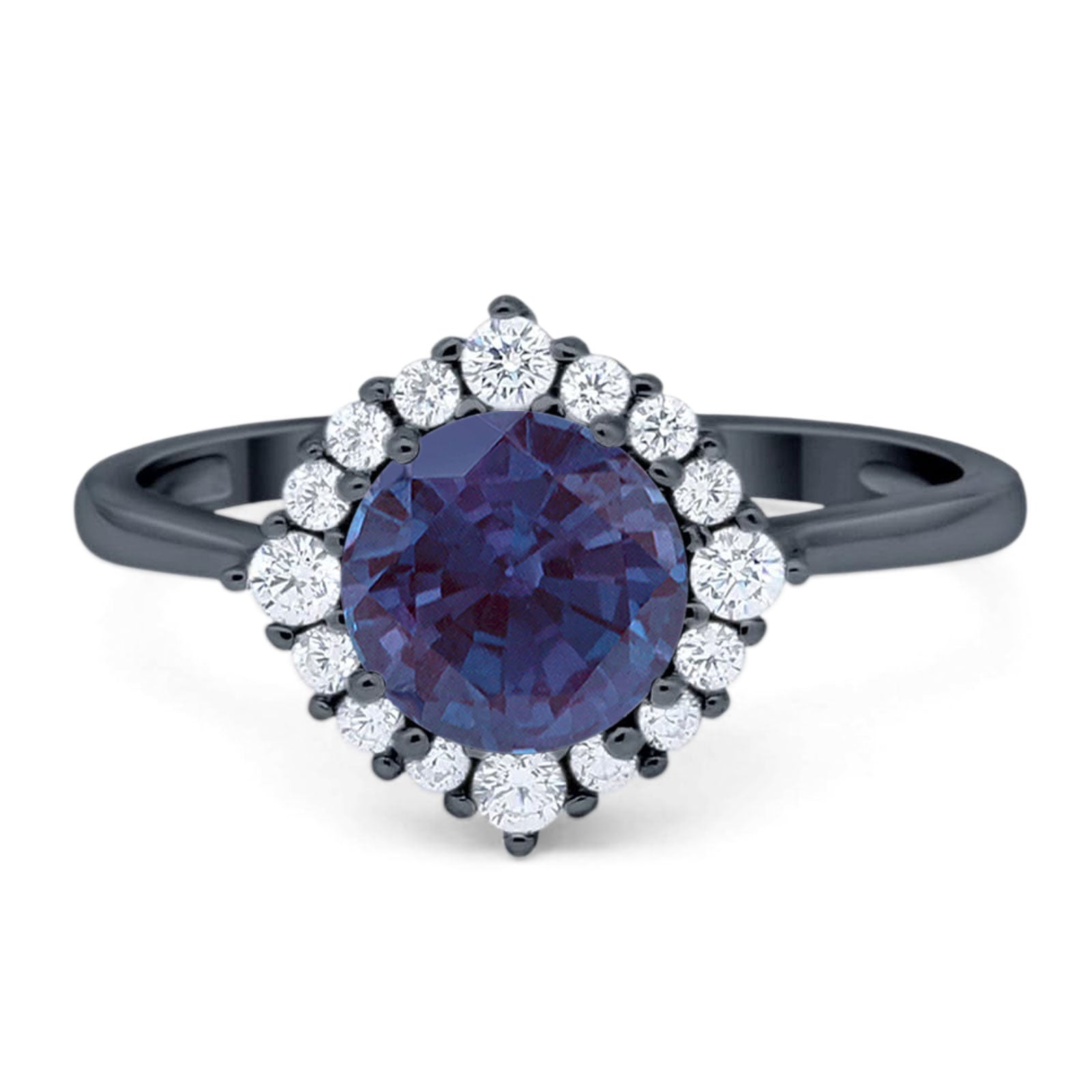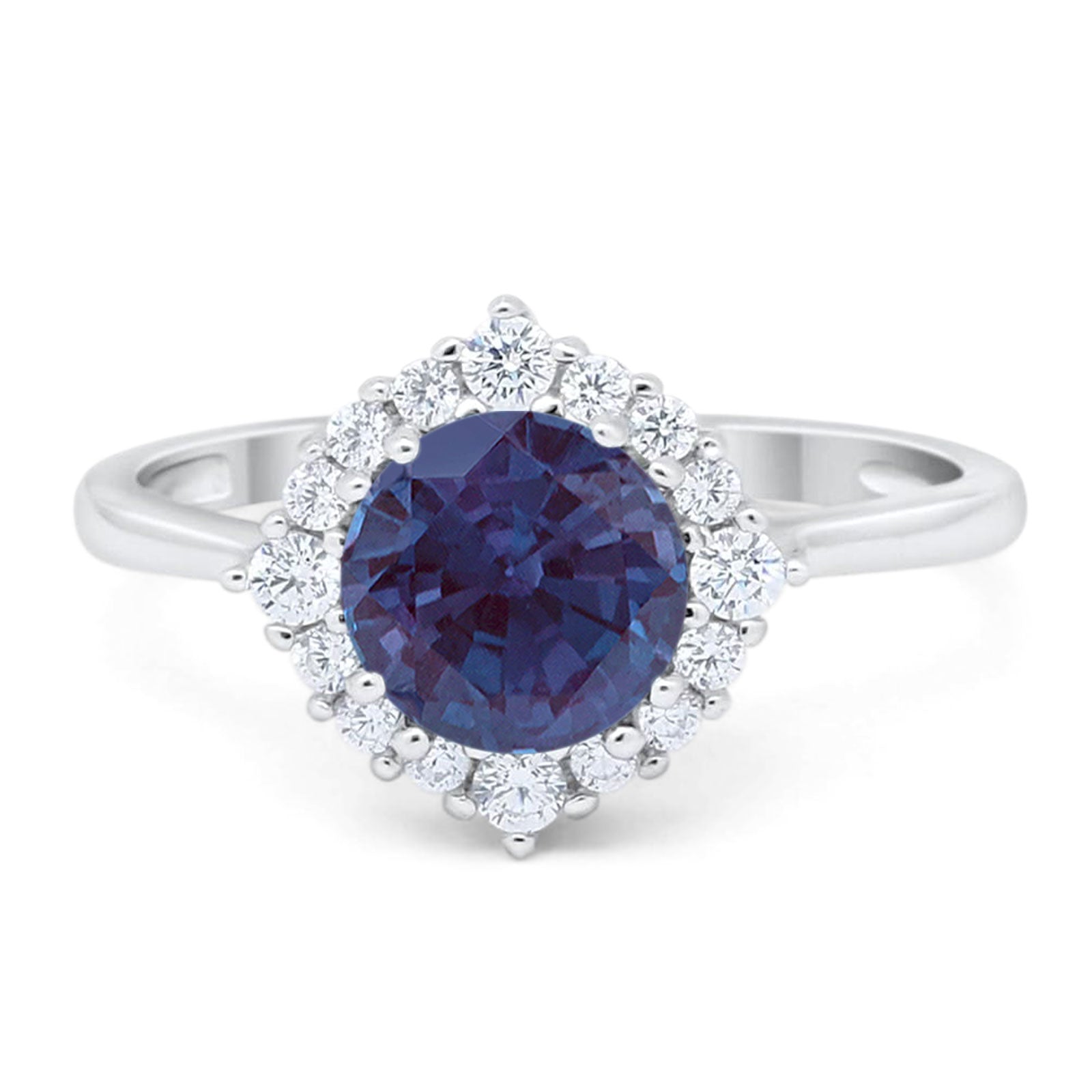 Vintage Style Round Lab Alexandrite Halo Ring 925 Sterling Silver