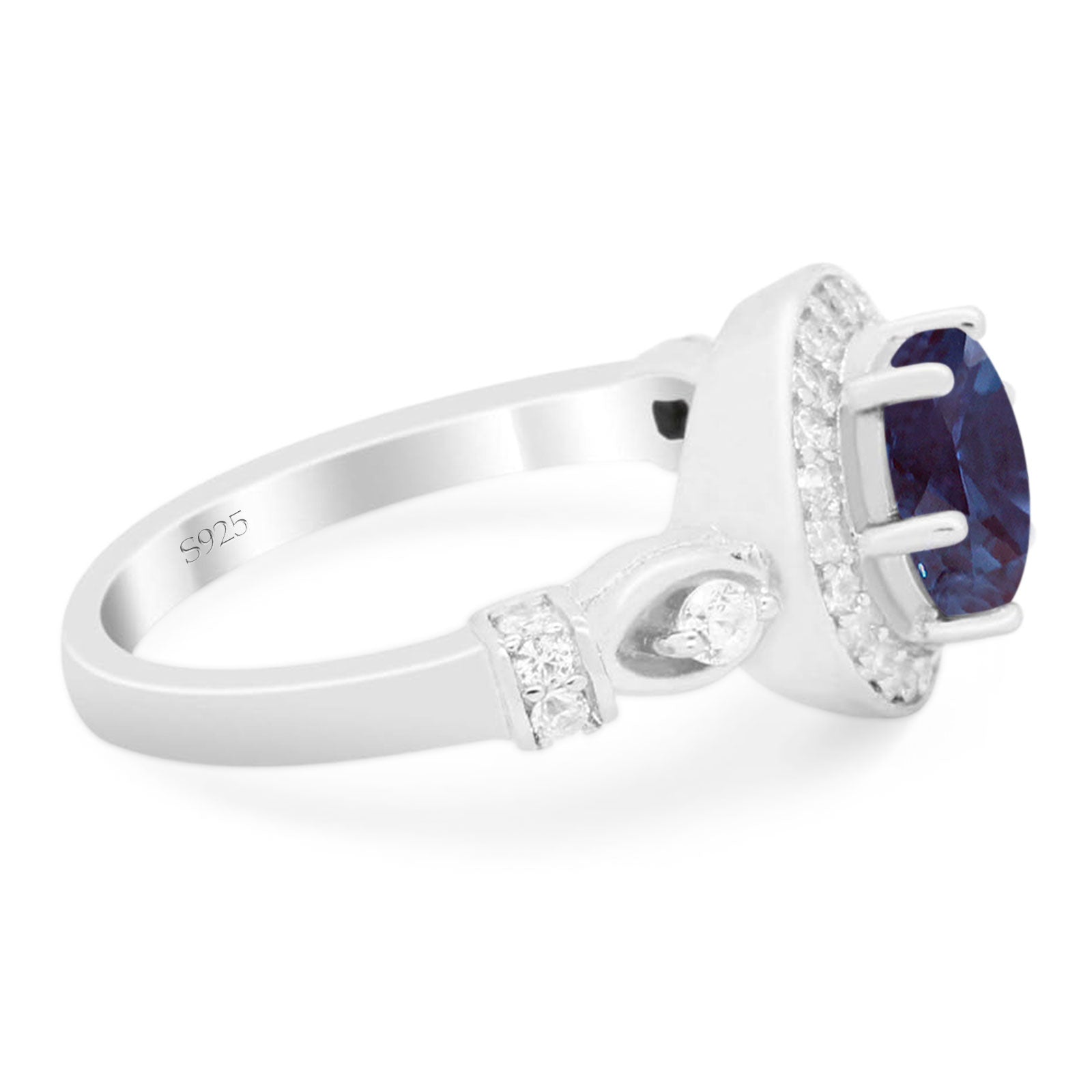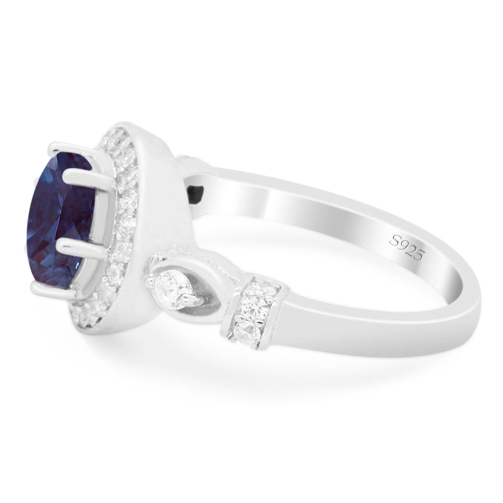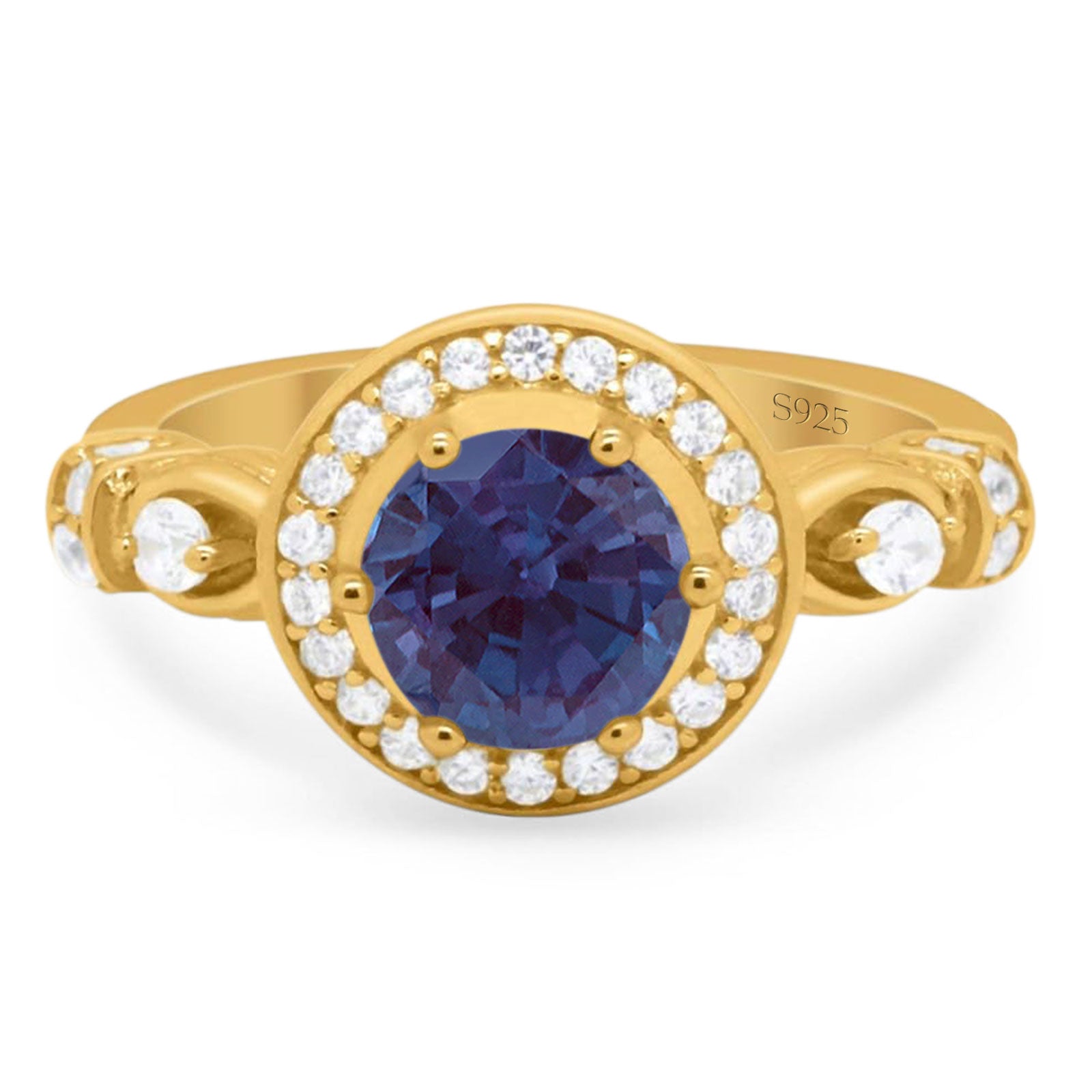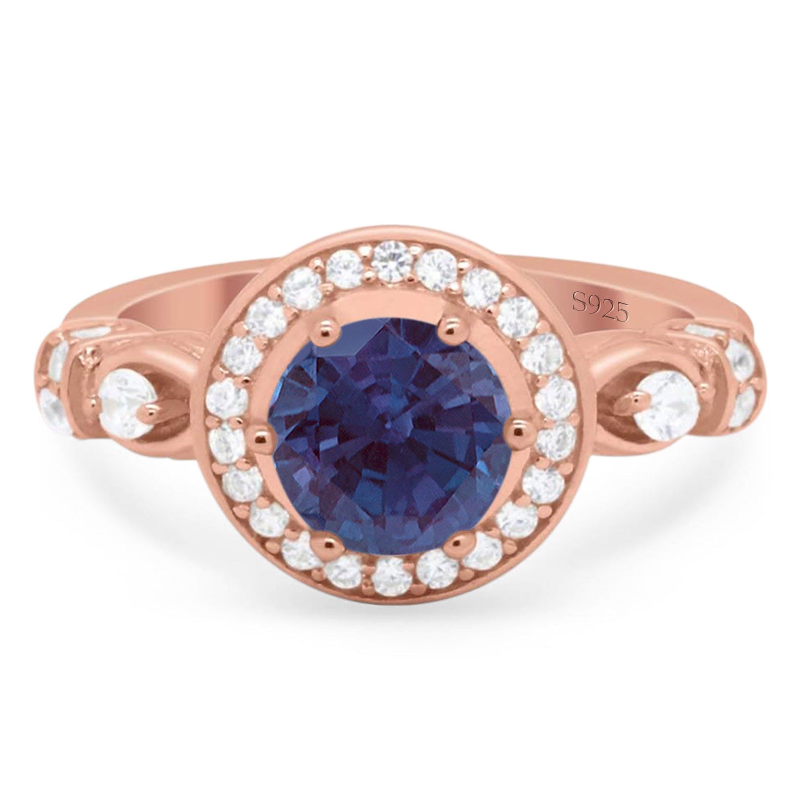Vintage Style Round Lab Alexandrite Halo Wedding Ring 925 Sterling Silver