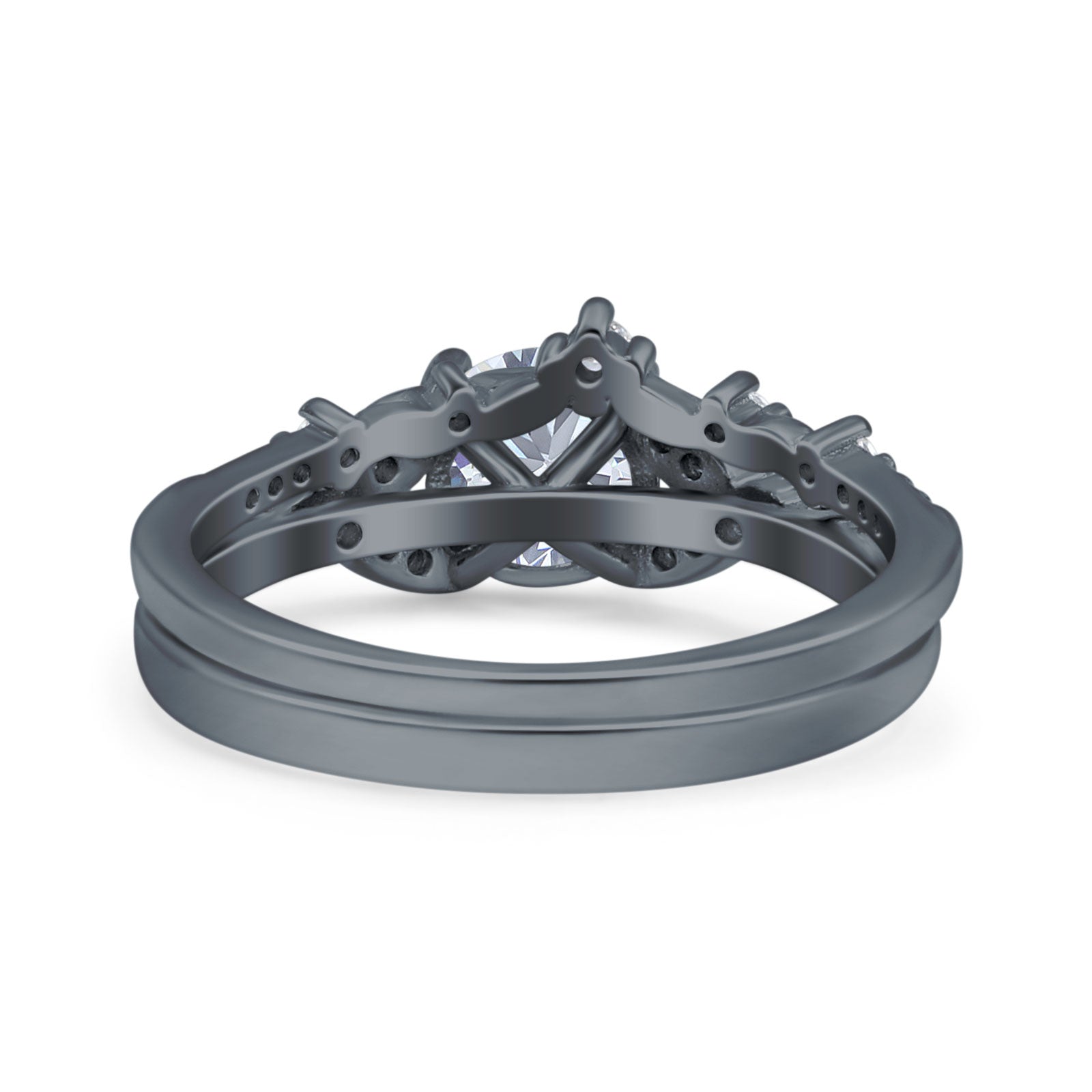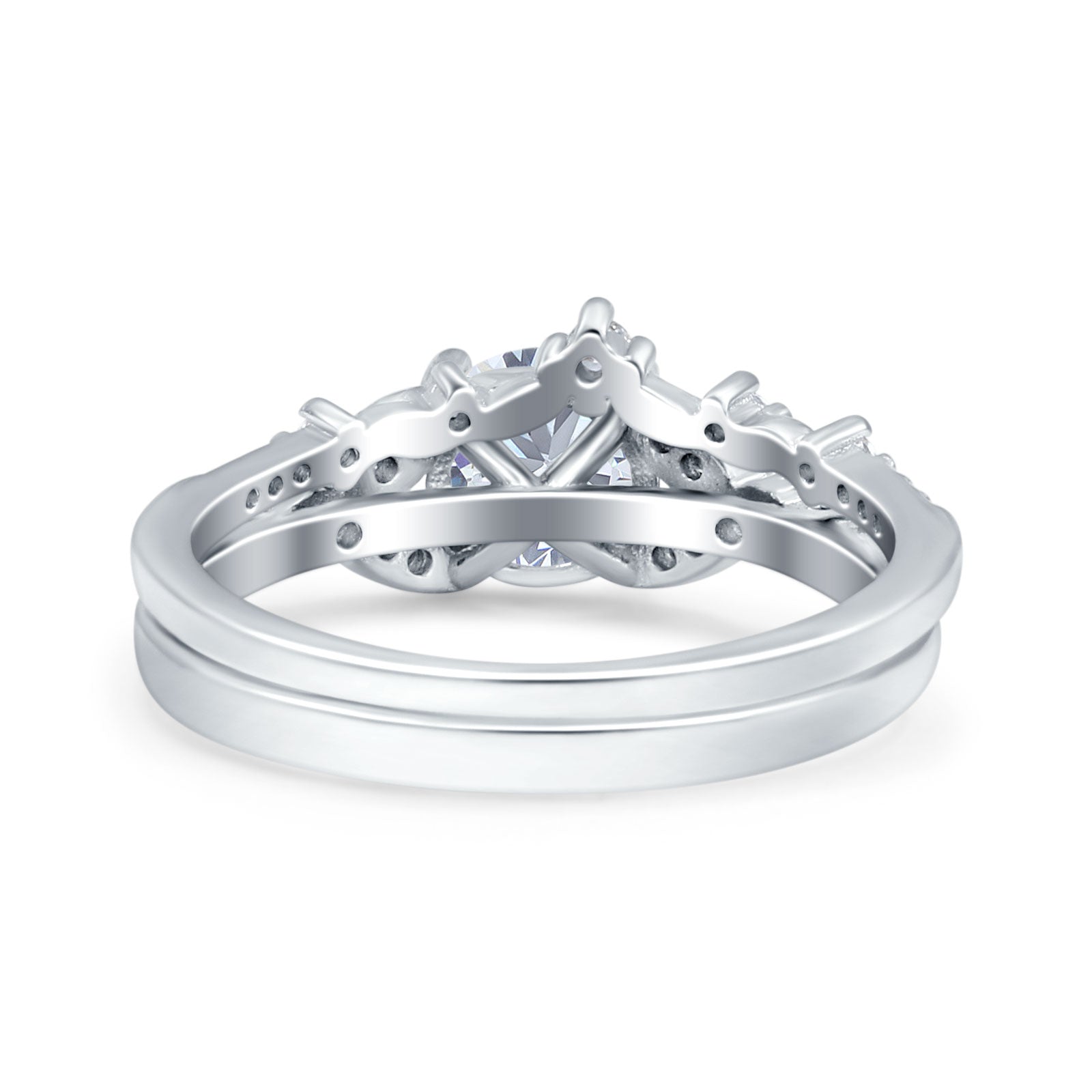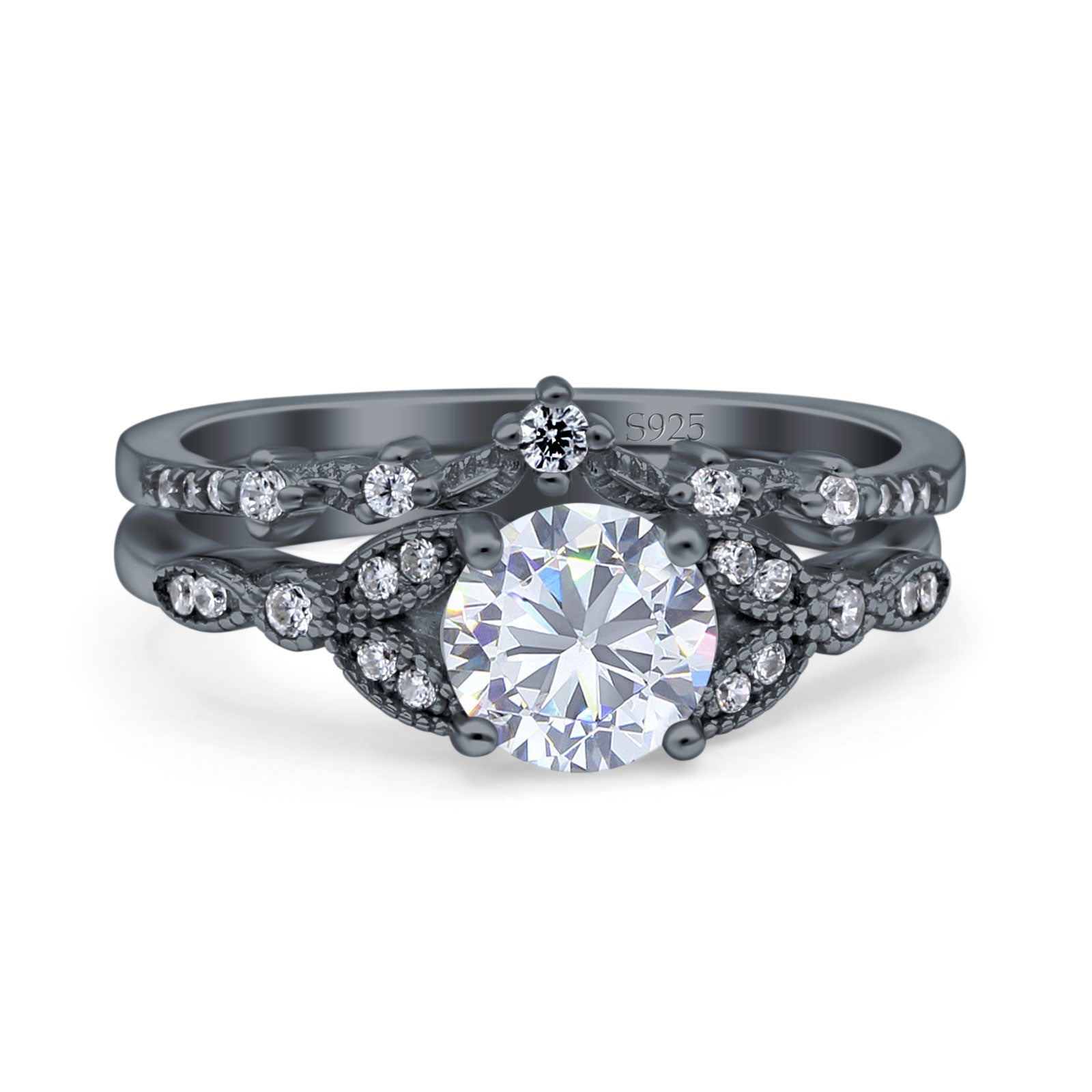 Vintage Style Round Natural Moissanite Two Piece Bridal Ring 925 Sterling Silver