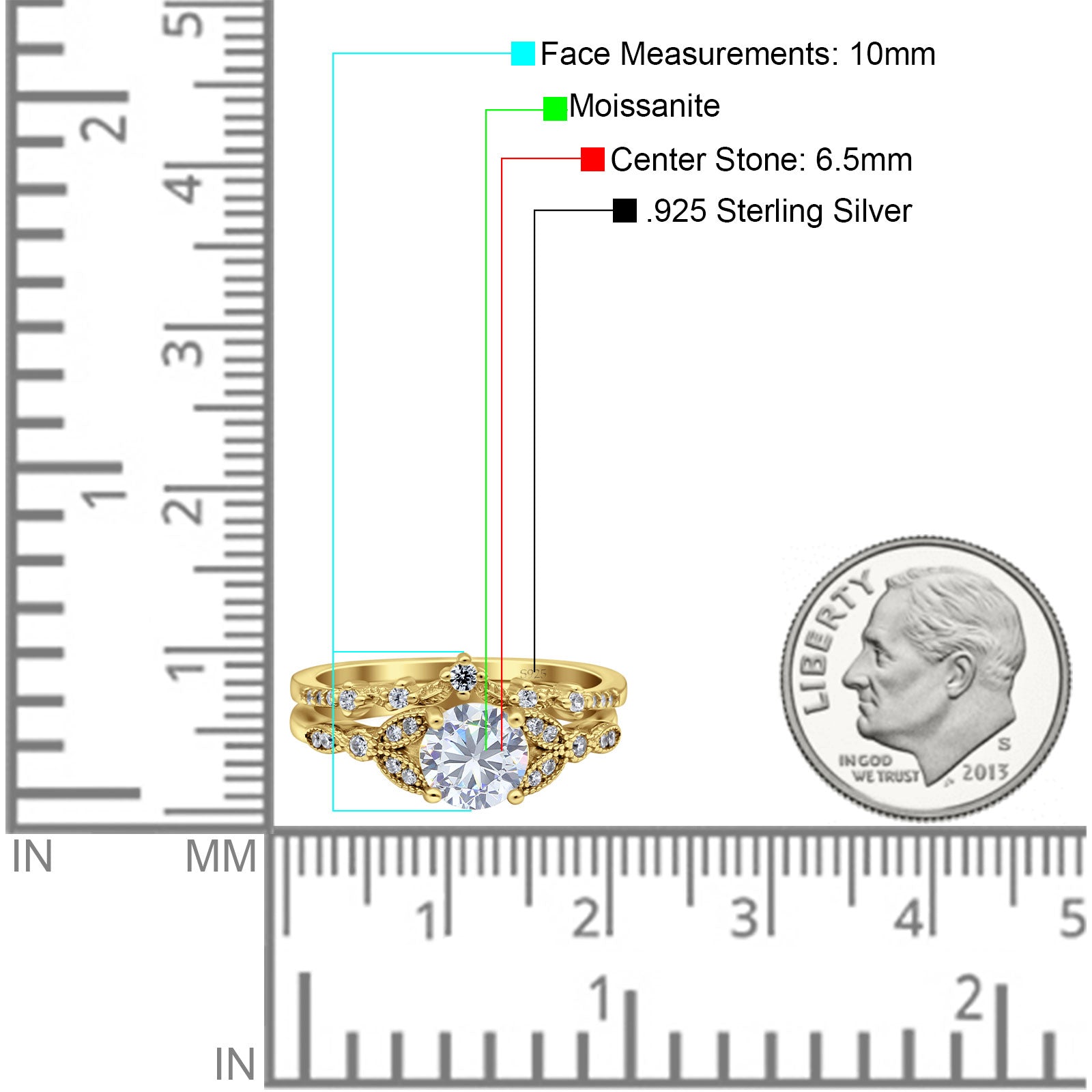 Center Stone Measurements: 6.5mm (0.25 inch).