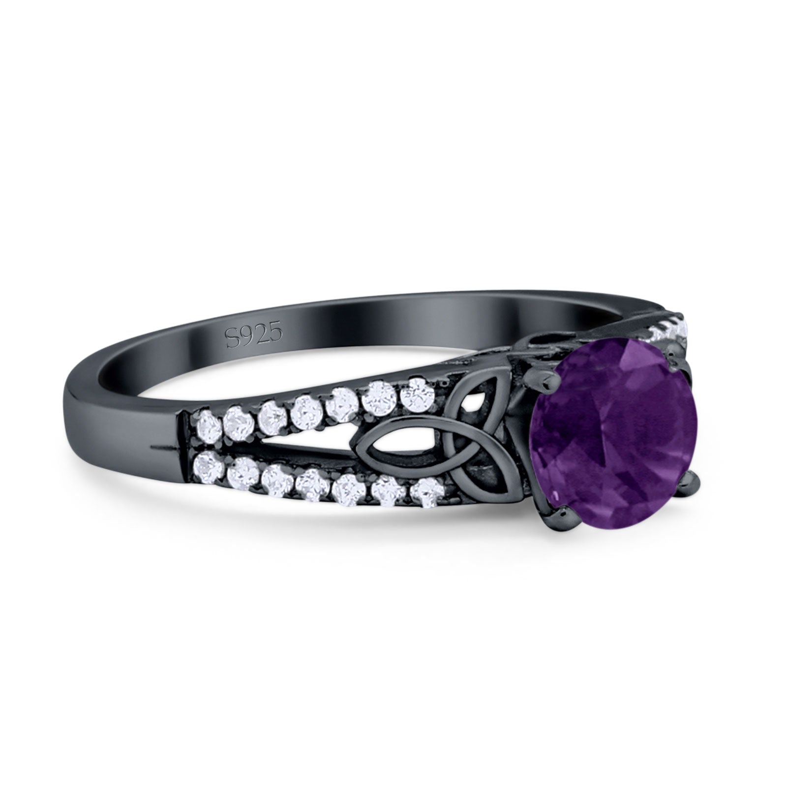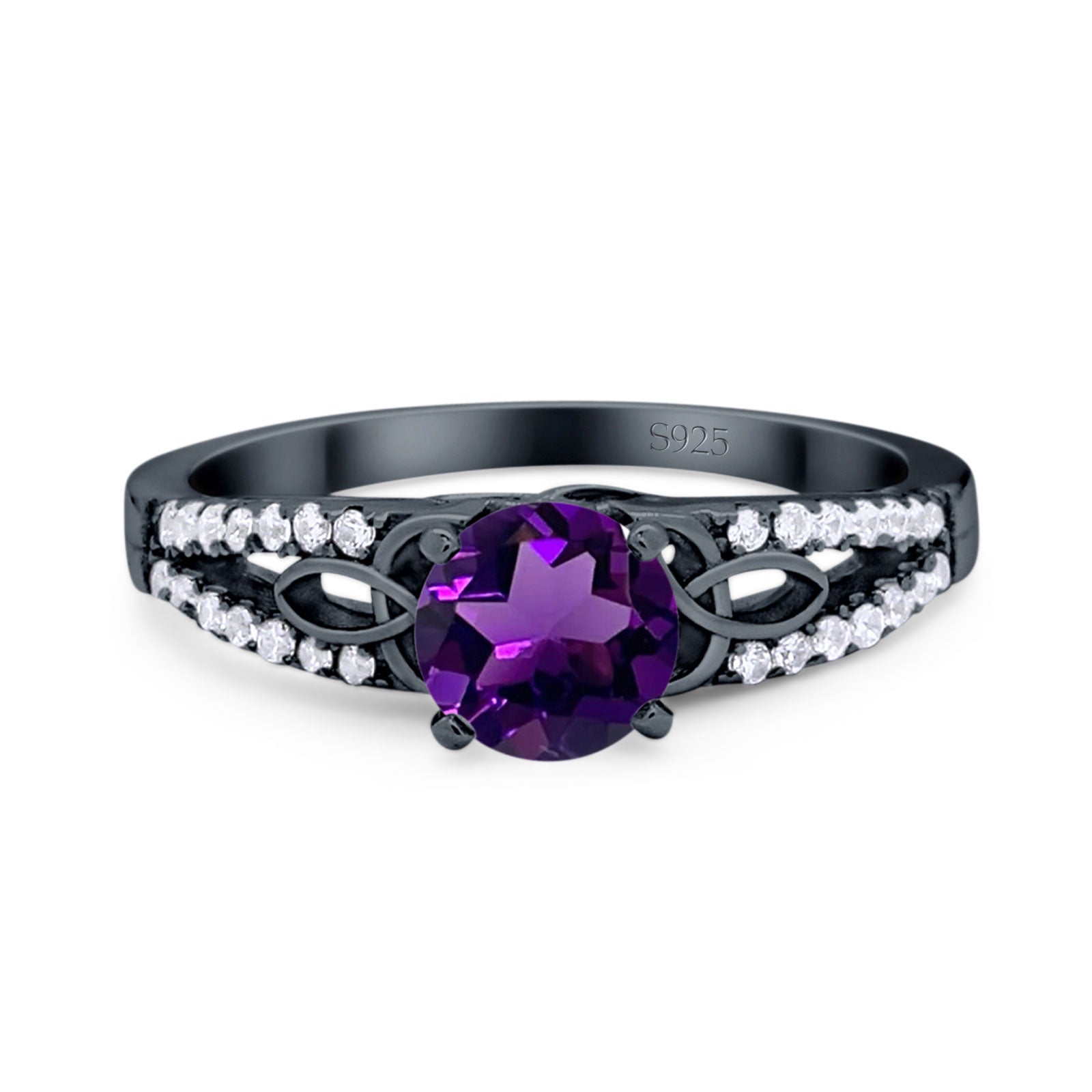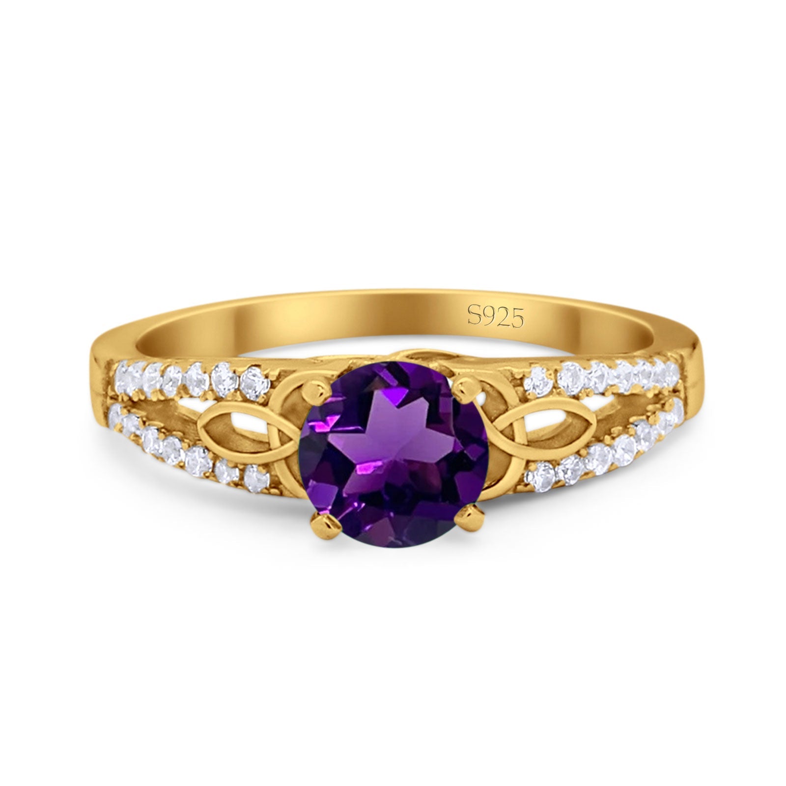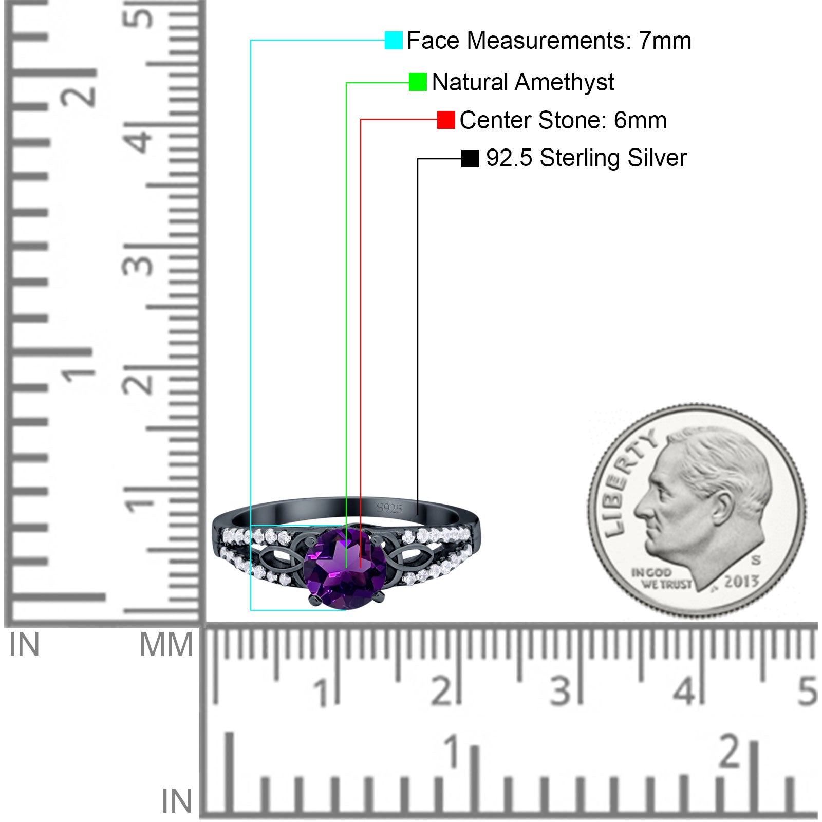 Vintage Style Round Natural Amethyst Art Deco Ring 925 Sterling Silver