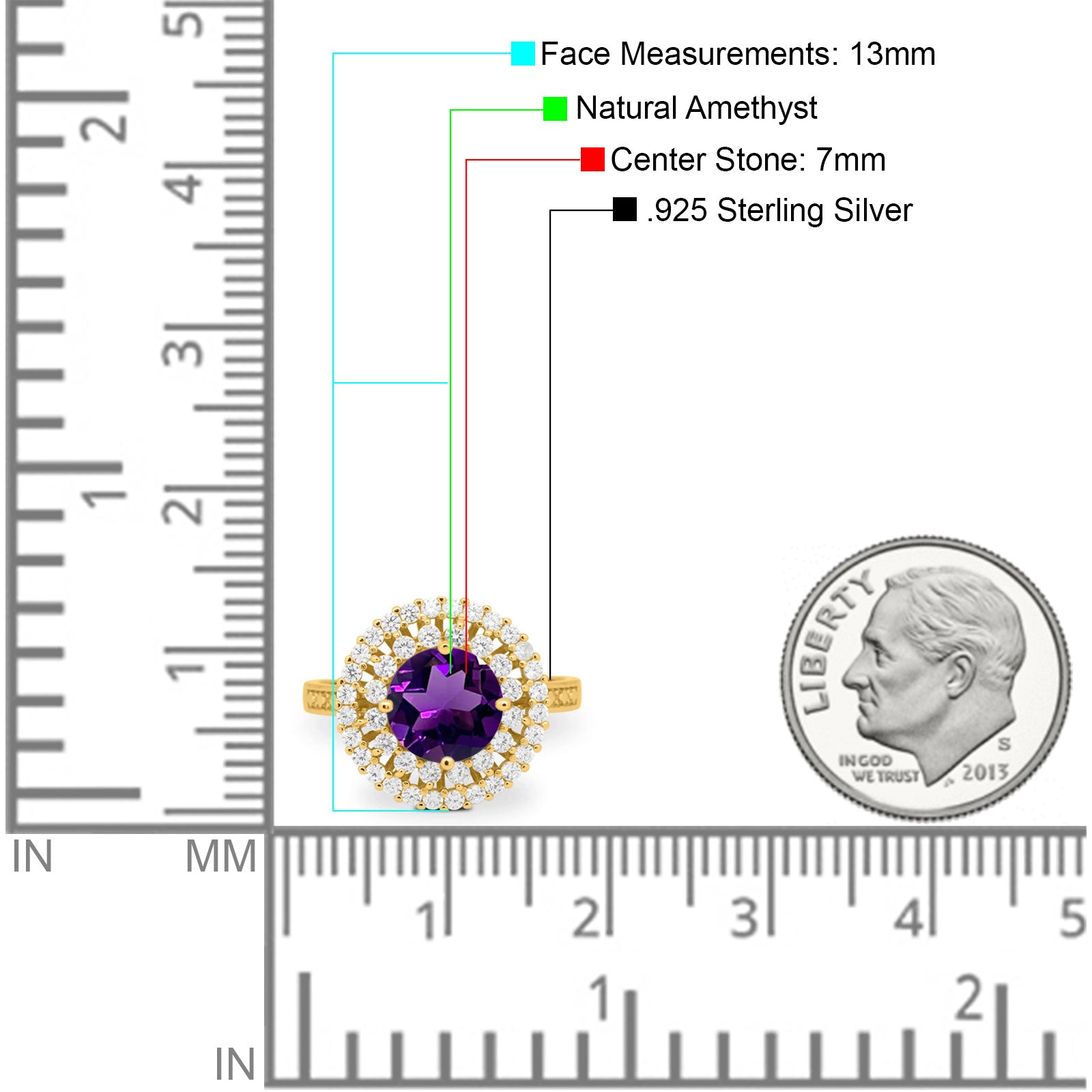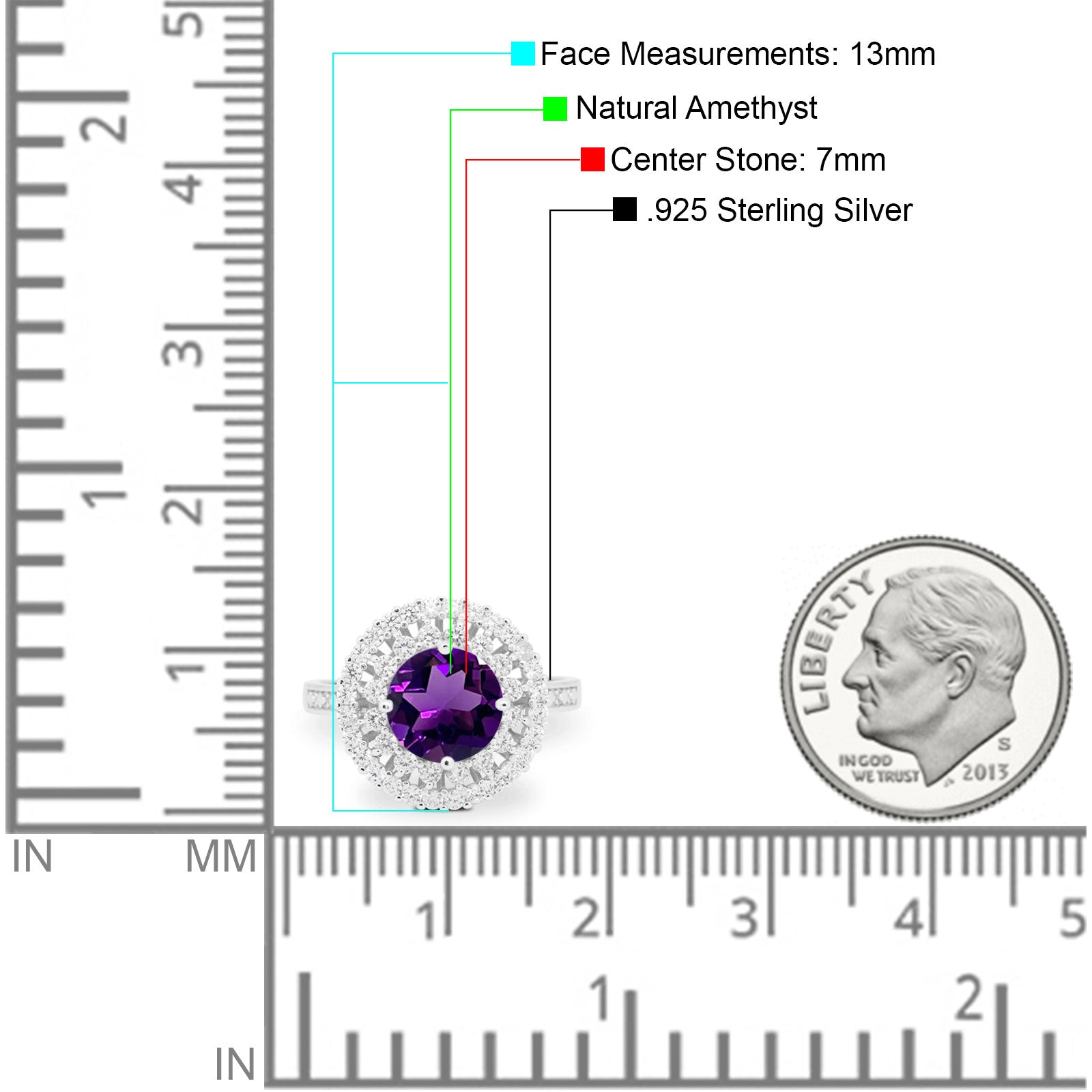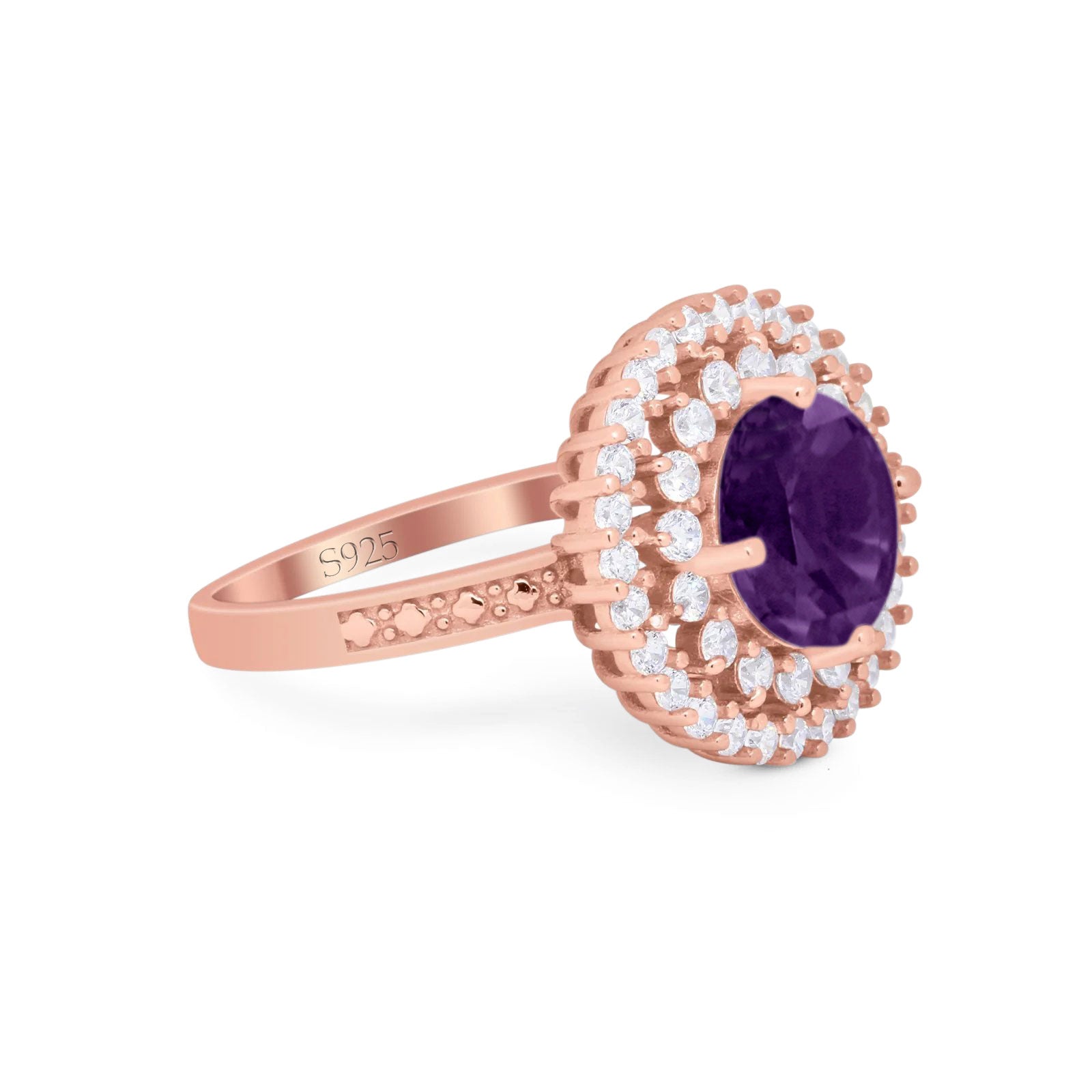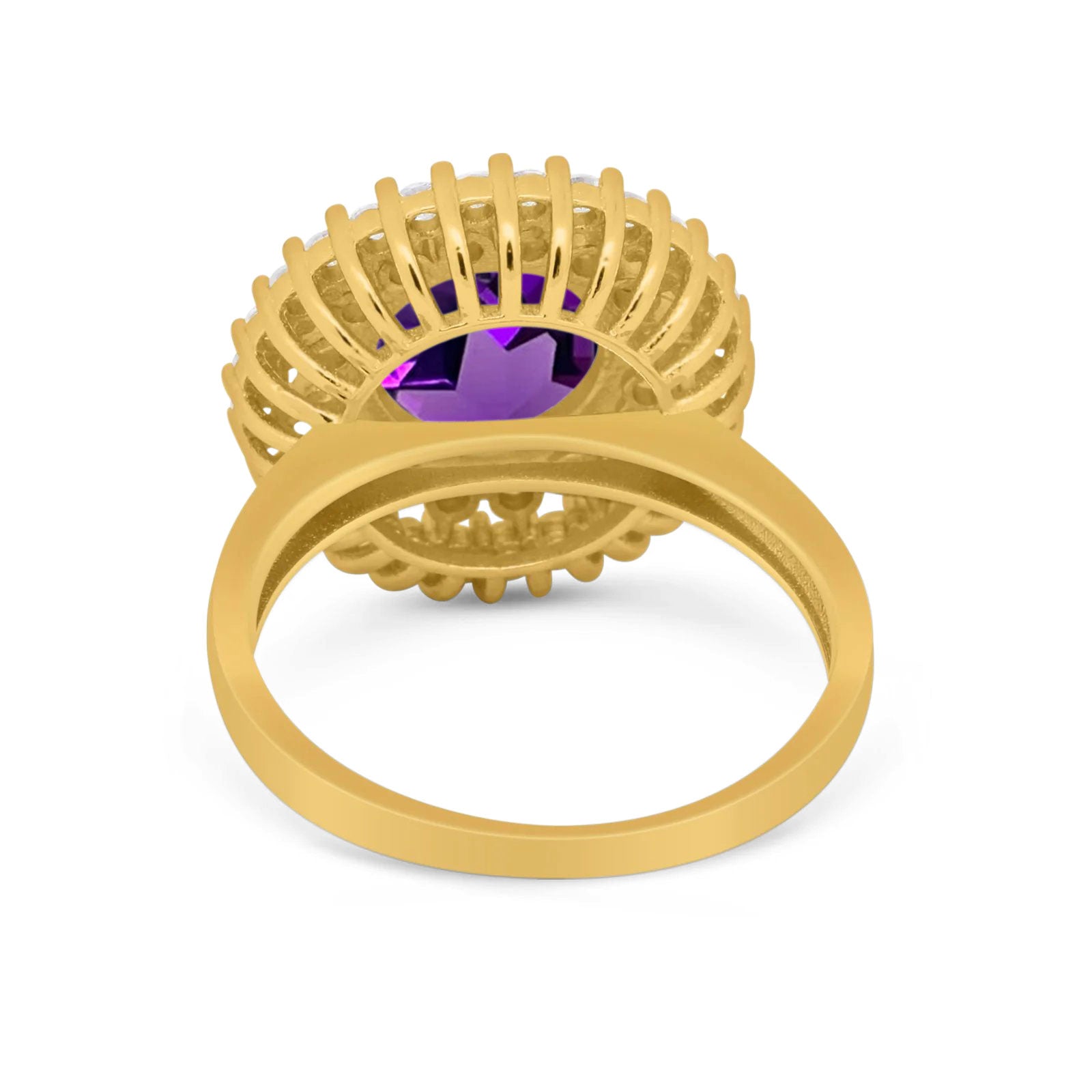 Vintage Style Round Natural Amethyst Cocktail Ring 925 Sterling Silver