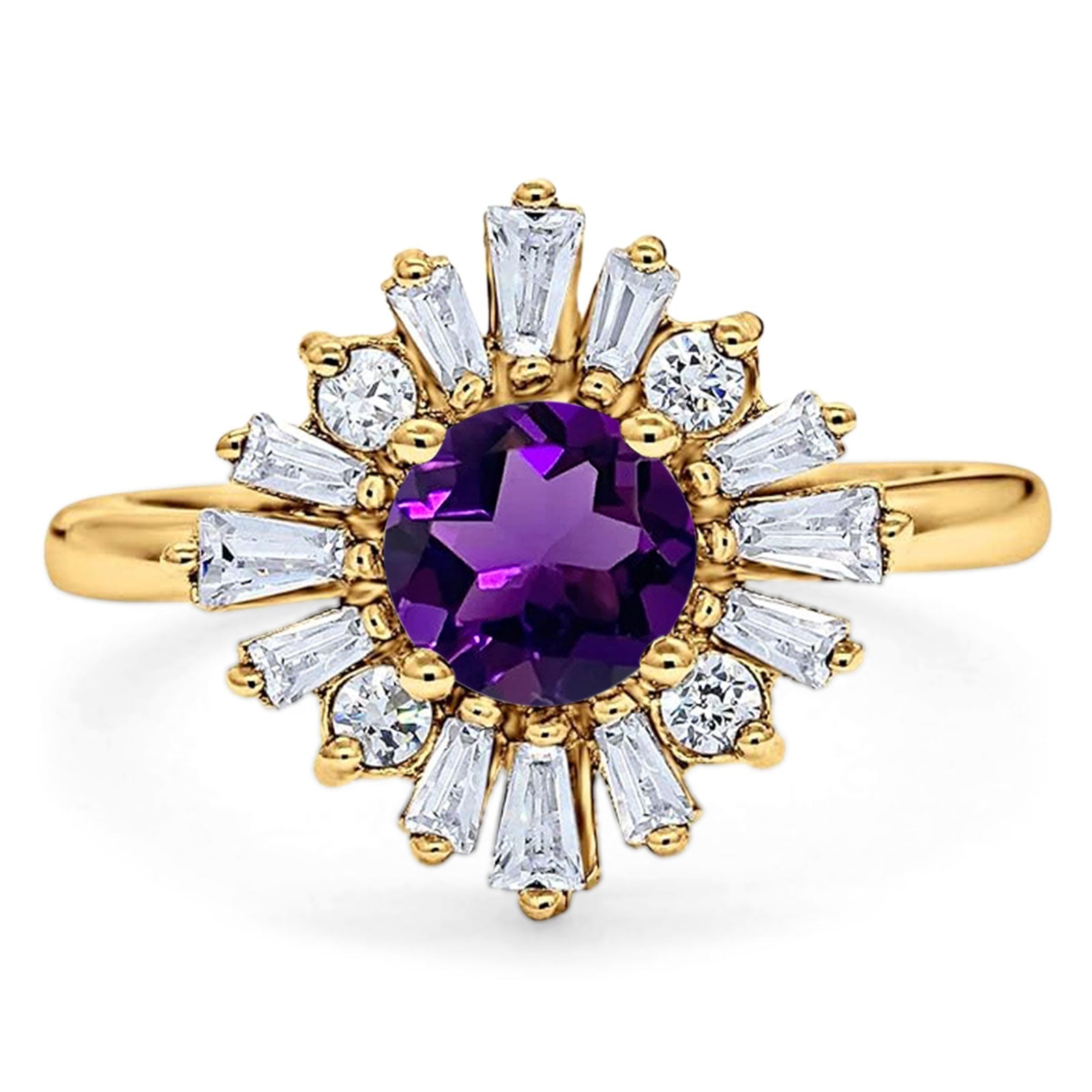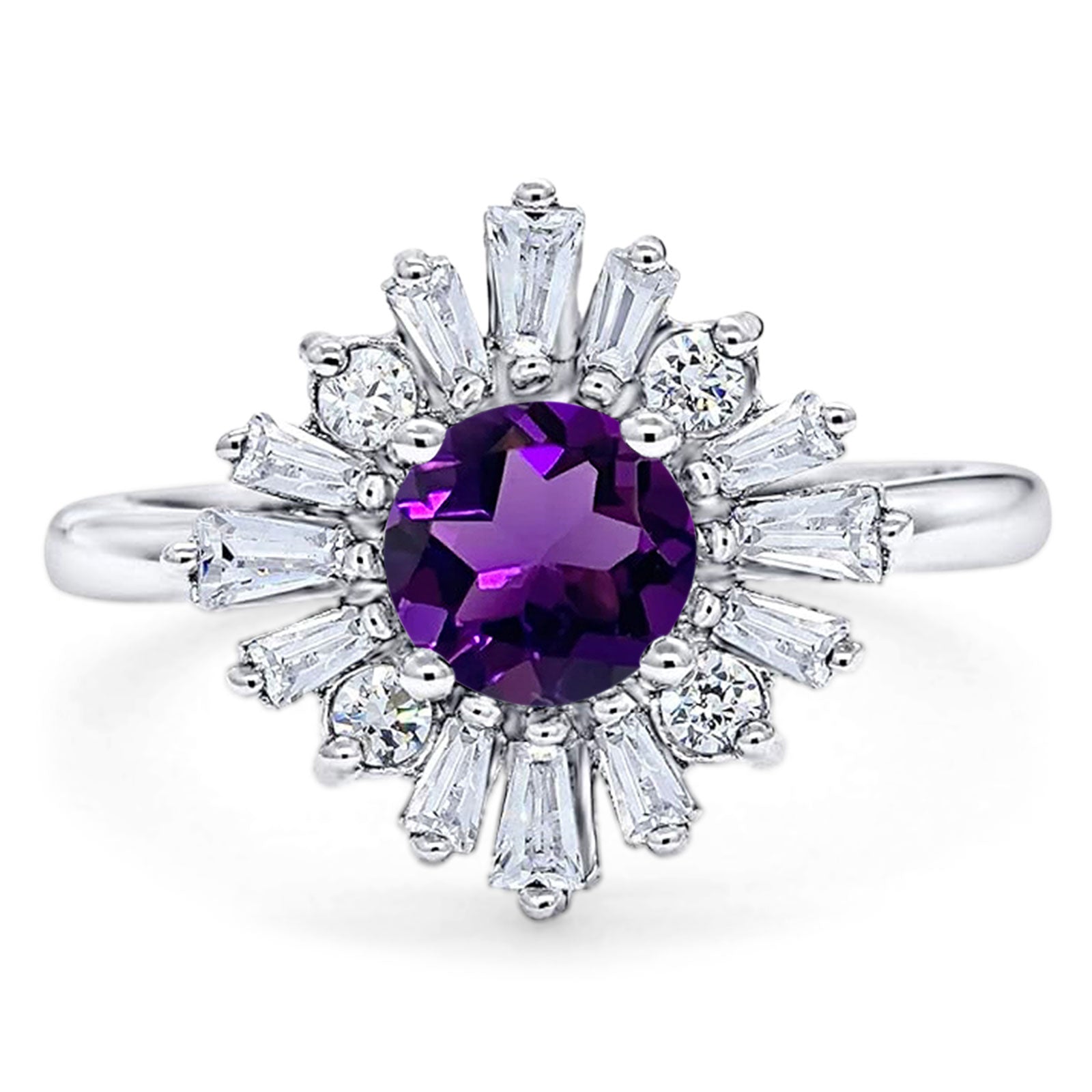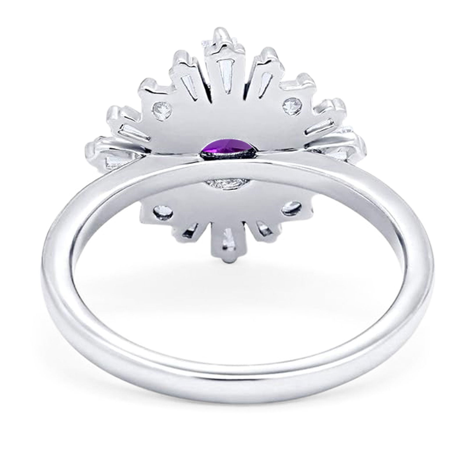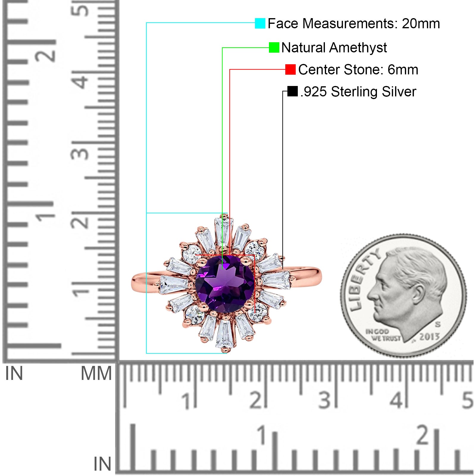 Vintage Style Round Natural Amethyst Floral Cocktail Ring 925 Sterling Silver