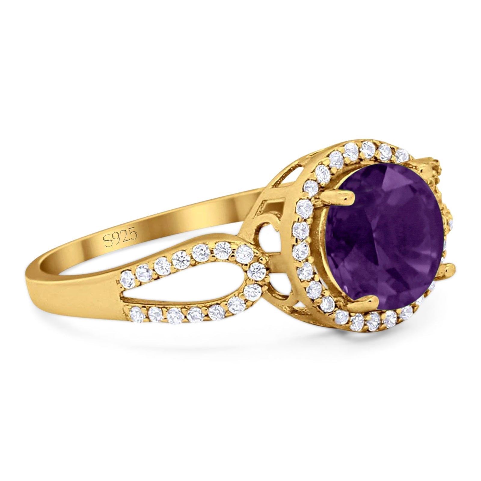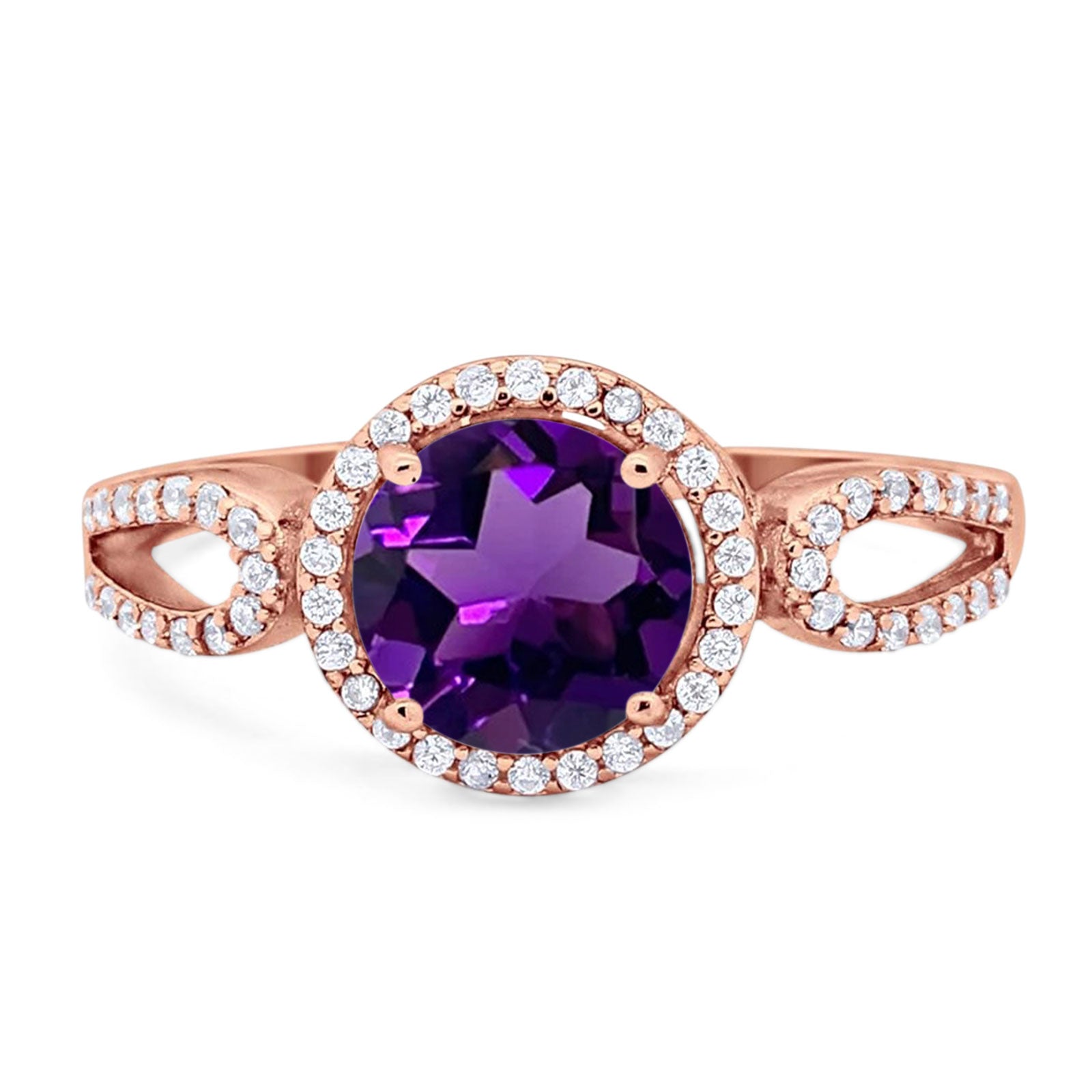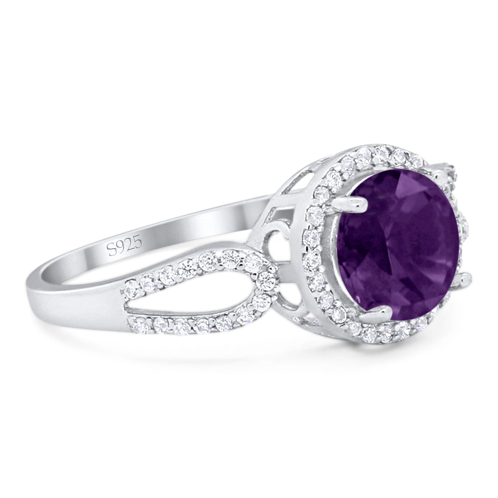 Vintage Style Round Natural Amethyst Split Shank Ring 925 Sterling Silver
