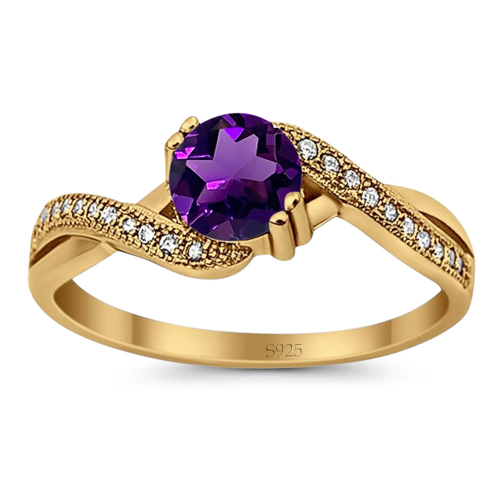 Vintage Style Round Natural Amethyst Twisted Ring 925 Sterling Silver