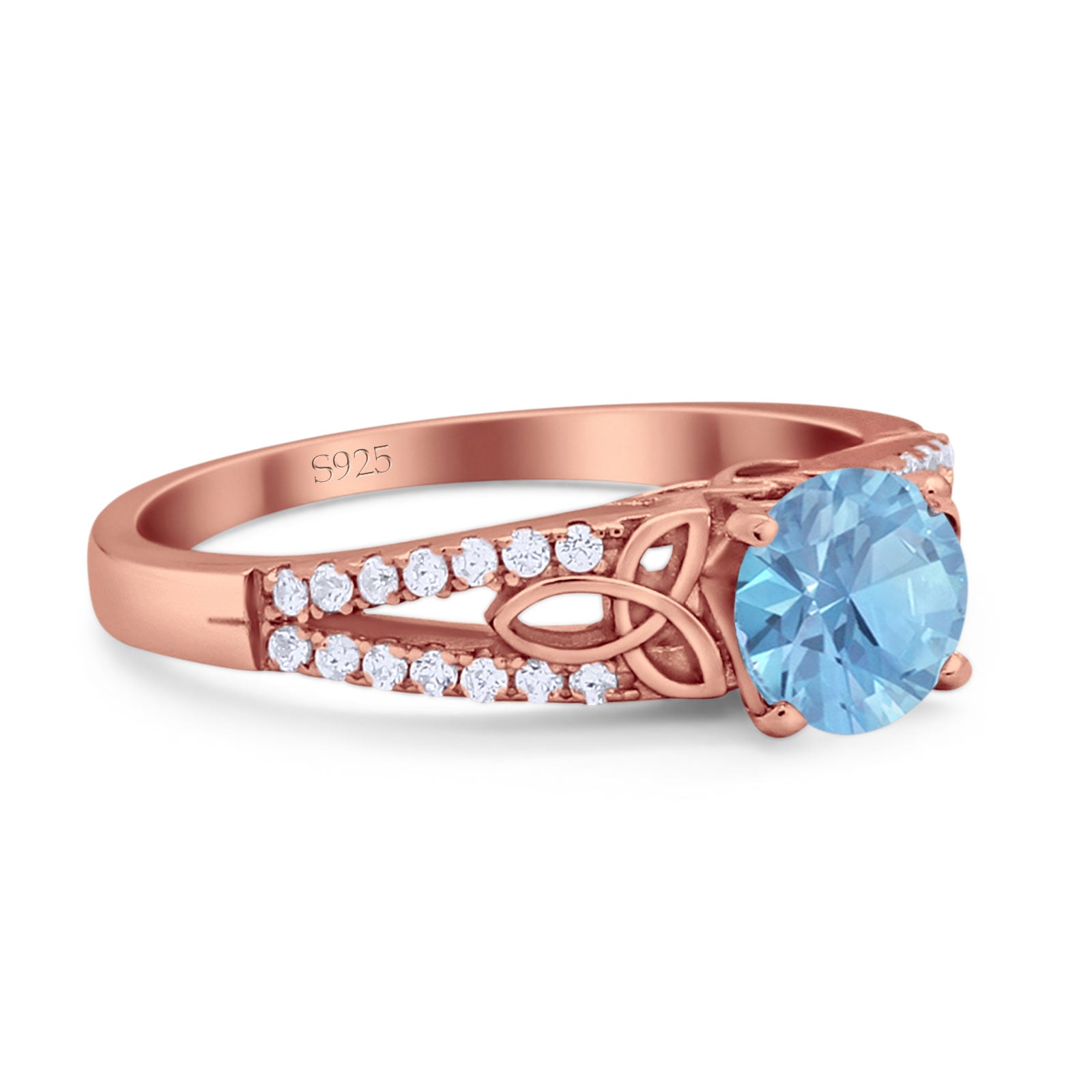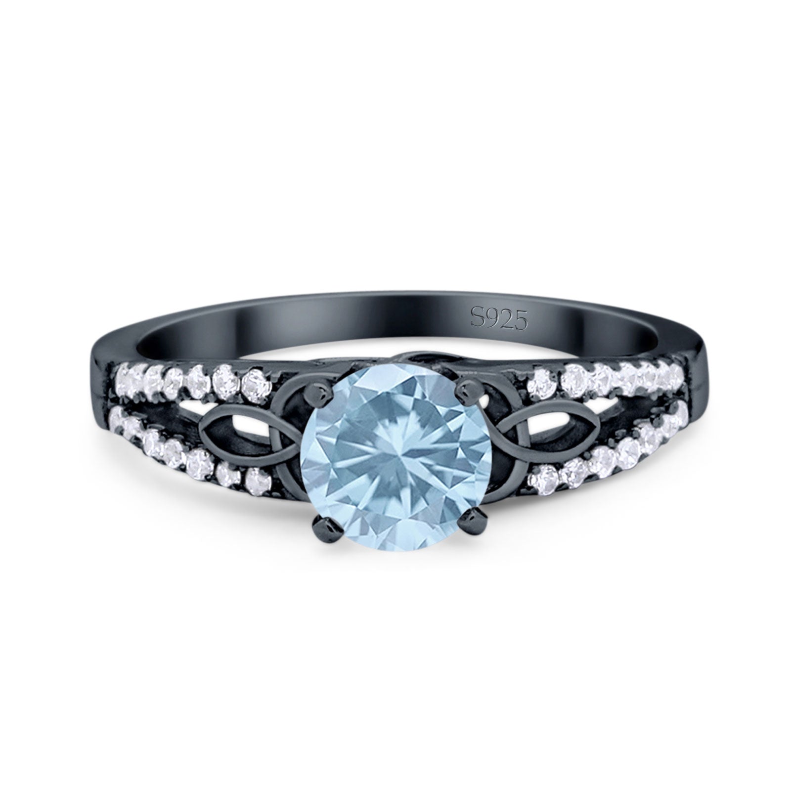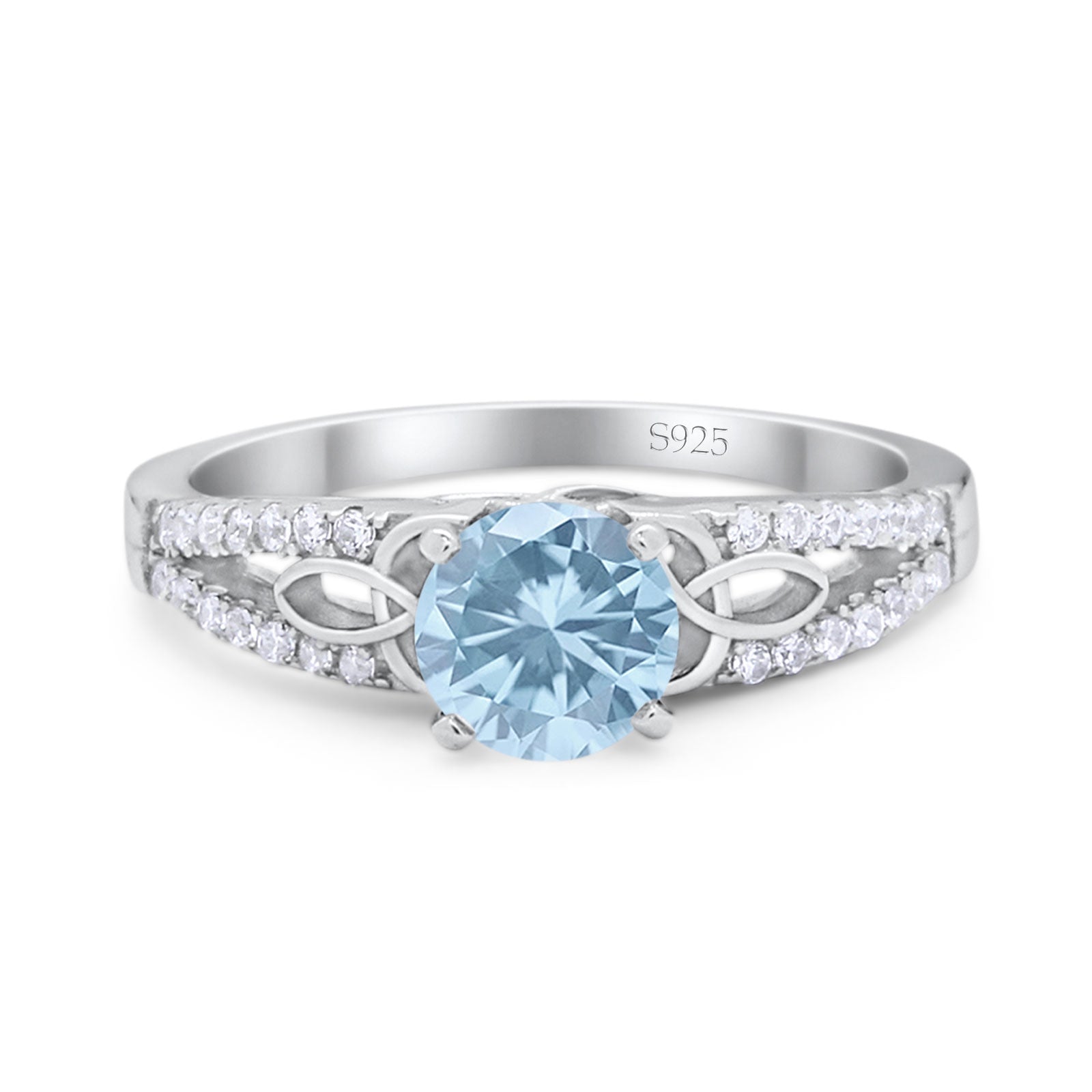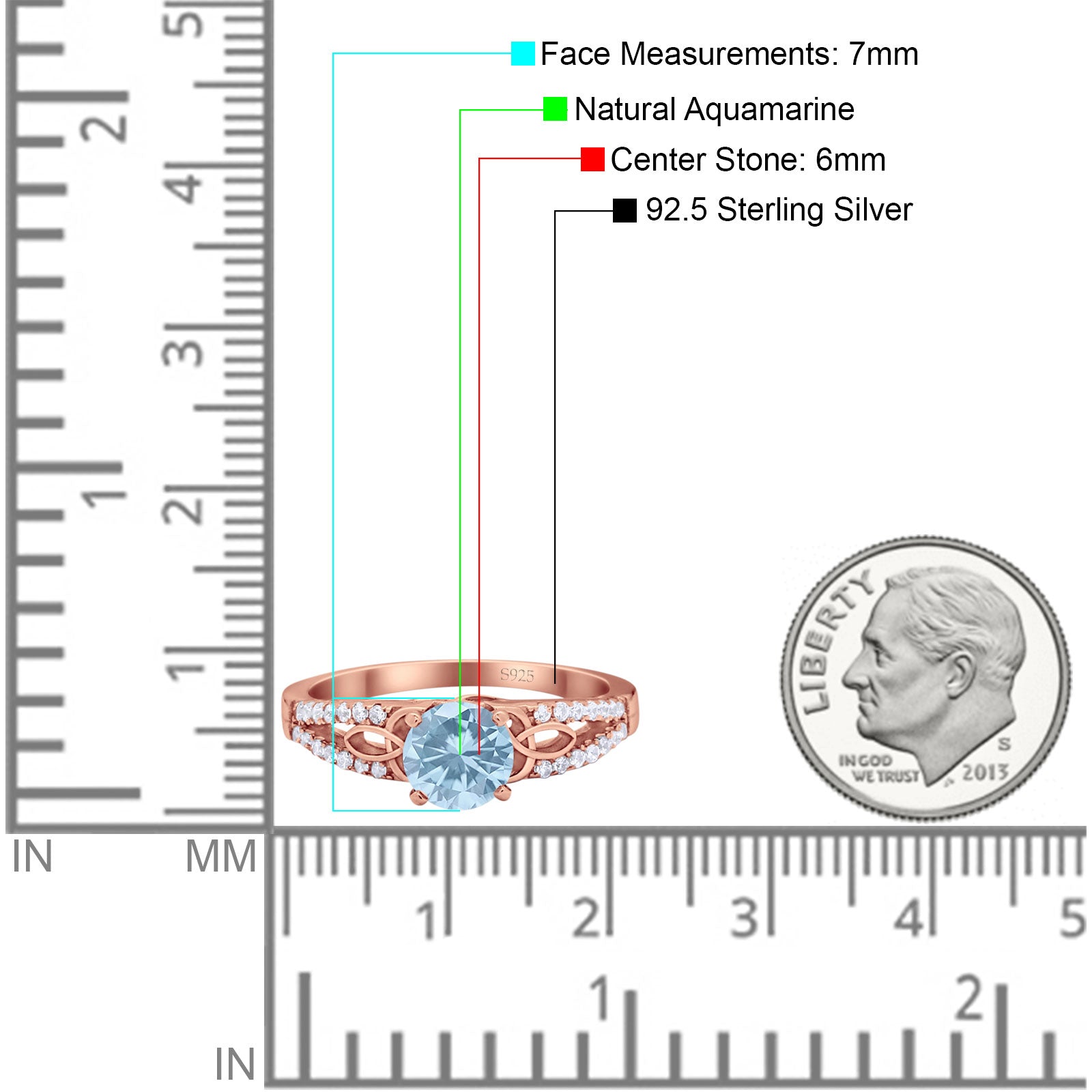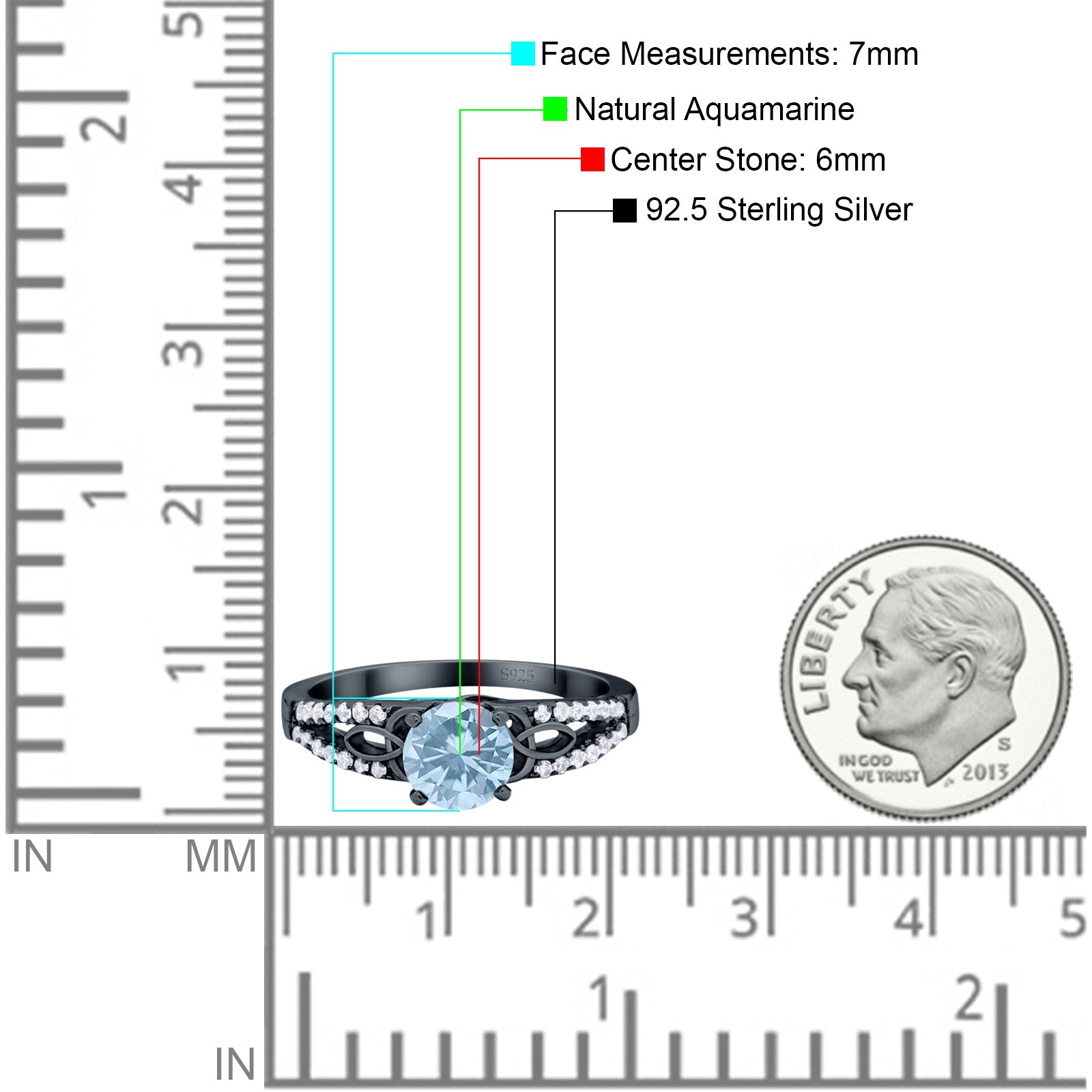 Vintage Style Round Natural Aquamarine Art Deco Ring 925 Sterling Silver