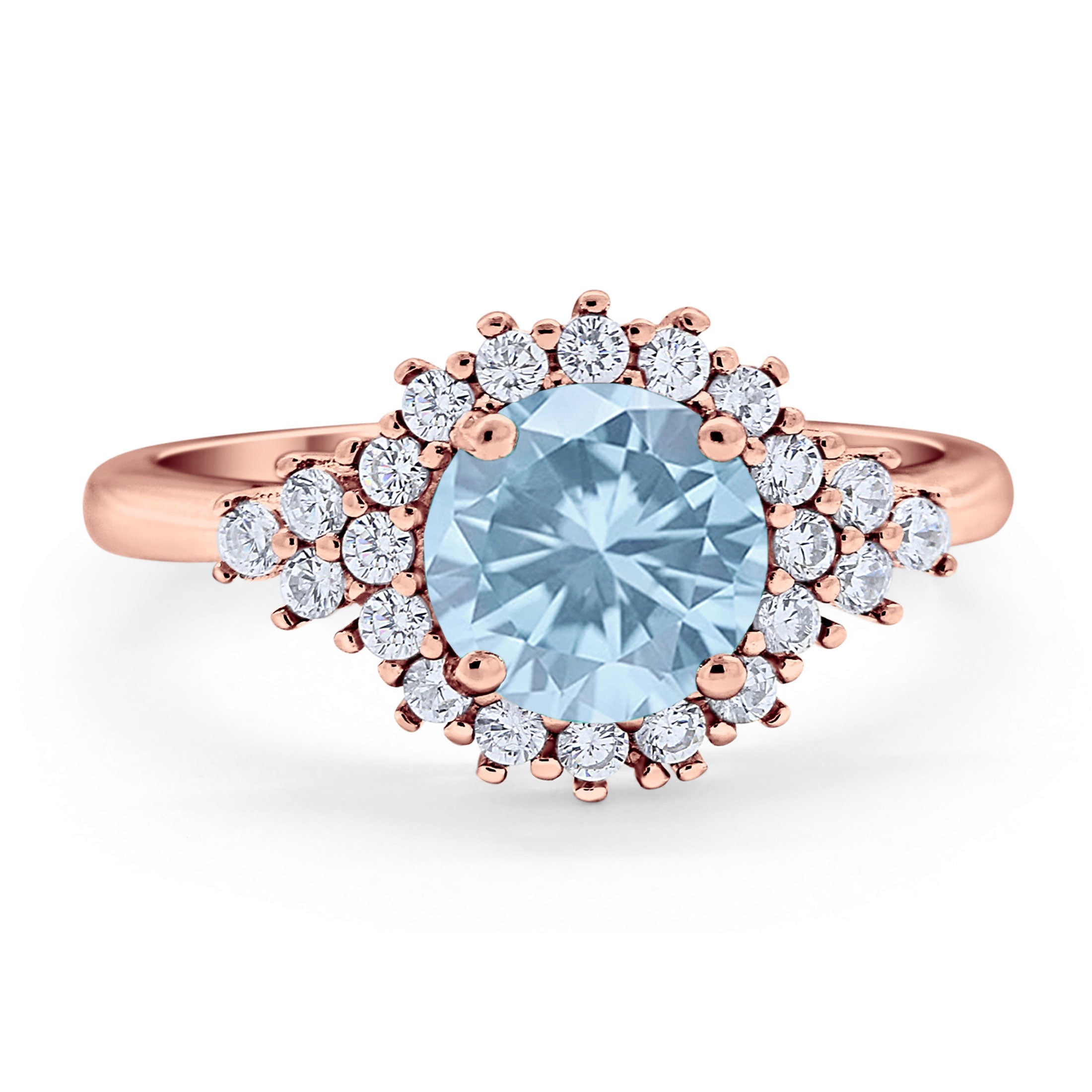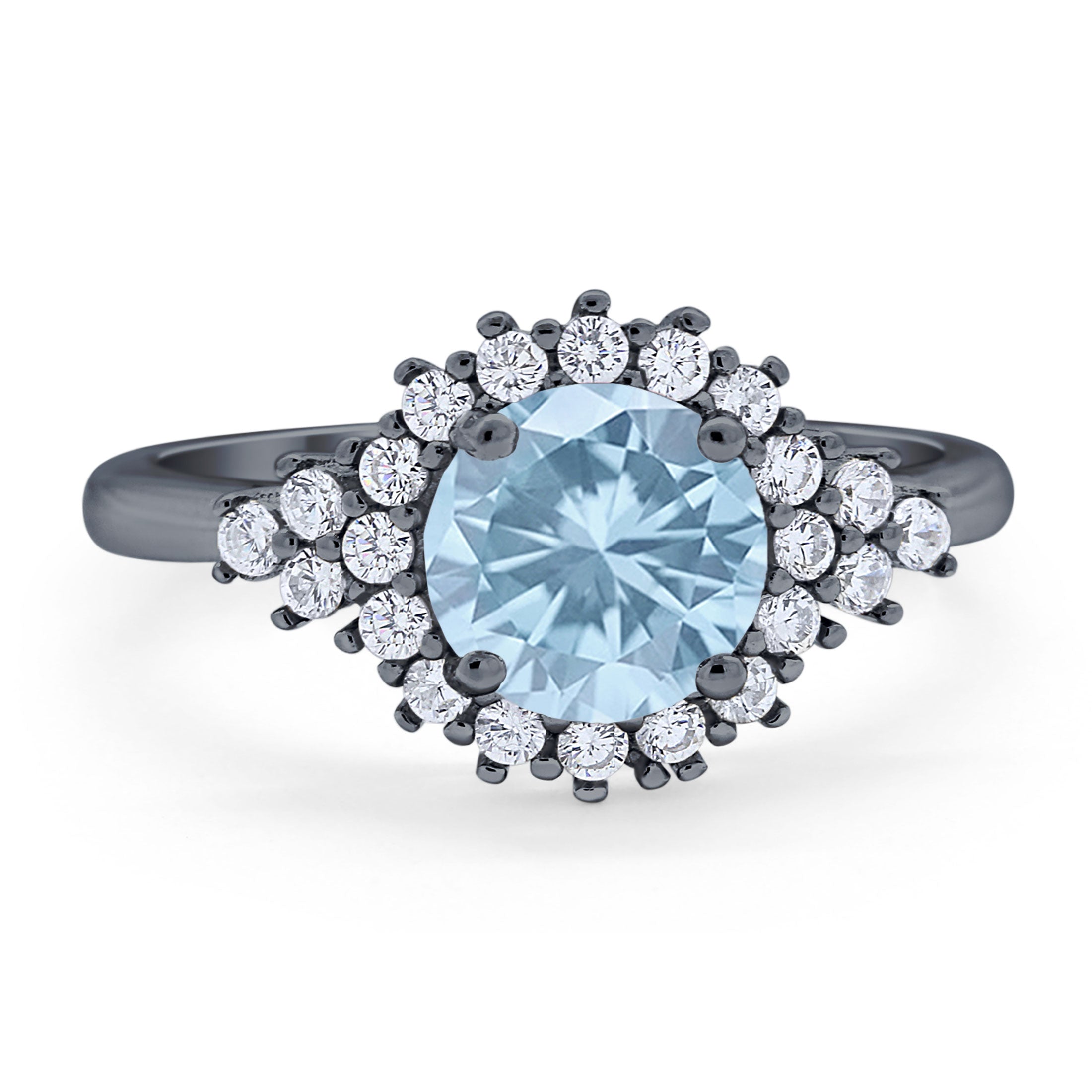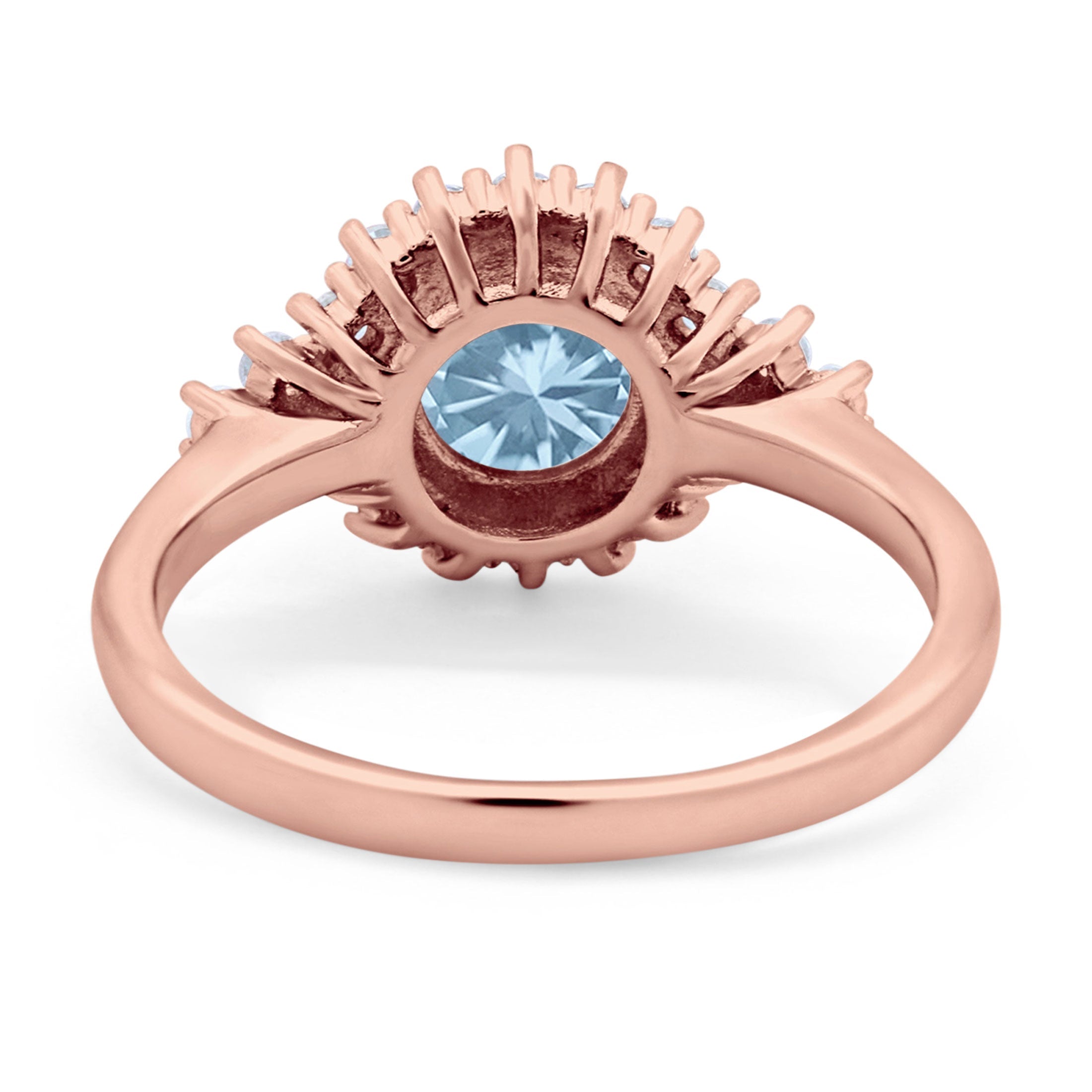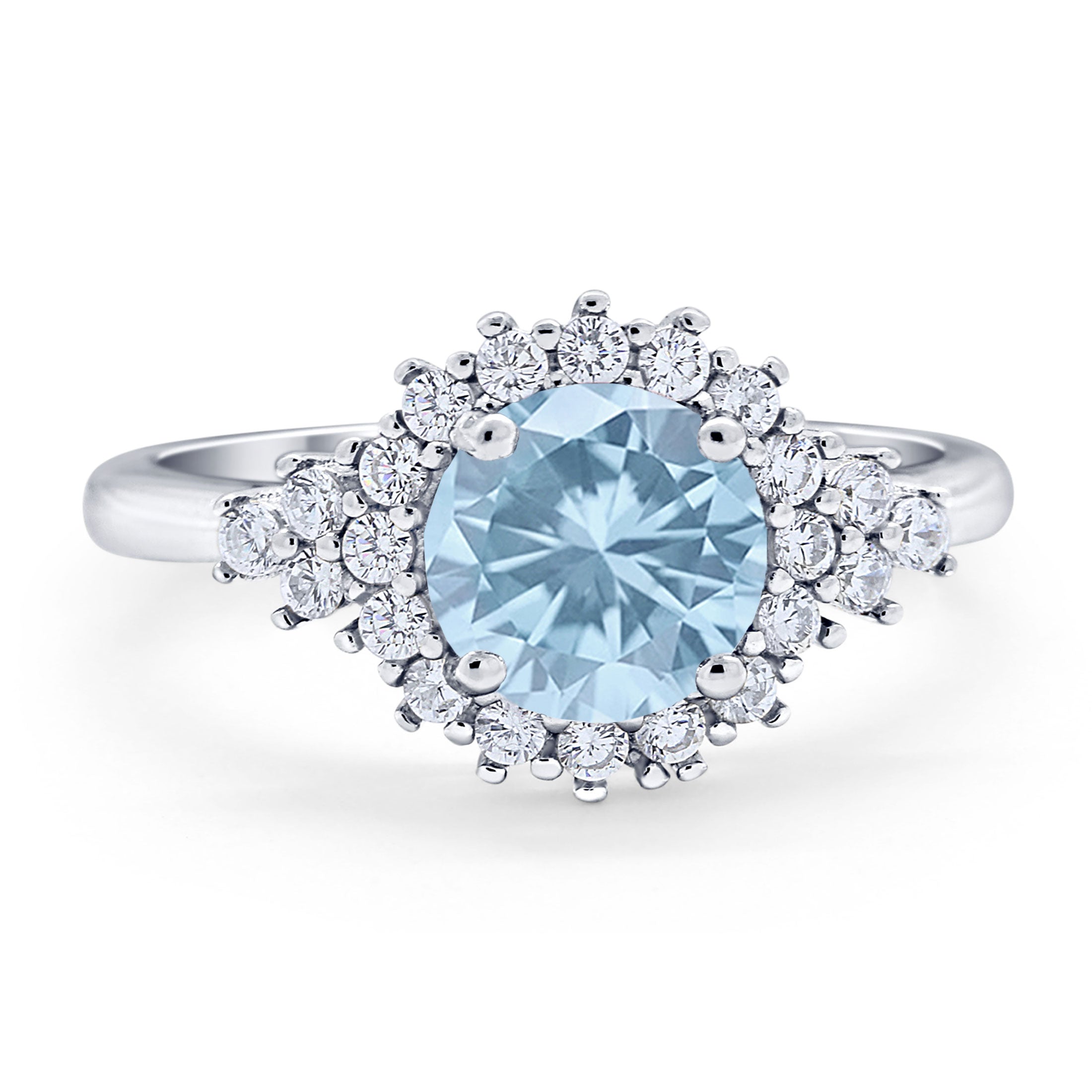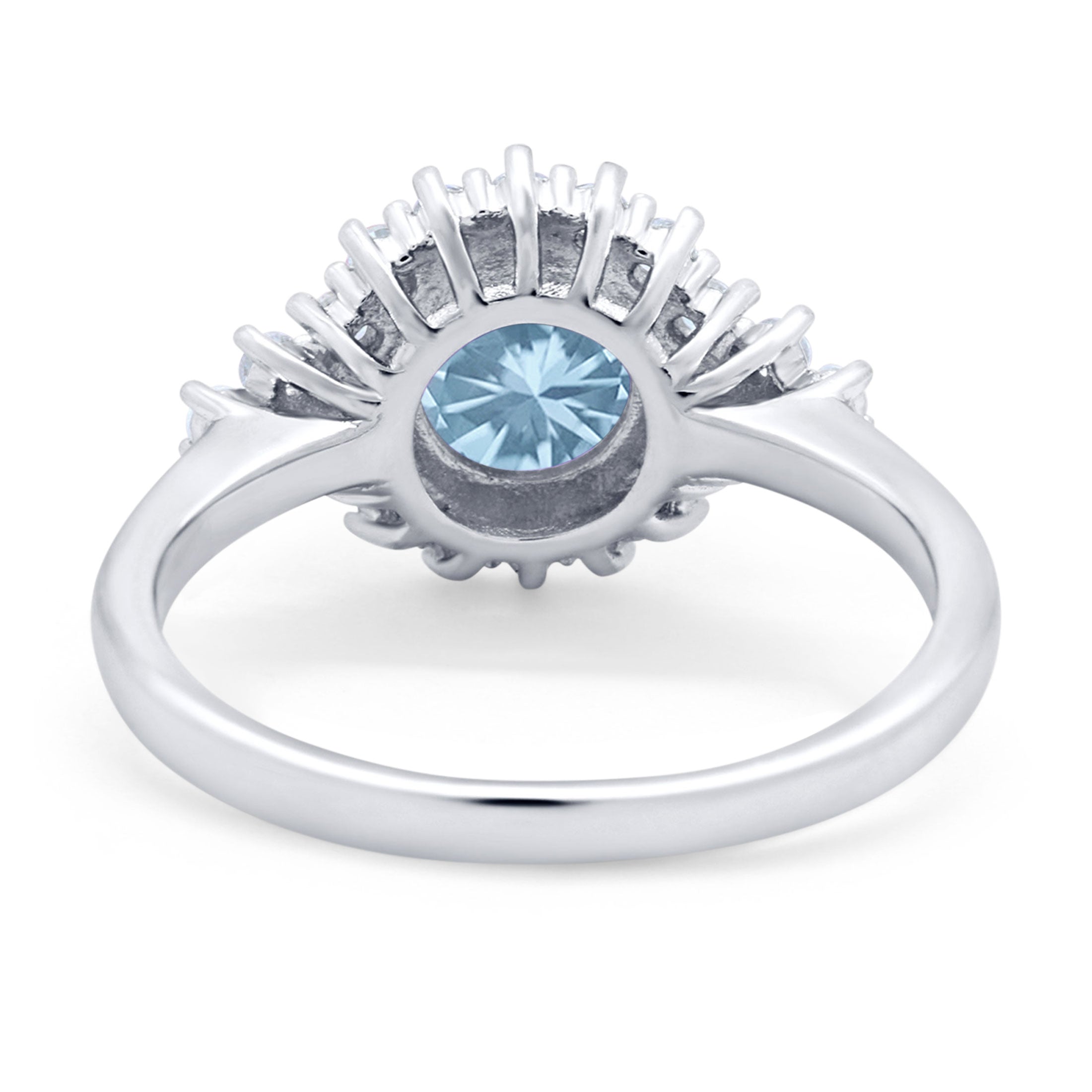 Vintage Style Round Natural Aquamarine Flower Ring 925 Sterling Silver
