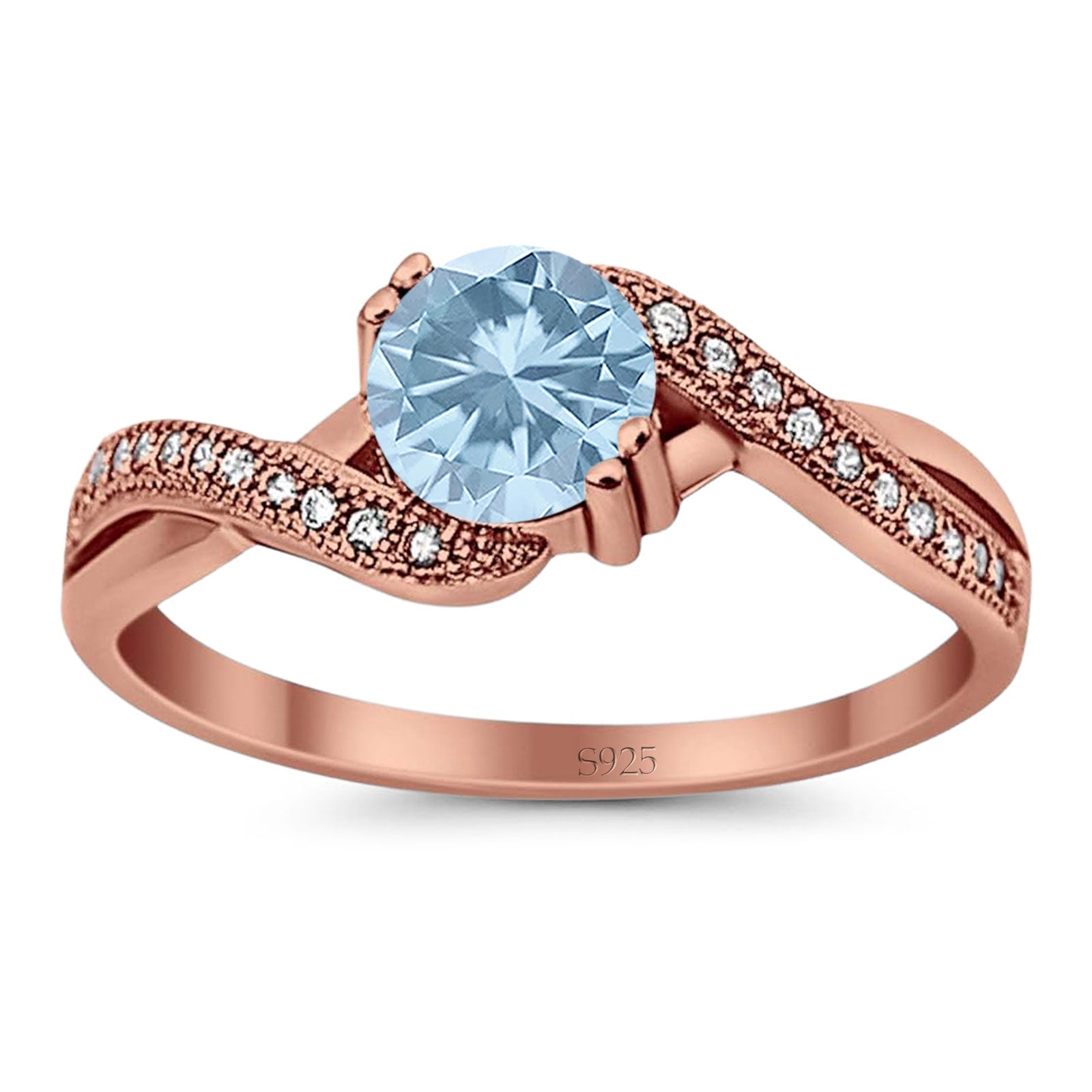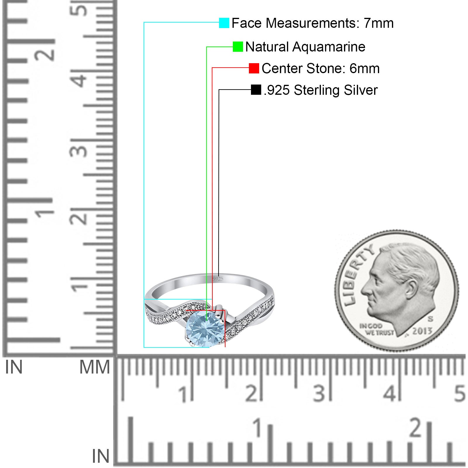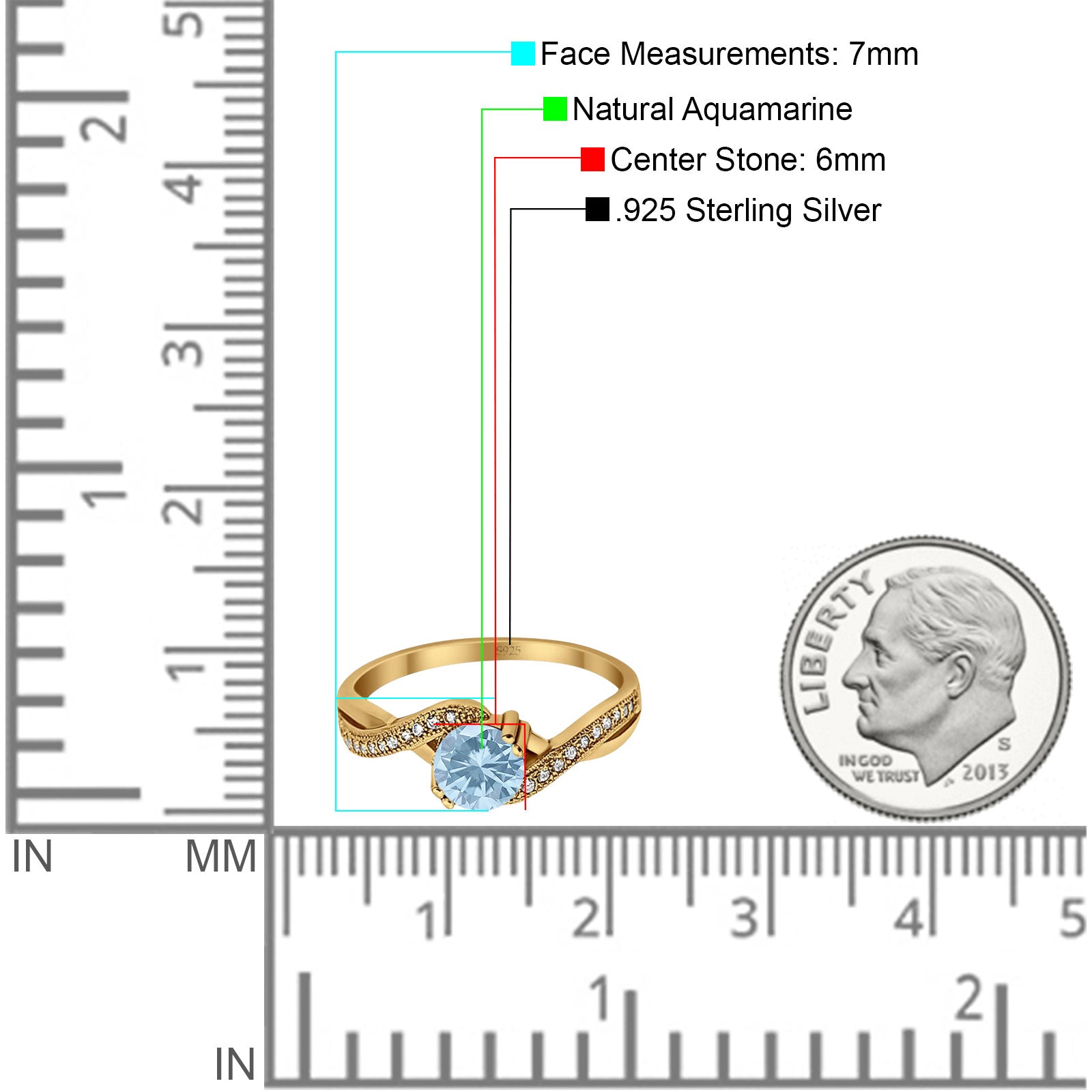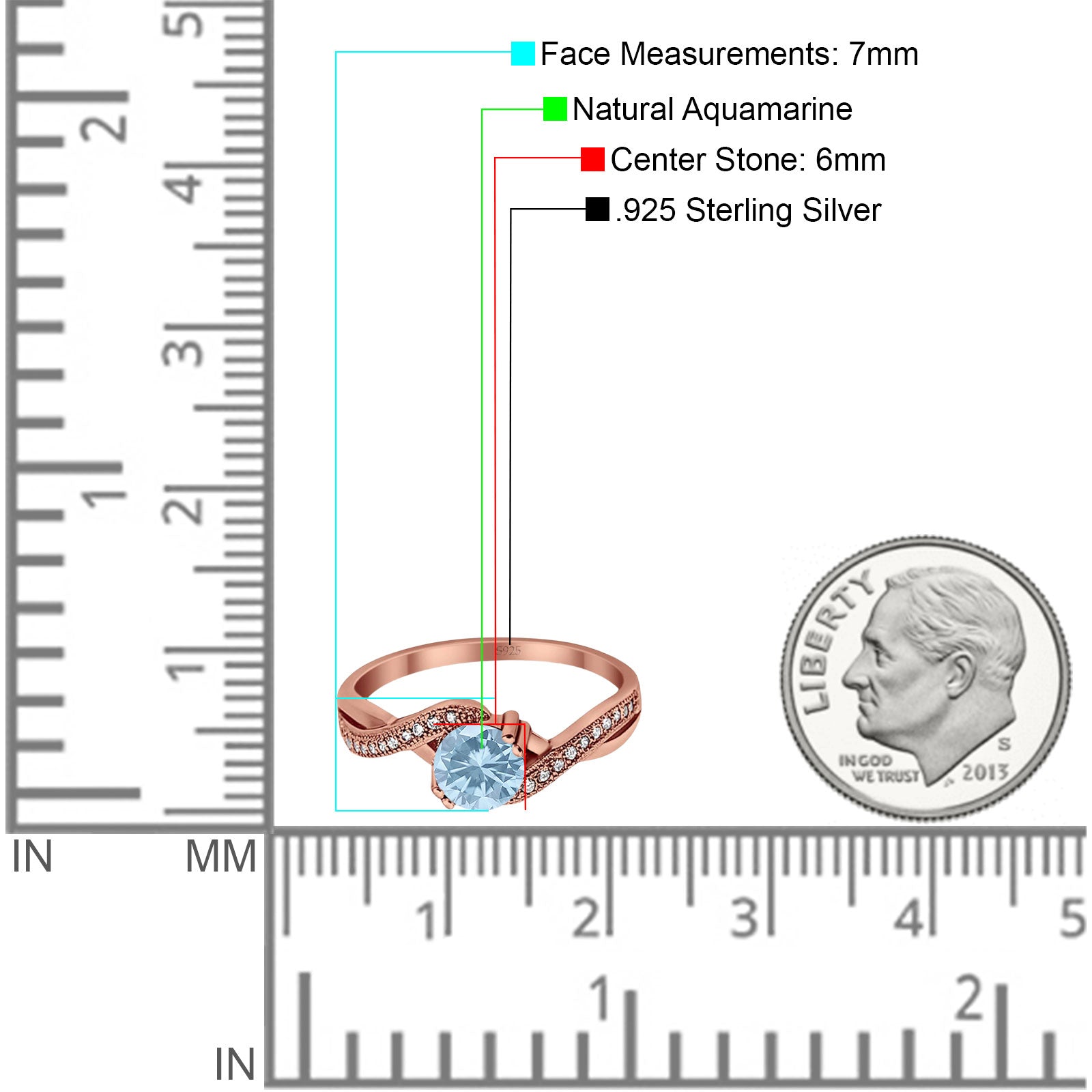 Vintage Style Round Natural Aquamarine Twisted Ring 925 Sterling Silver