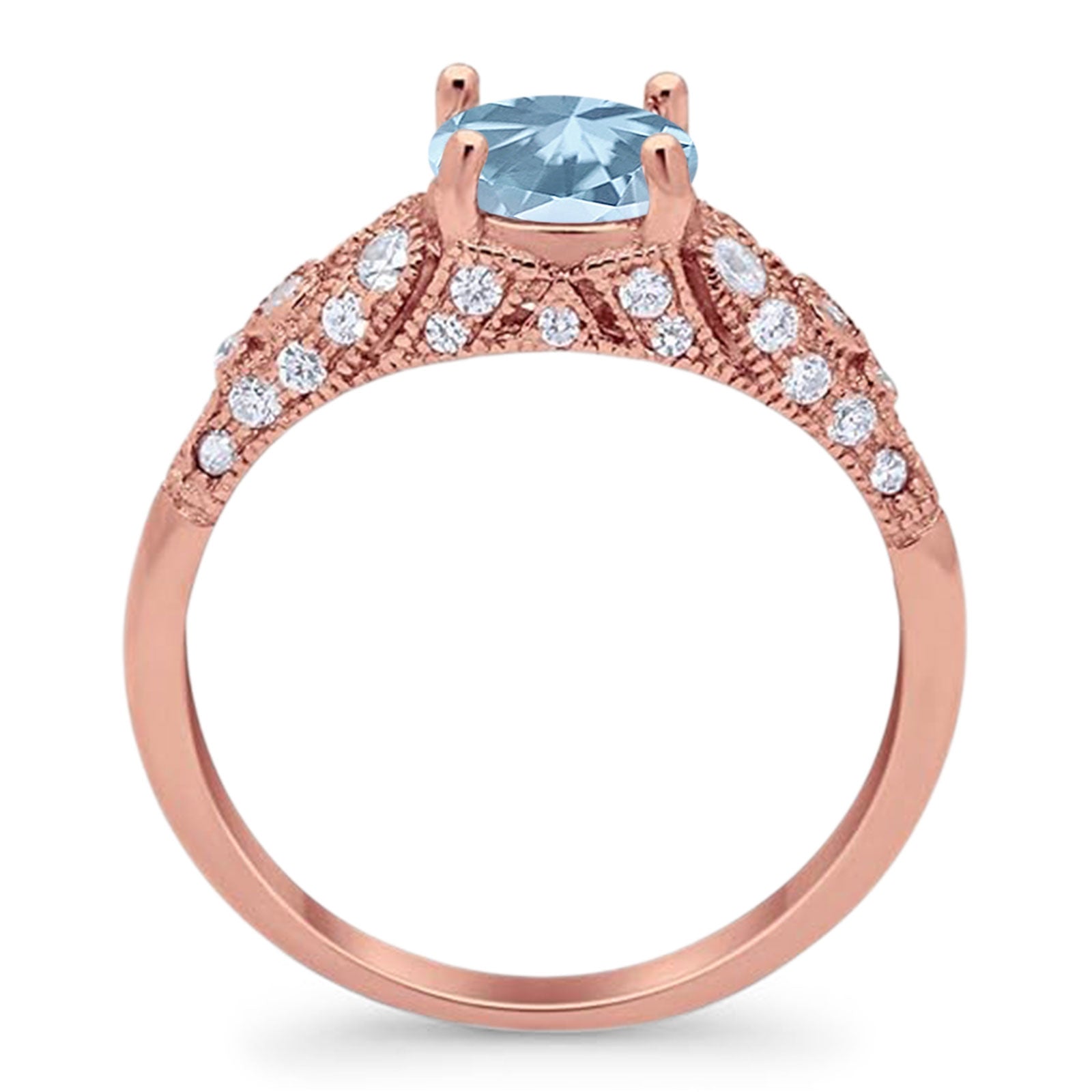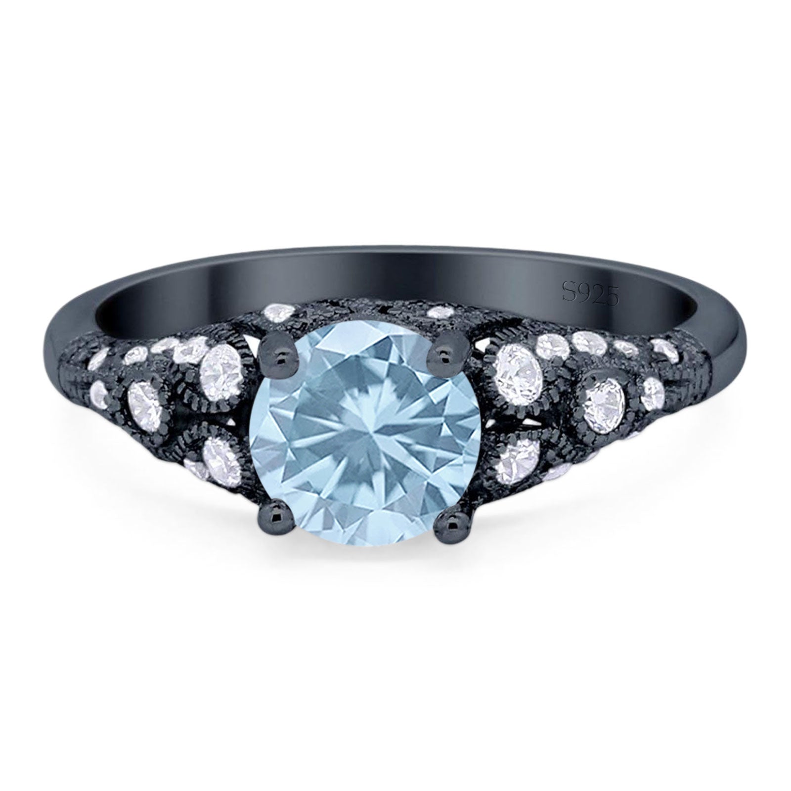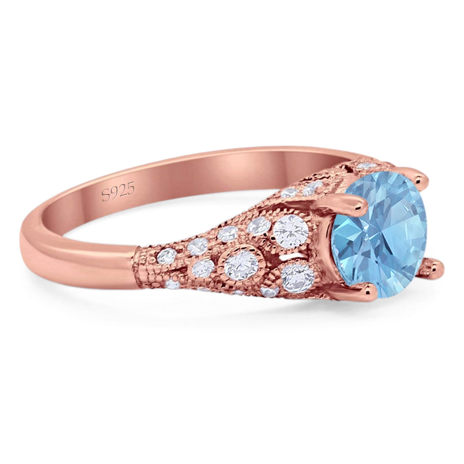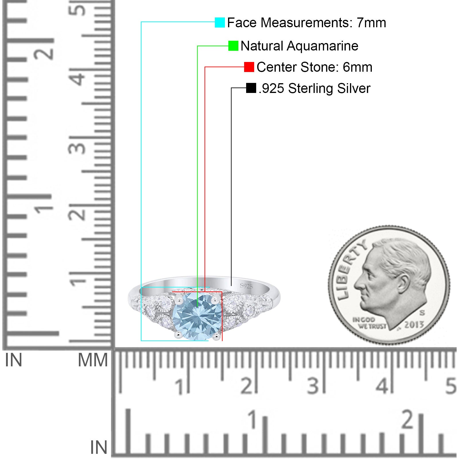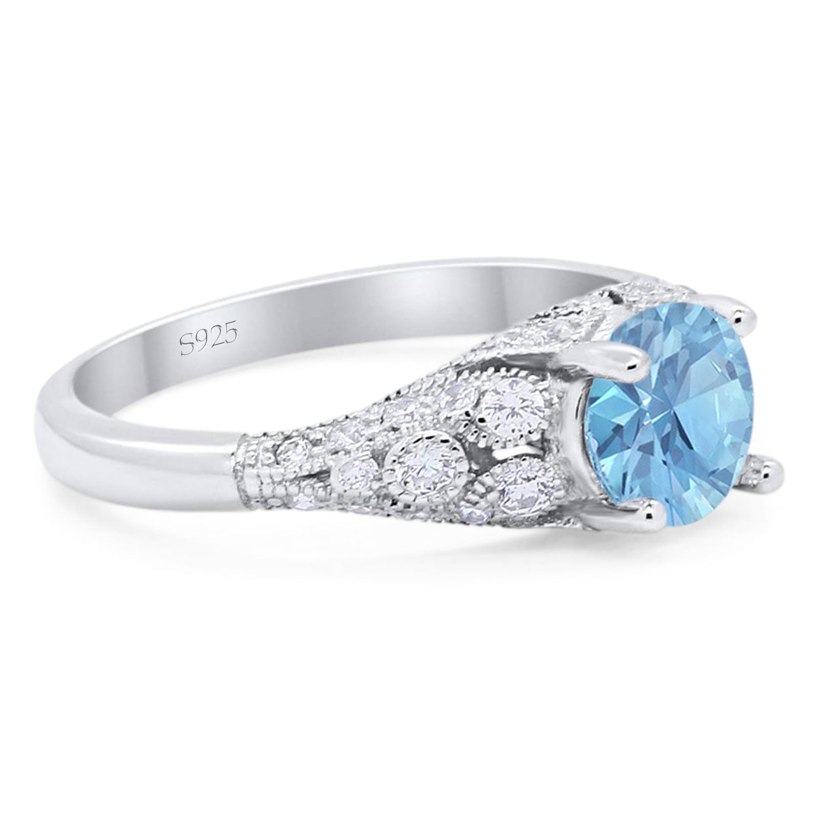 Vintage Style Round Natural Aquamarine Wedding Ring 925 Sterling Silver