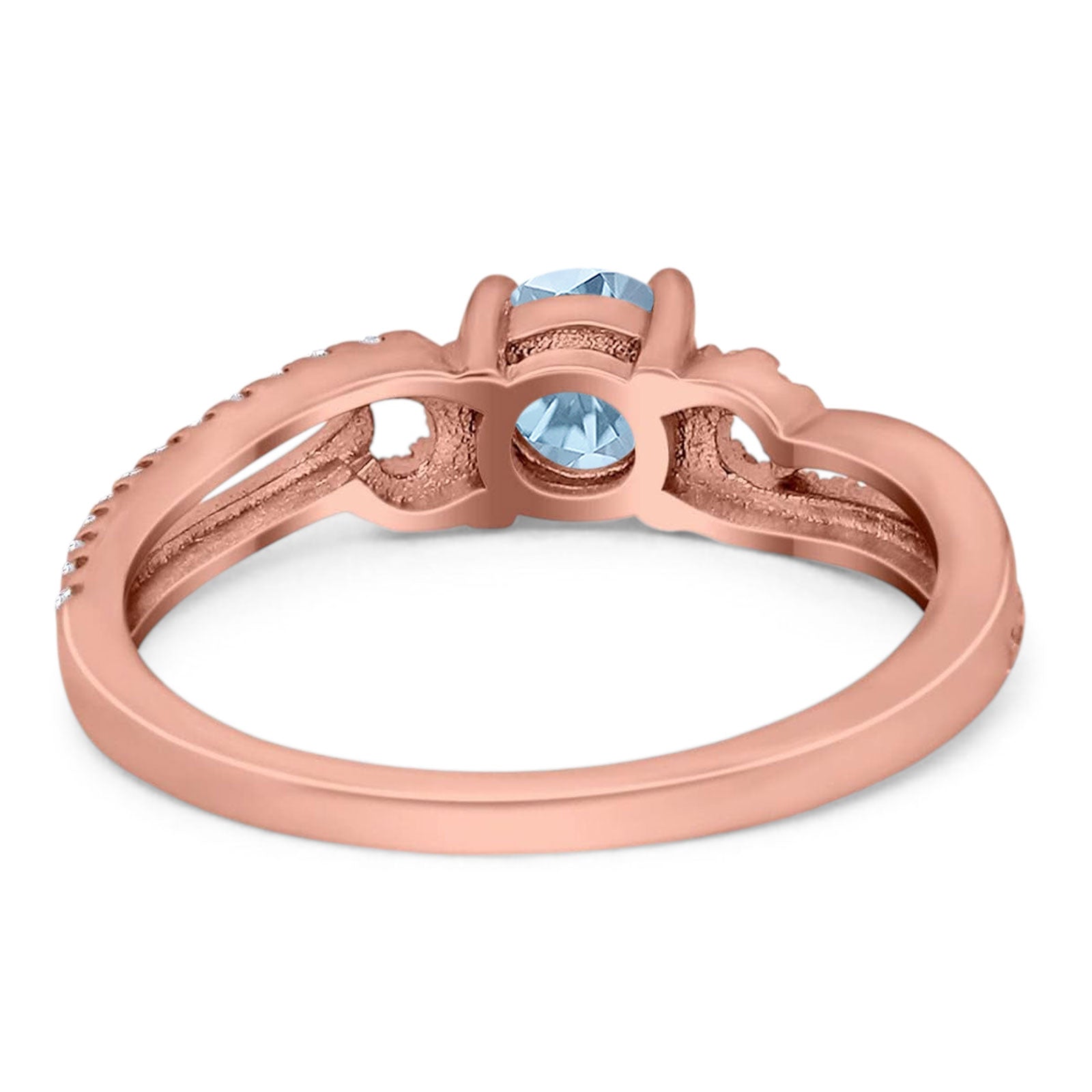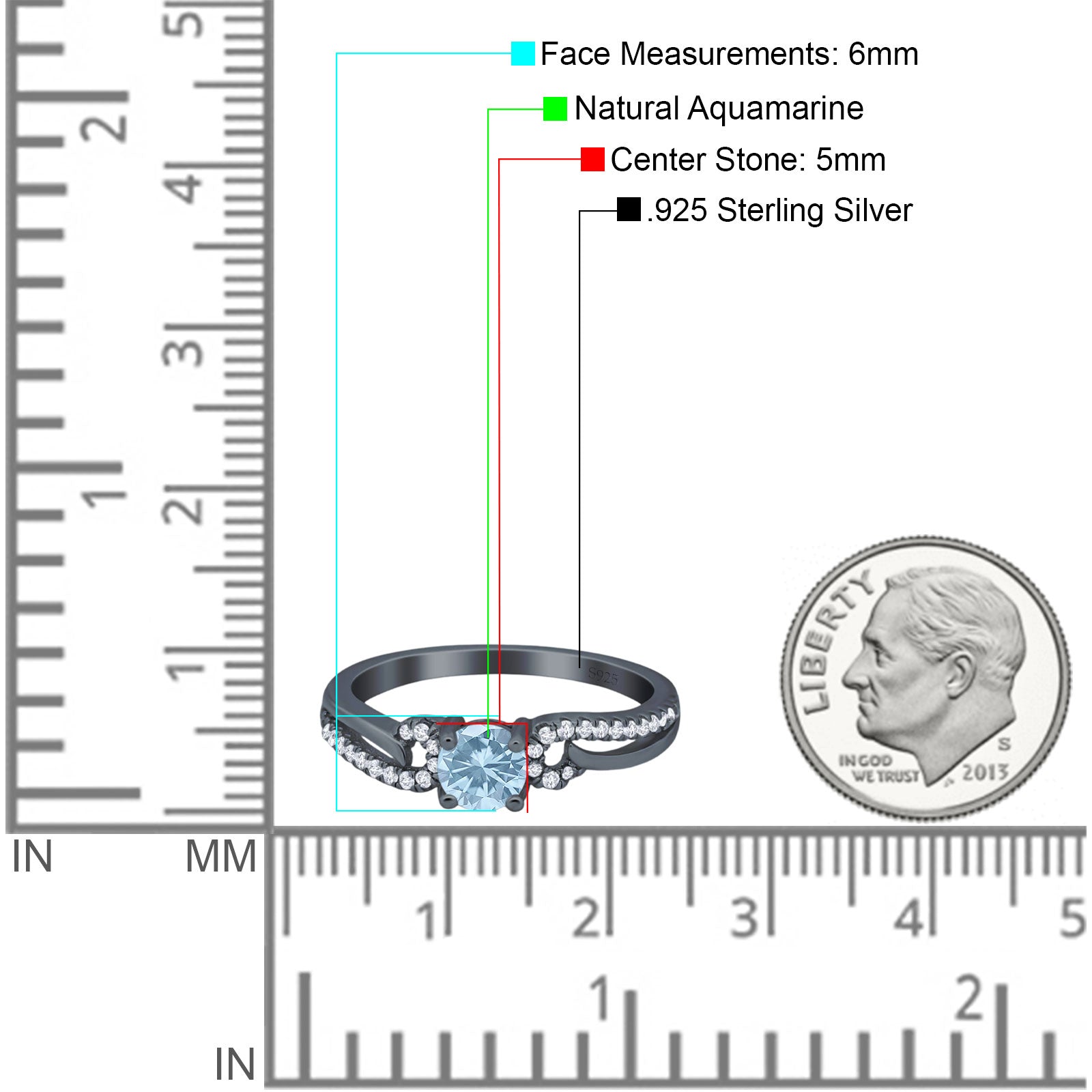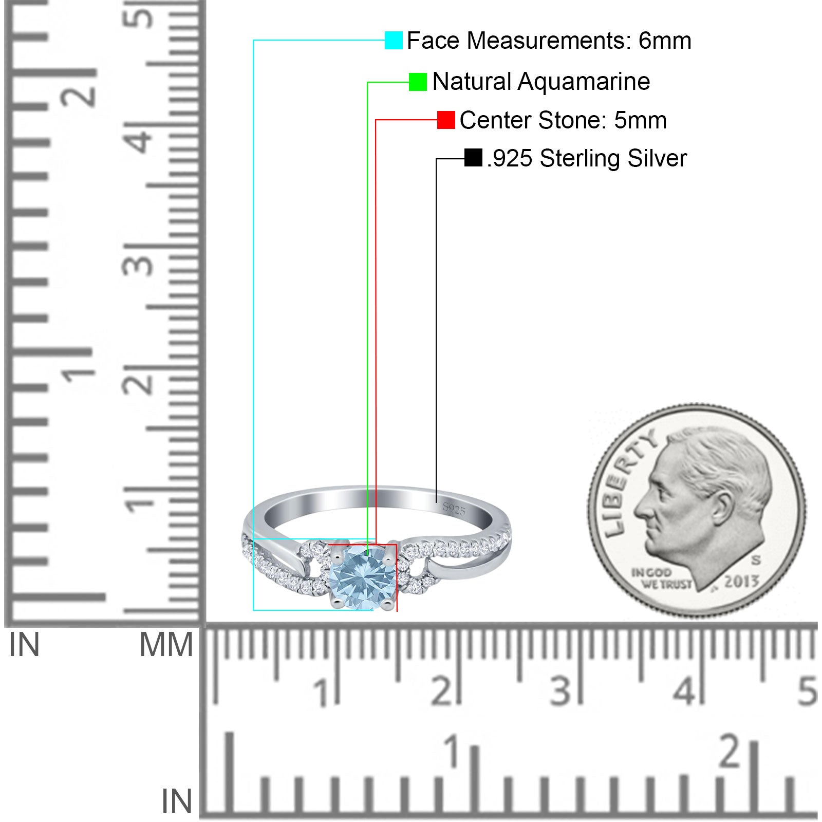 Vintage Style Round Natural Aquamarine Wedding Ring 925 Sterling Silver