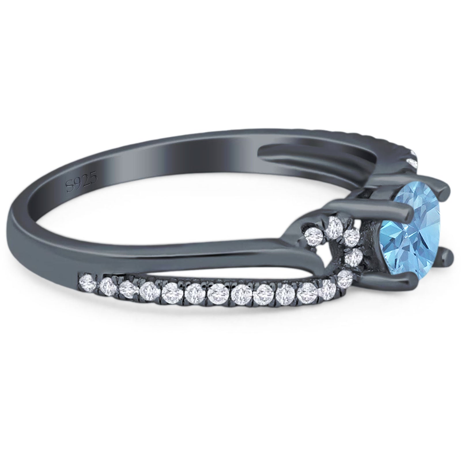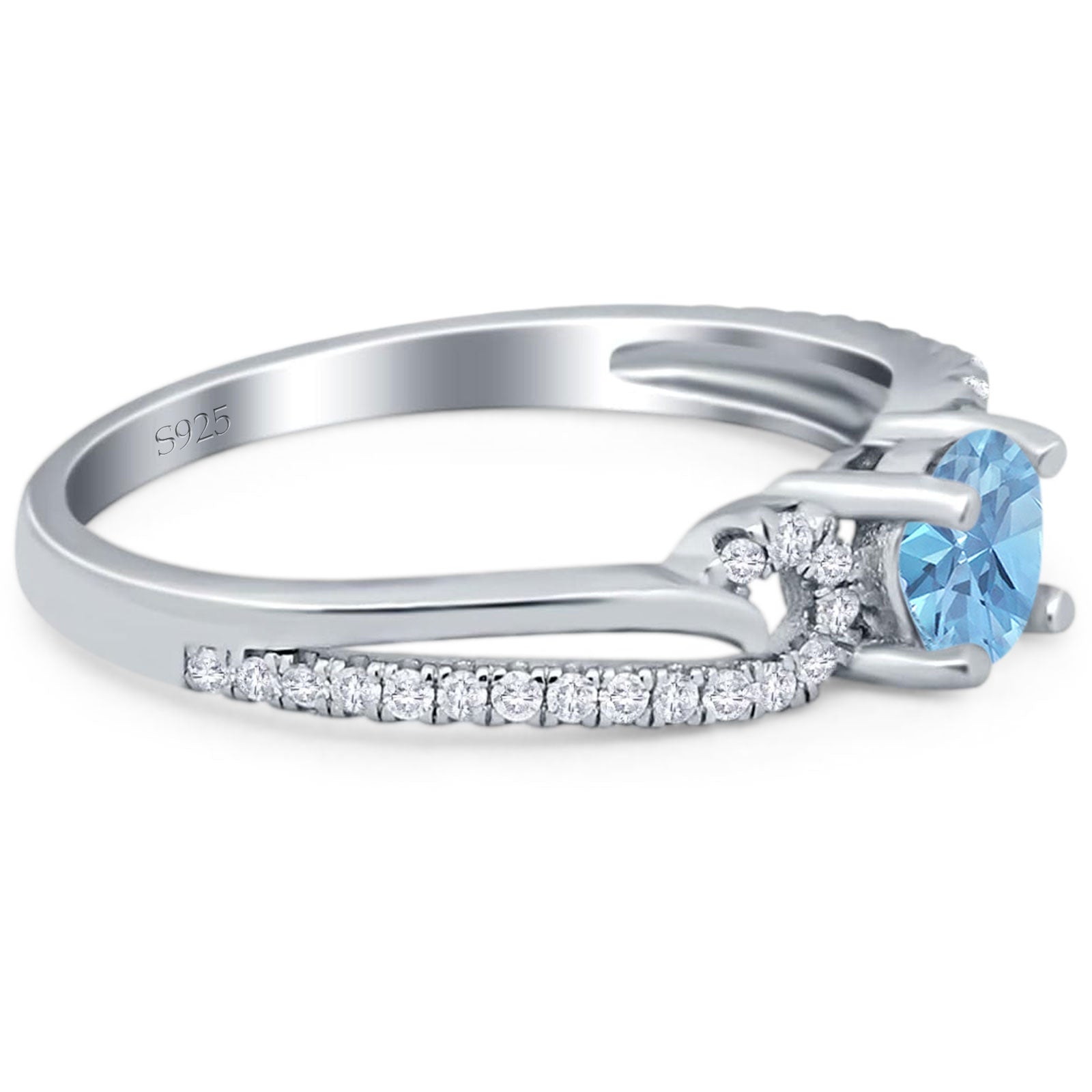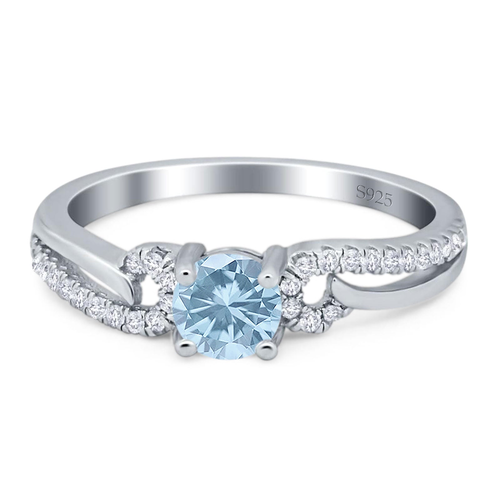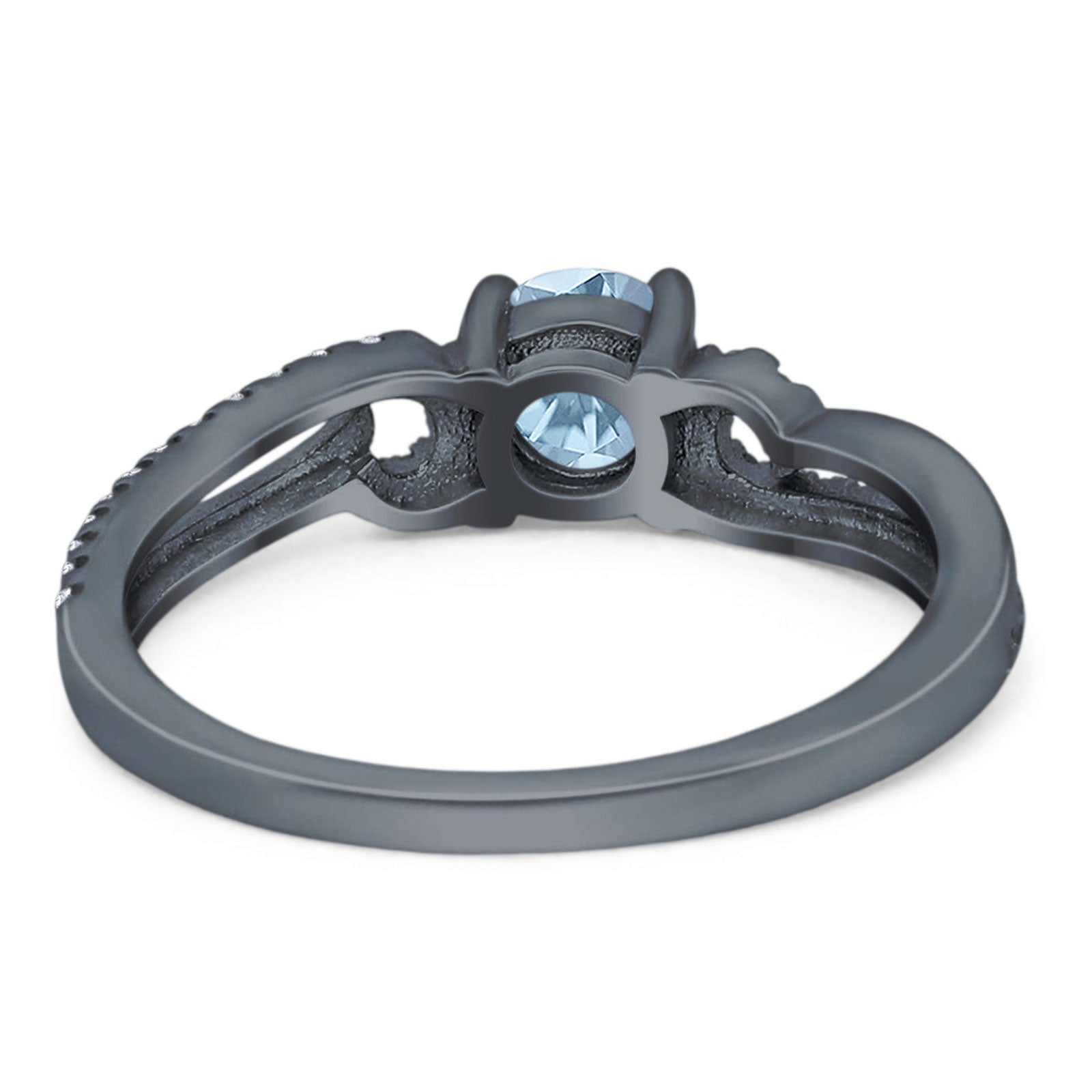 Vintage Style Round Natural Aquamarine Wedding Ring 925 Sterling Silver