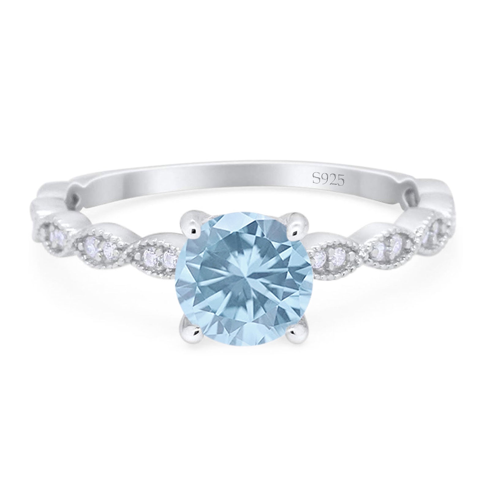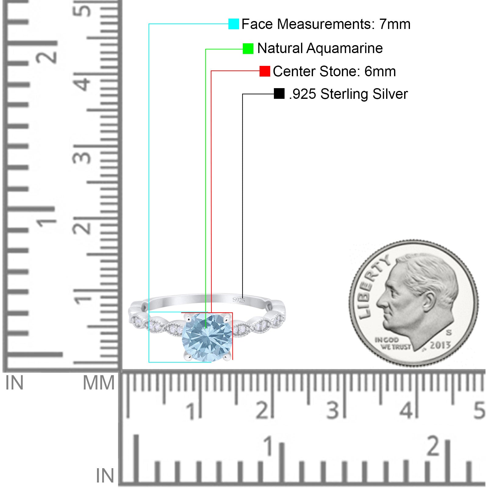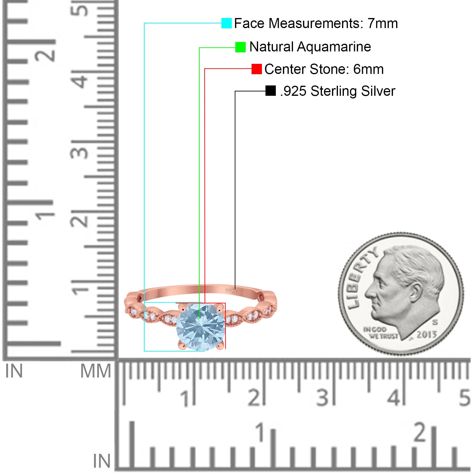 Vintage Style Round Natural Aquamarine Wedding Ring 925 Sterling Silver