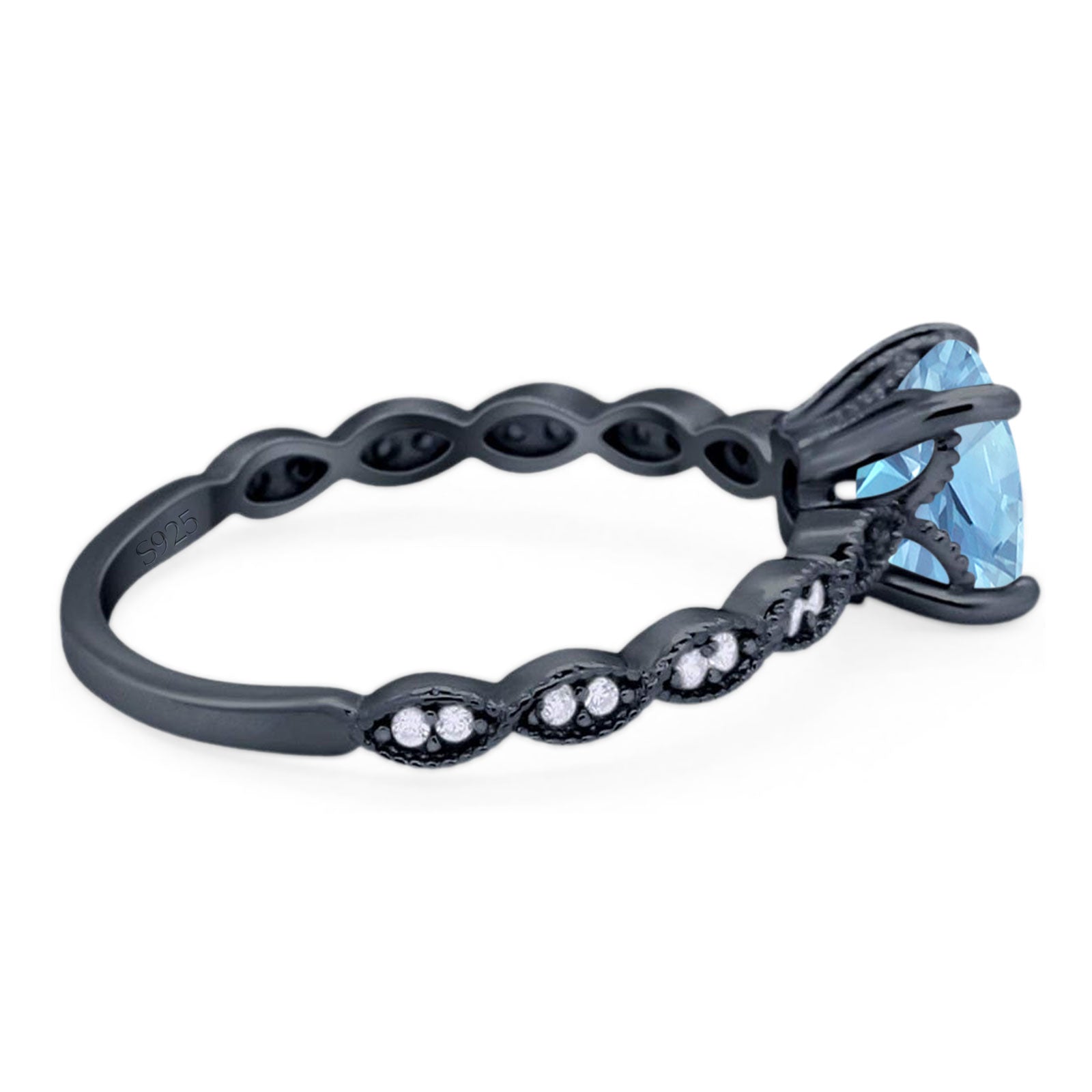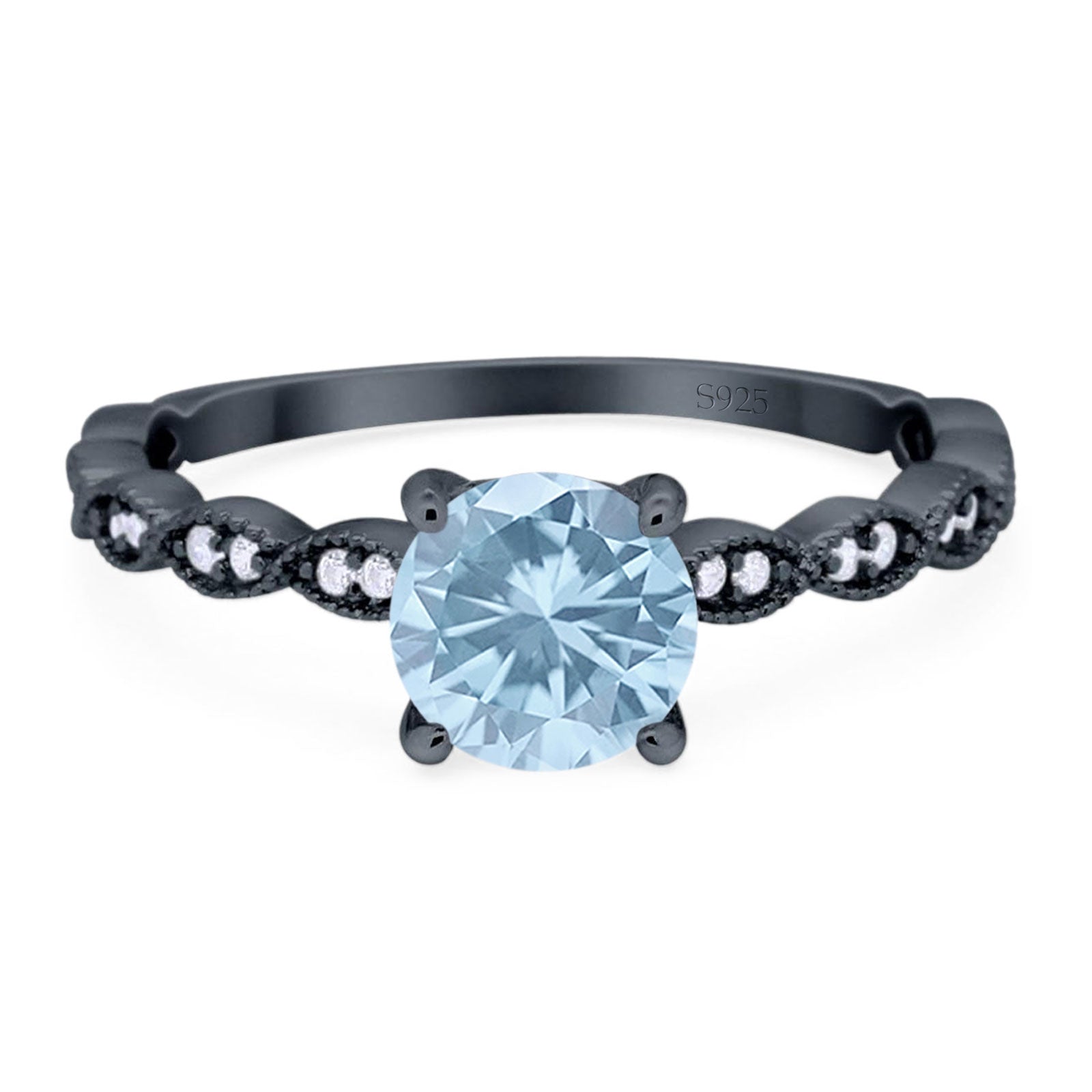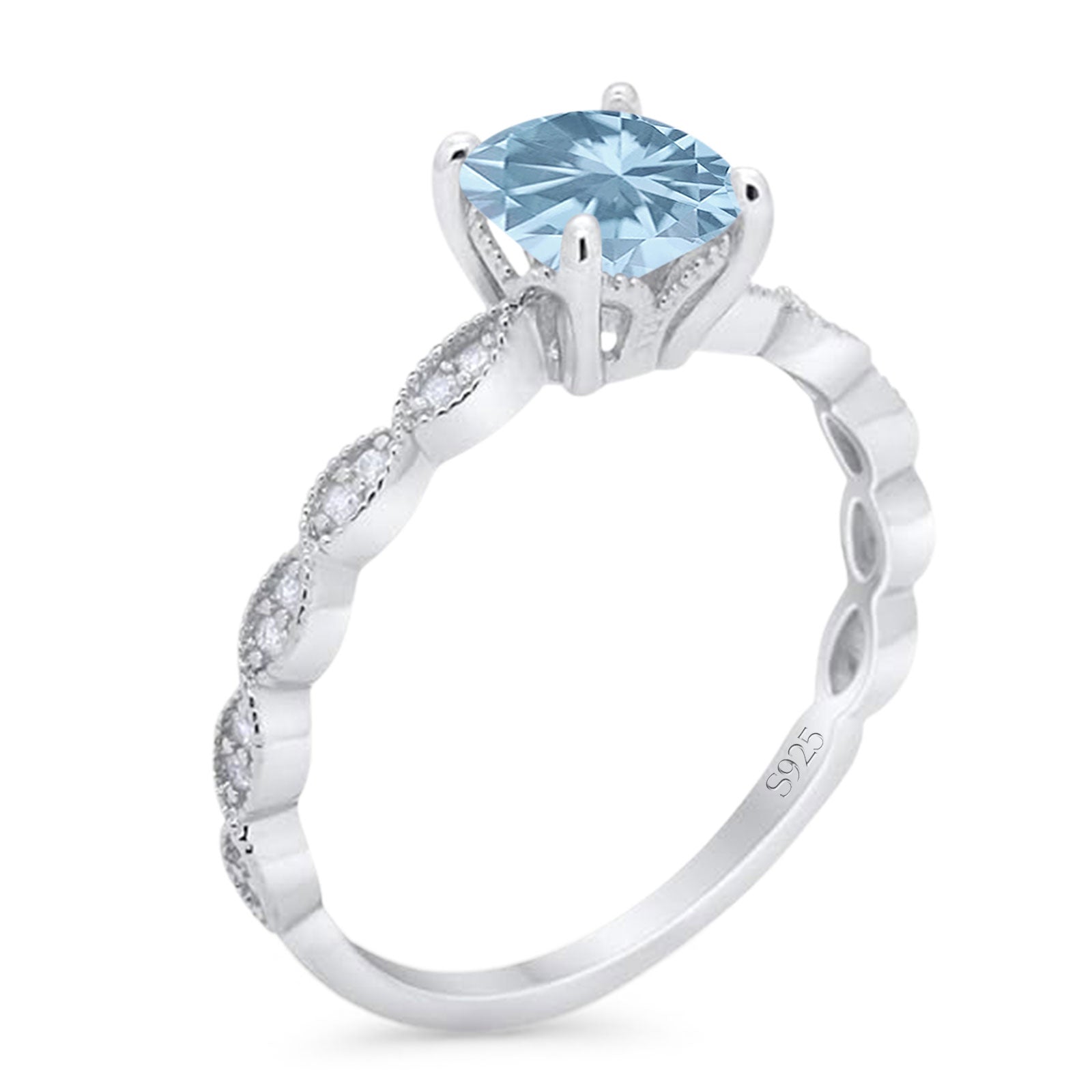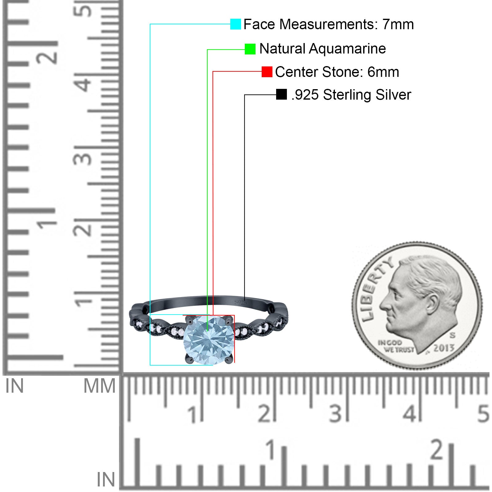 Vintage Style Round Natural Aquamarine Wedding Ring 925 Sterling Silver