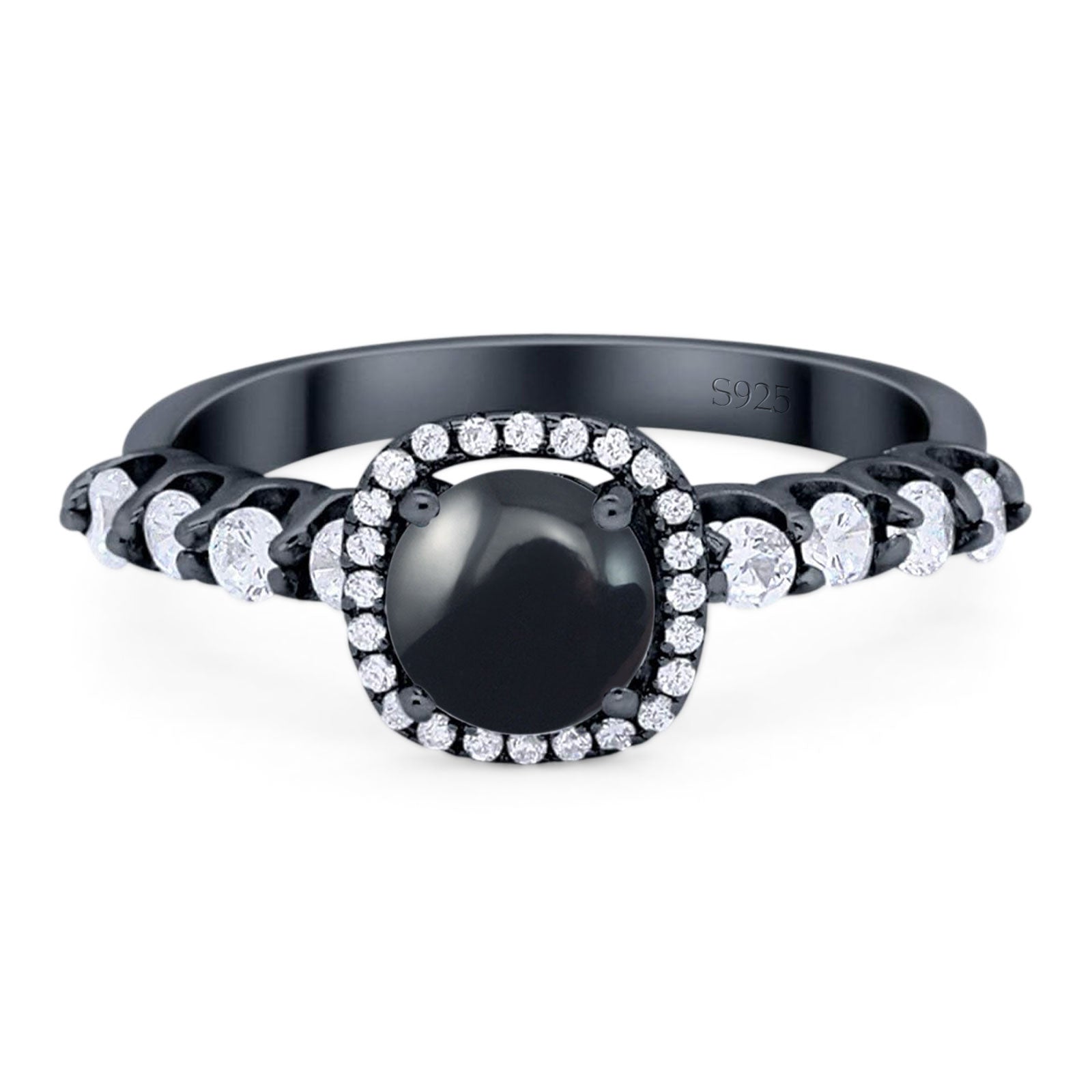 Vintage Style Round Natural Black Onyx Halo Ring 925 Sterling Silver