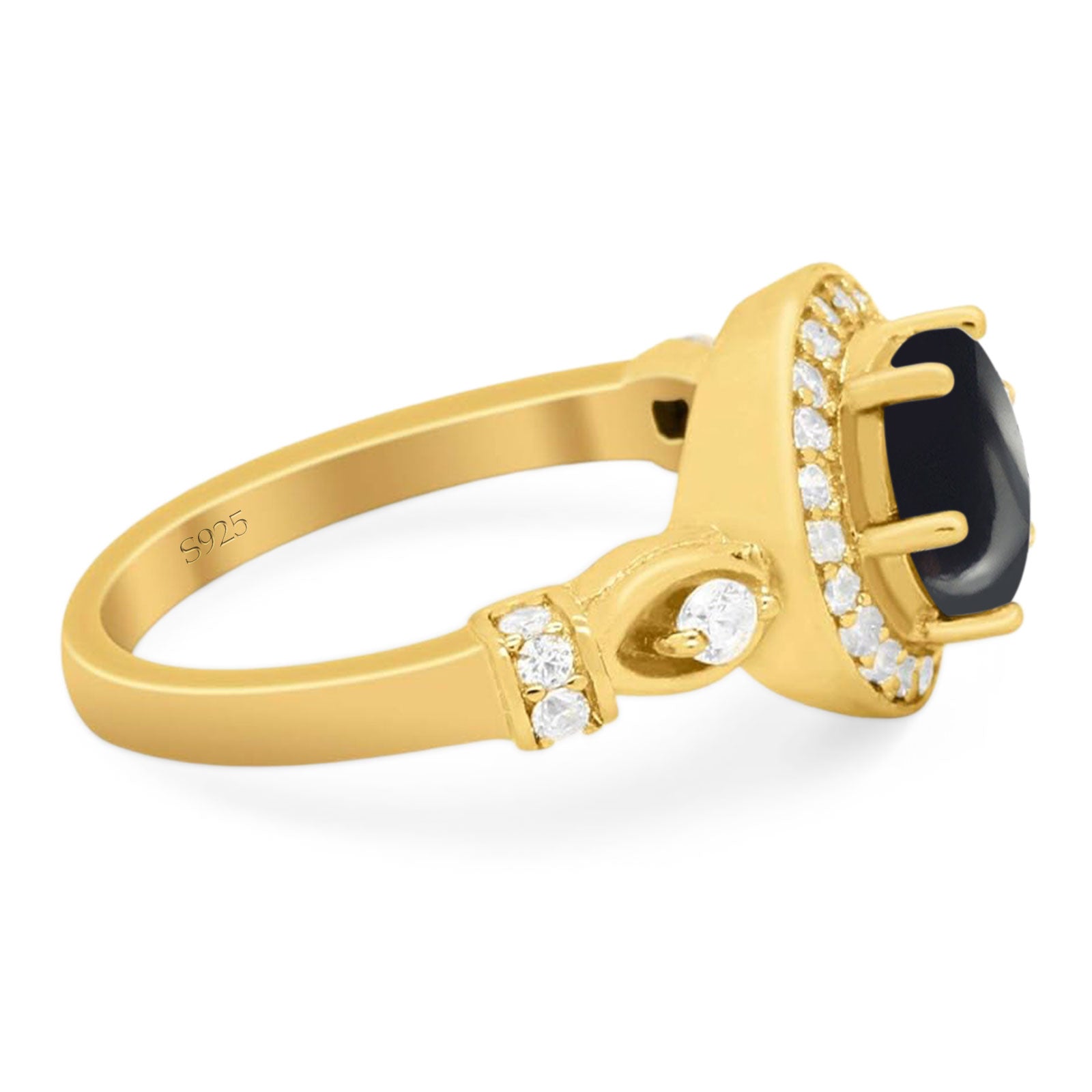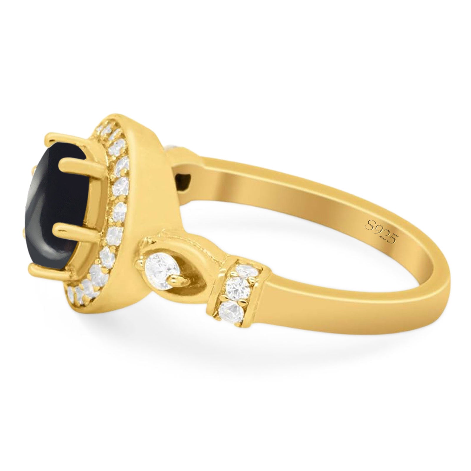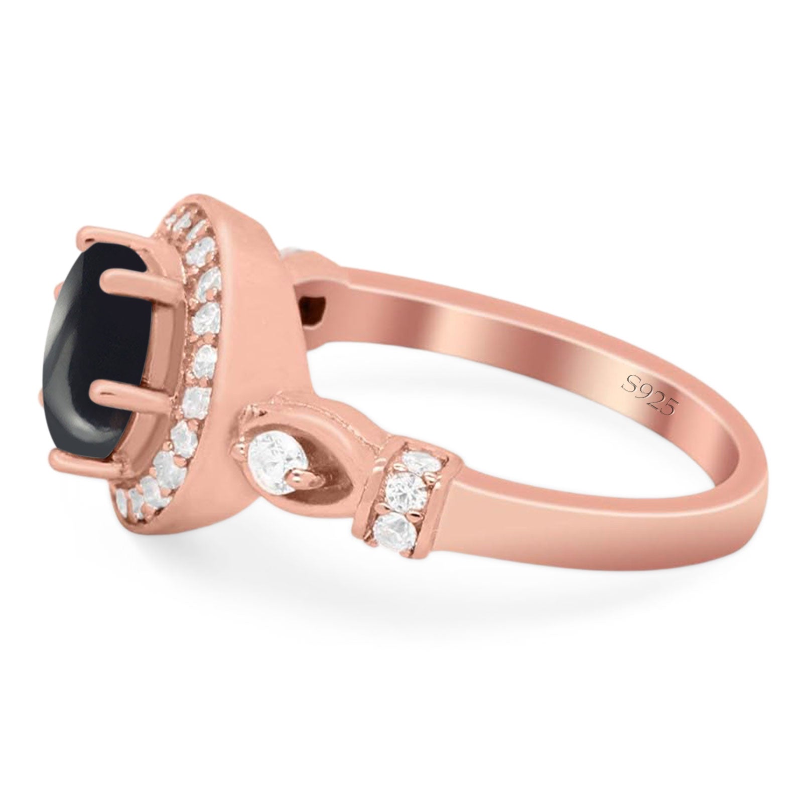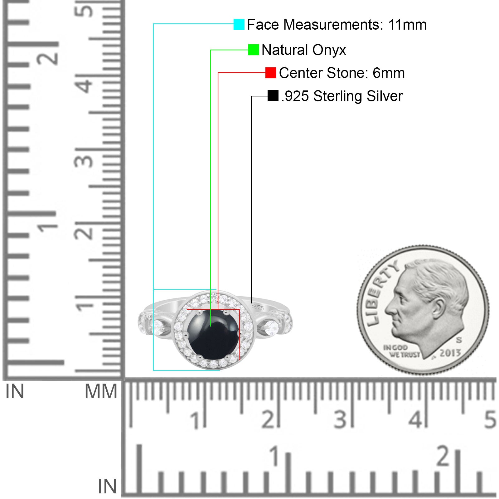 Vintage Style Round Natural Black Onyx Halo Wedding Ring 925 Sterling Silver