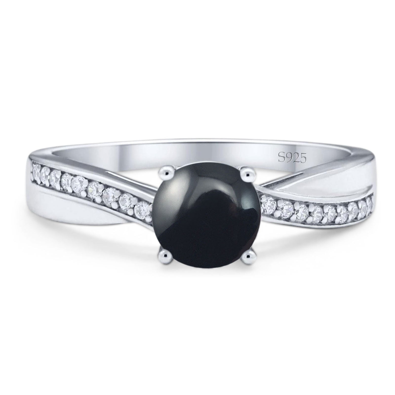 Vintage Style Round Natural Black Onyx Twisted Ring 925 Sterling Silver