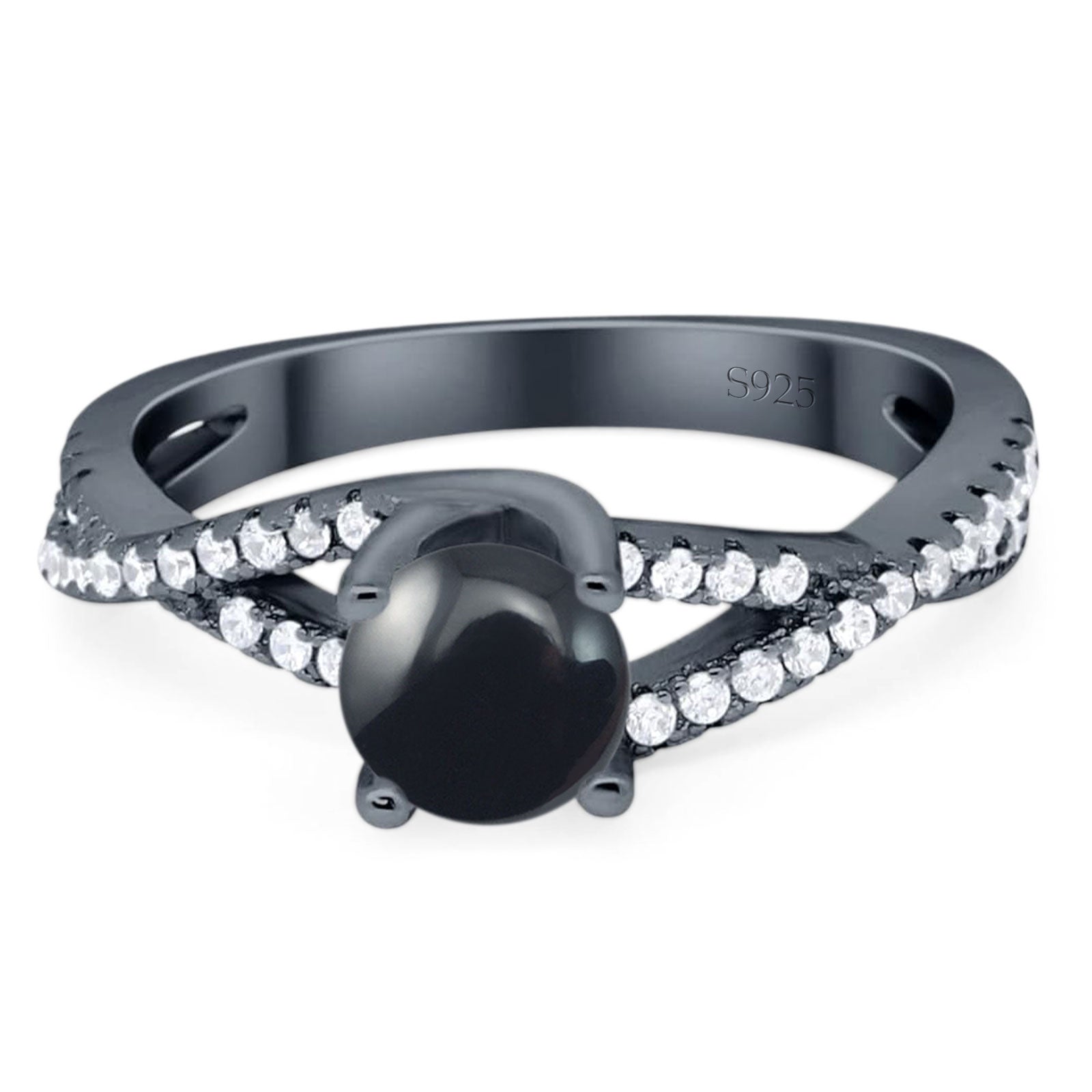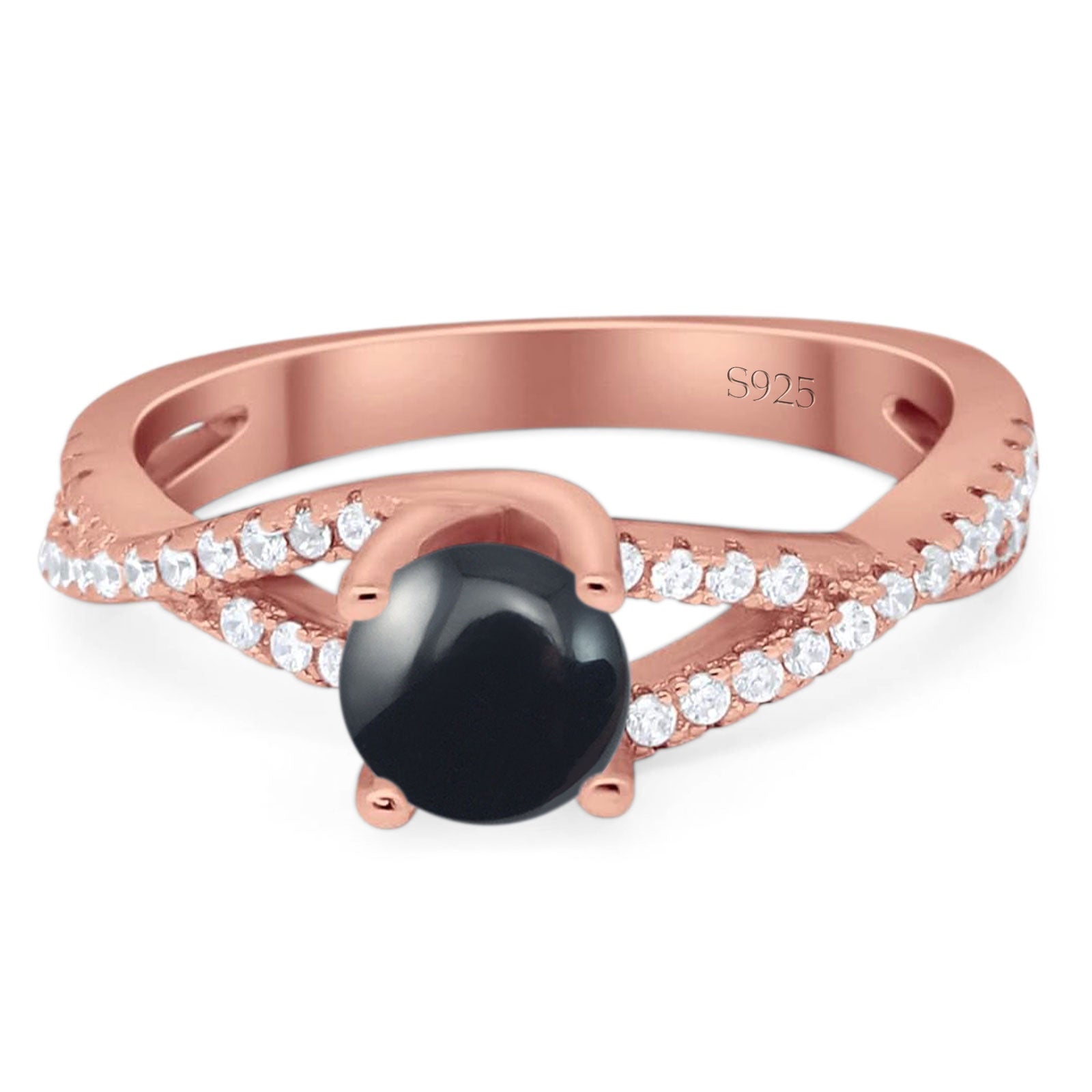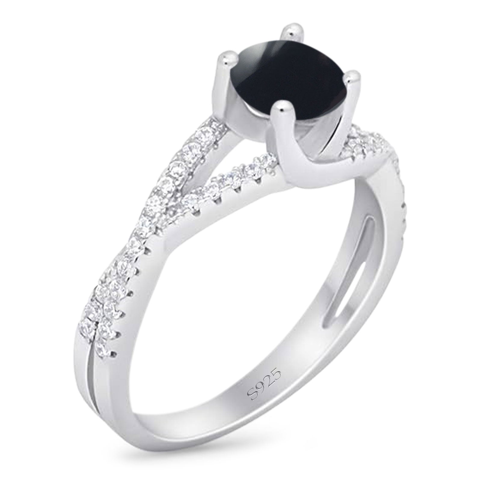 Vintage Style Round Natural Black Onyx Twisted Ring 925 Sterling Silver