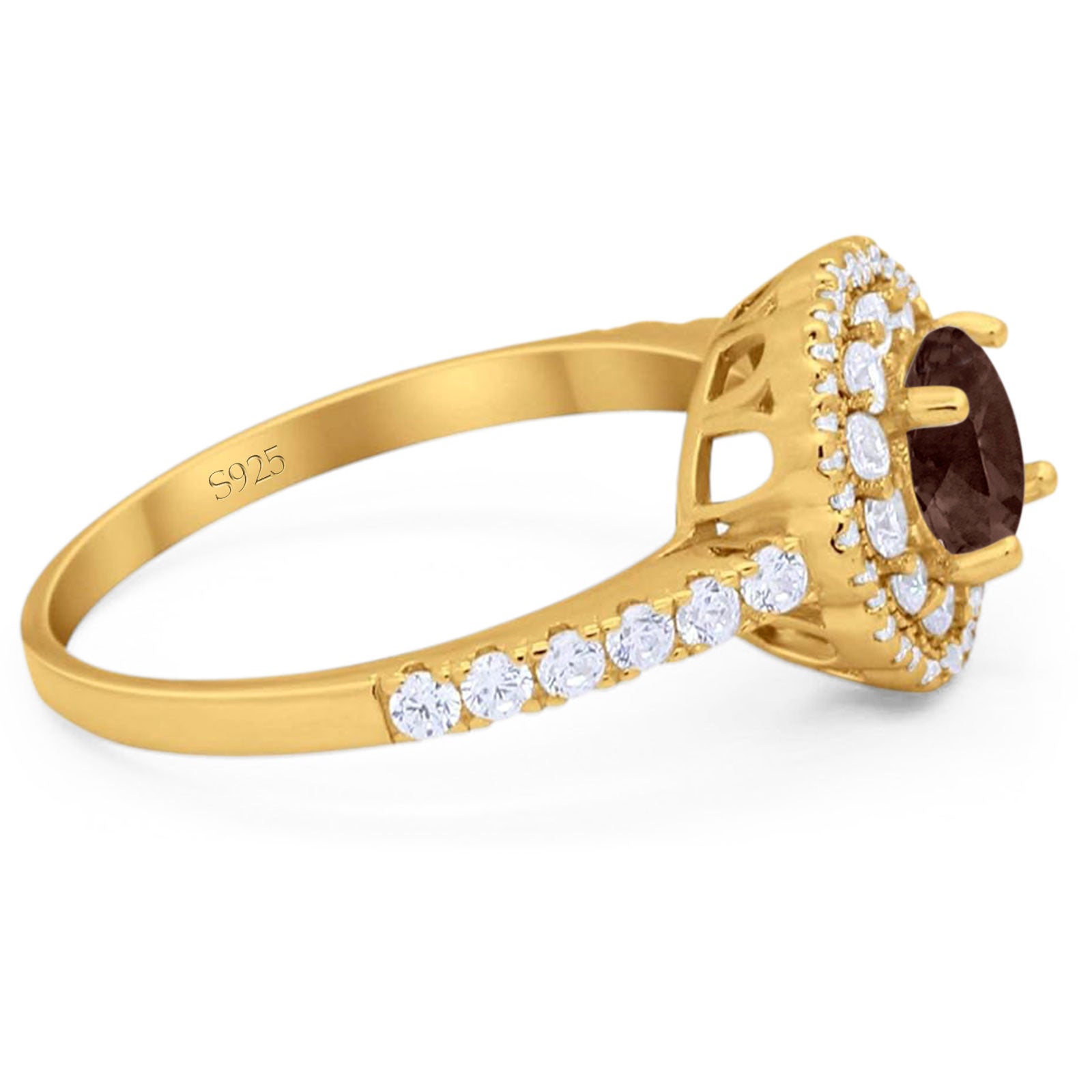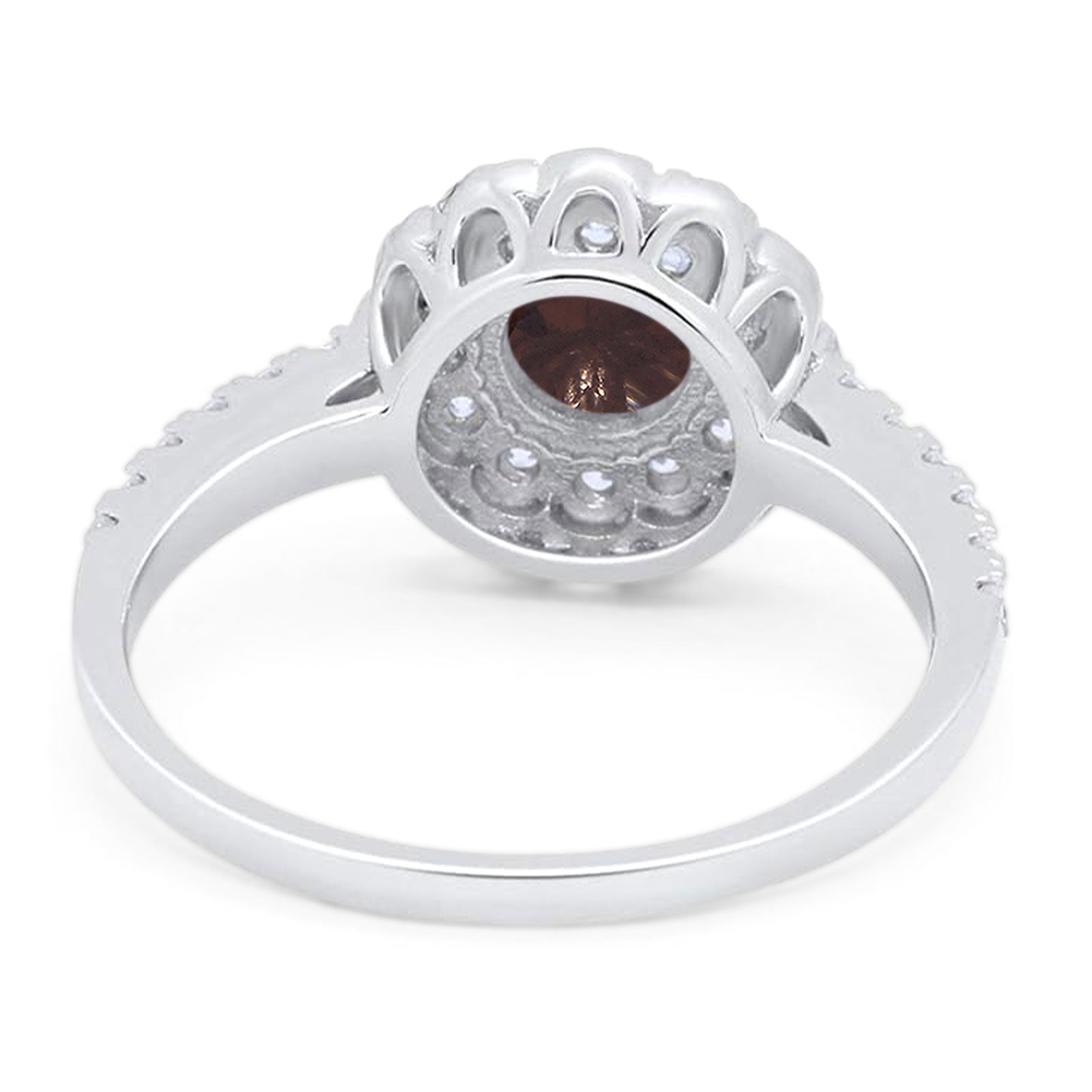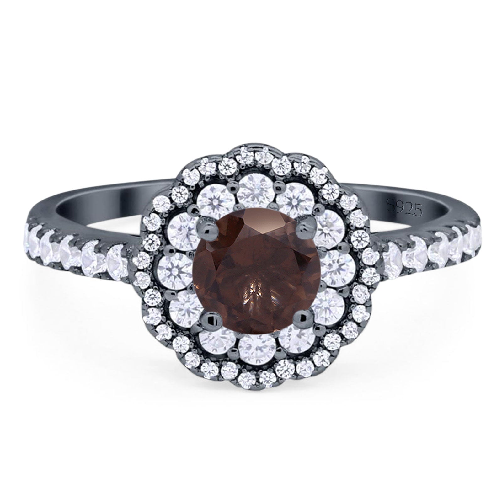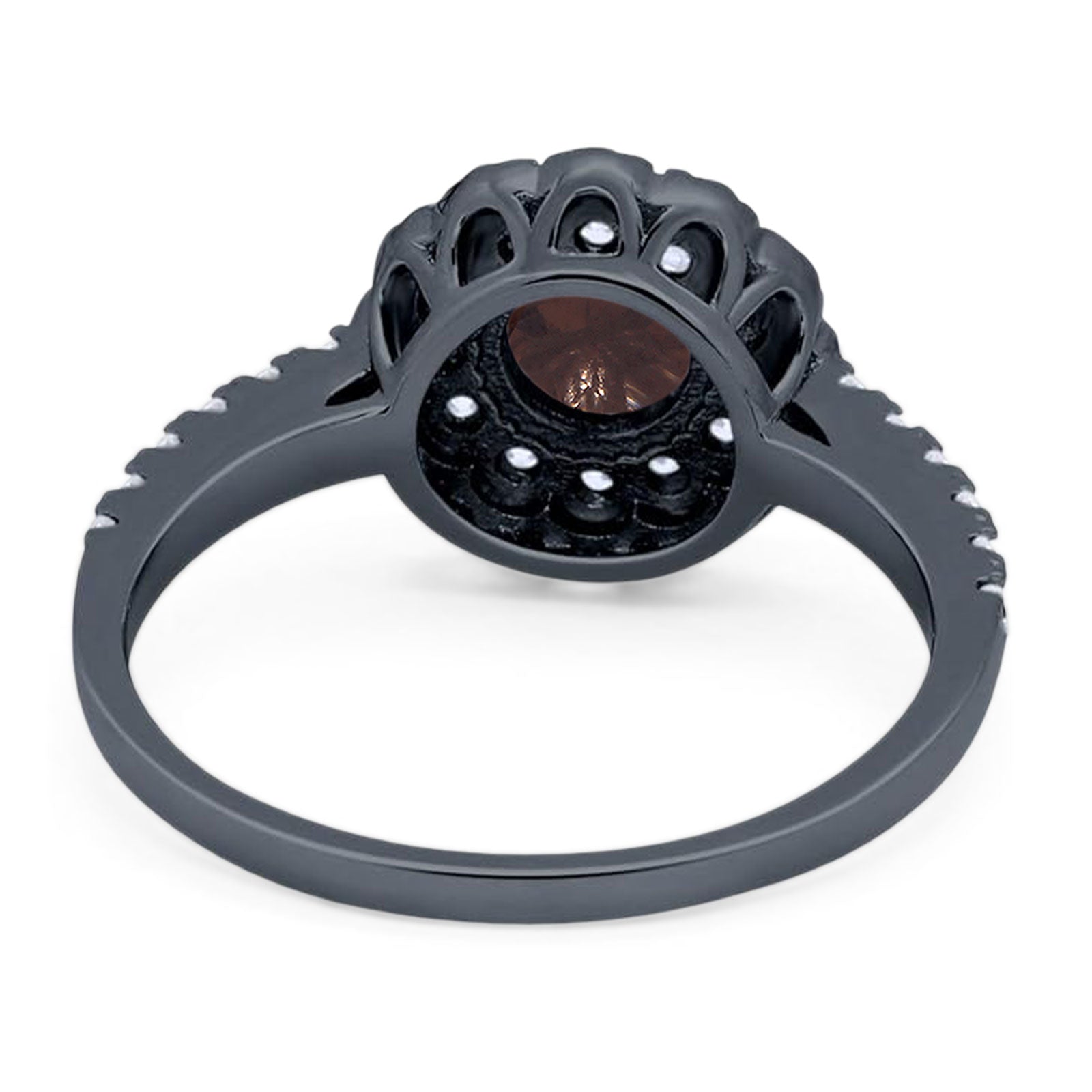 Vintage Style Round Natural Chocolate Smoky Quartz Halo Flower Ring 925 Sterling Silver