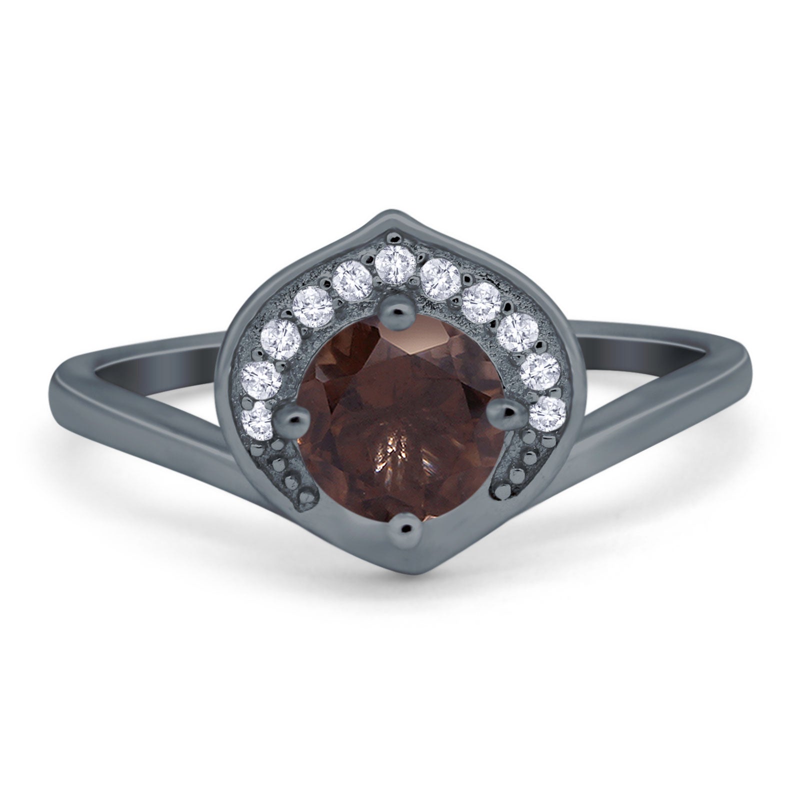 Natural Chocolate Smoky Quartz Black Tone Silver
