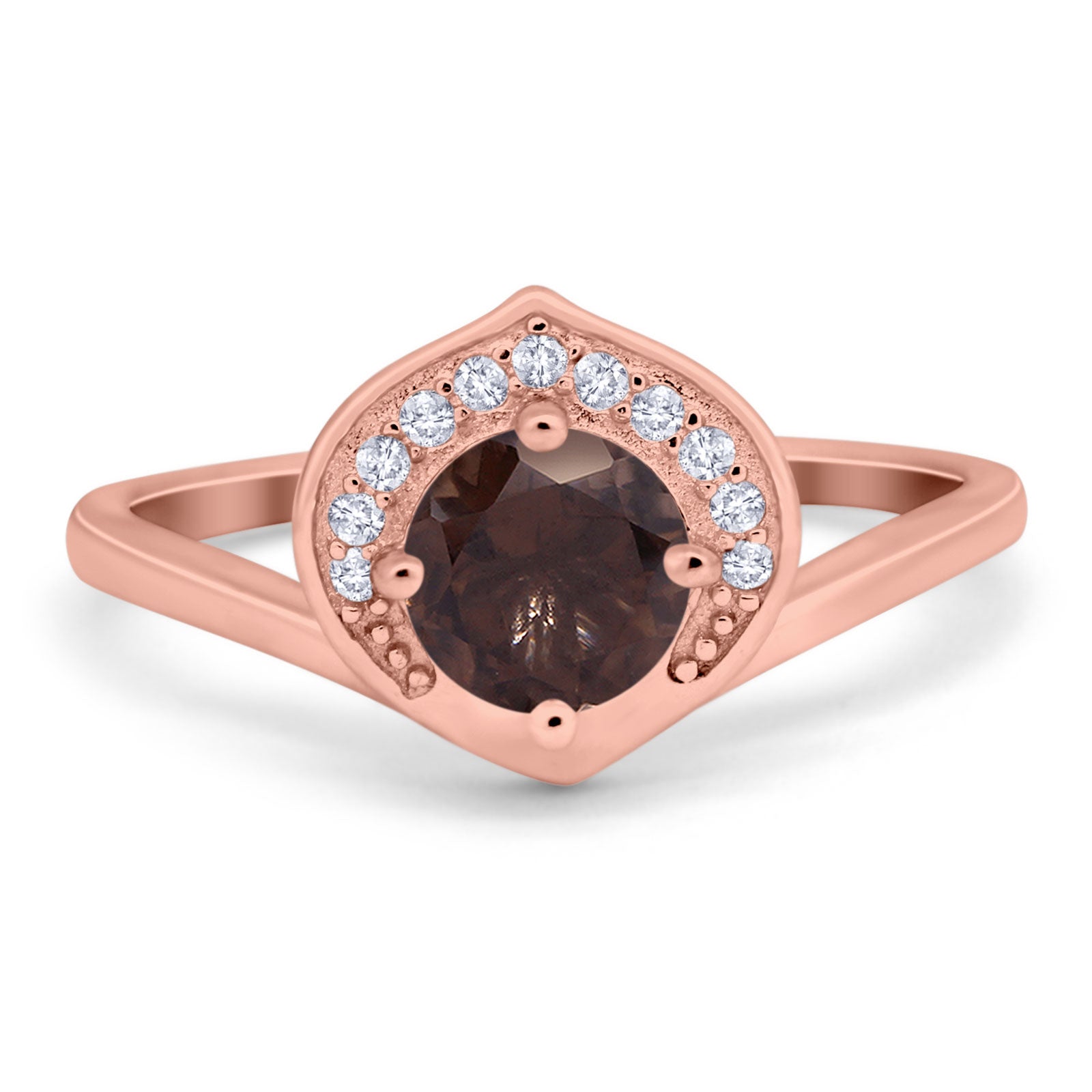 Natural Chocolate Smoky Quartz Rose Tone Silver