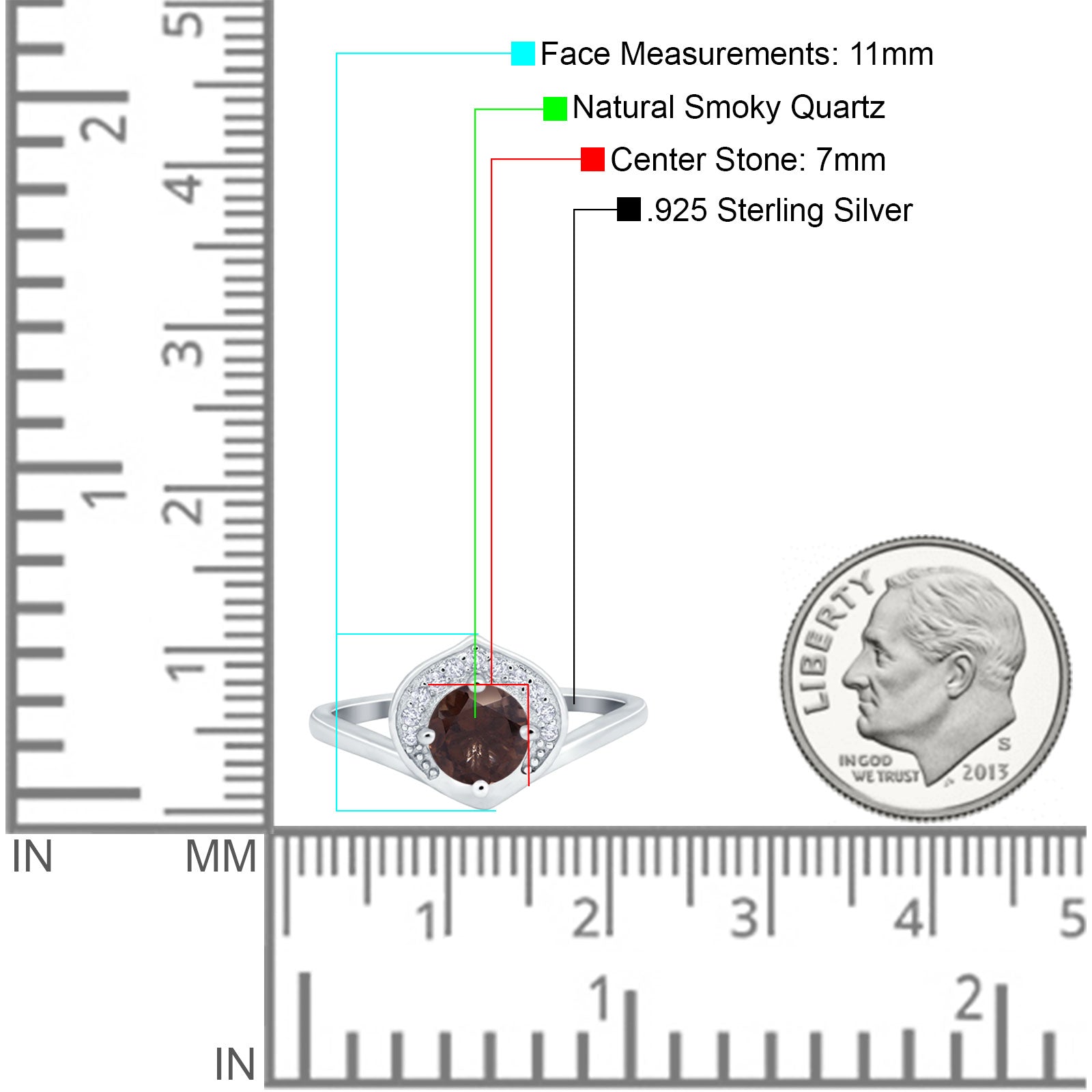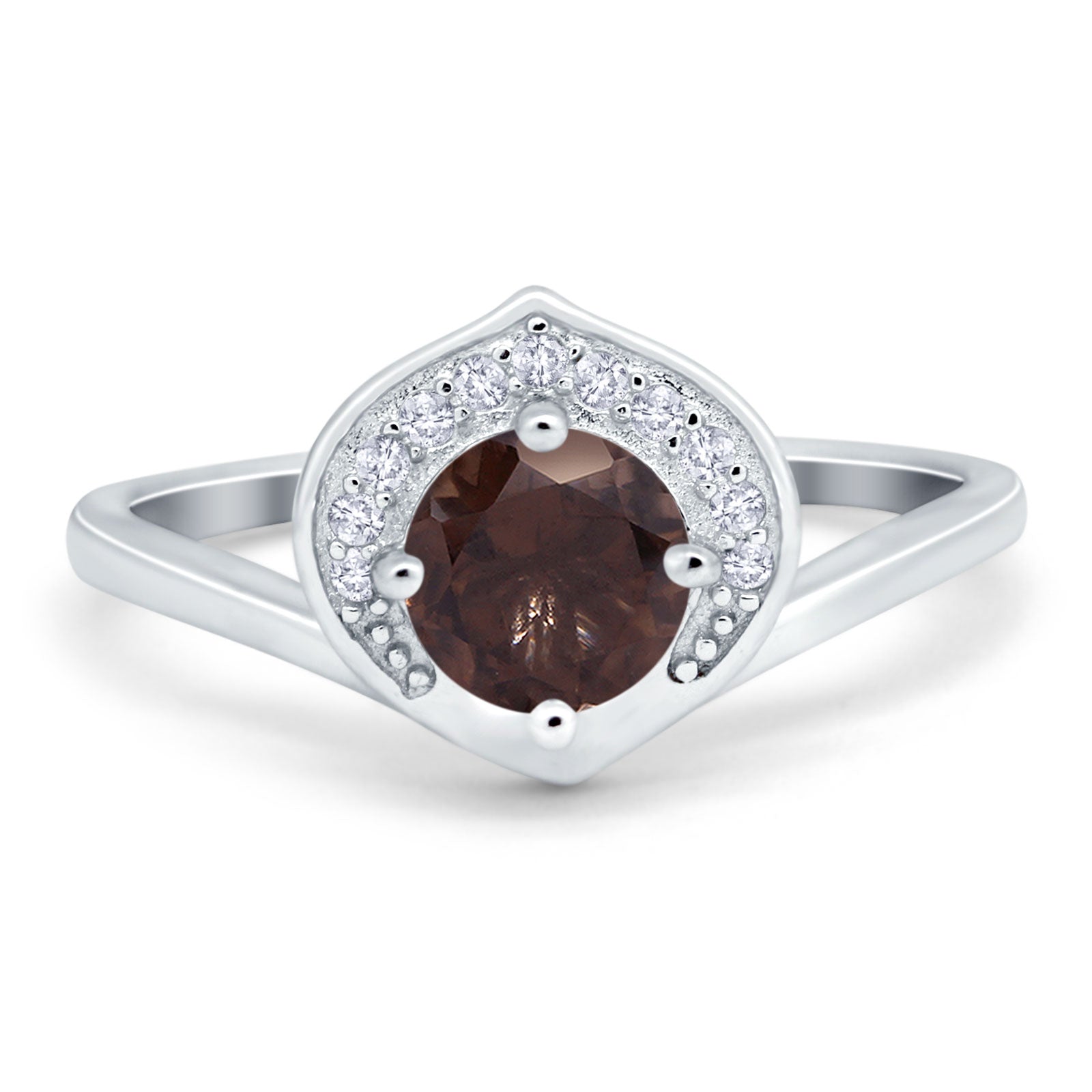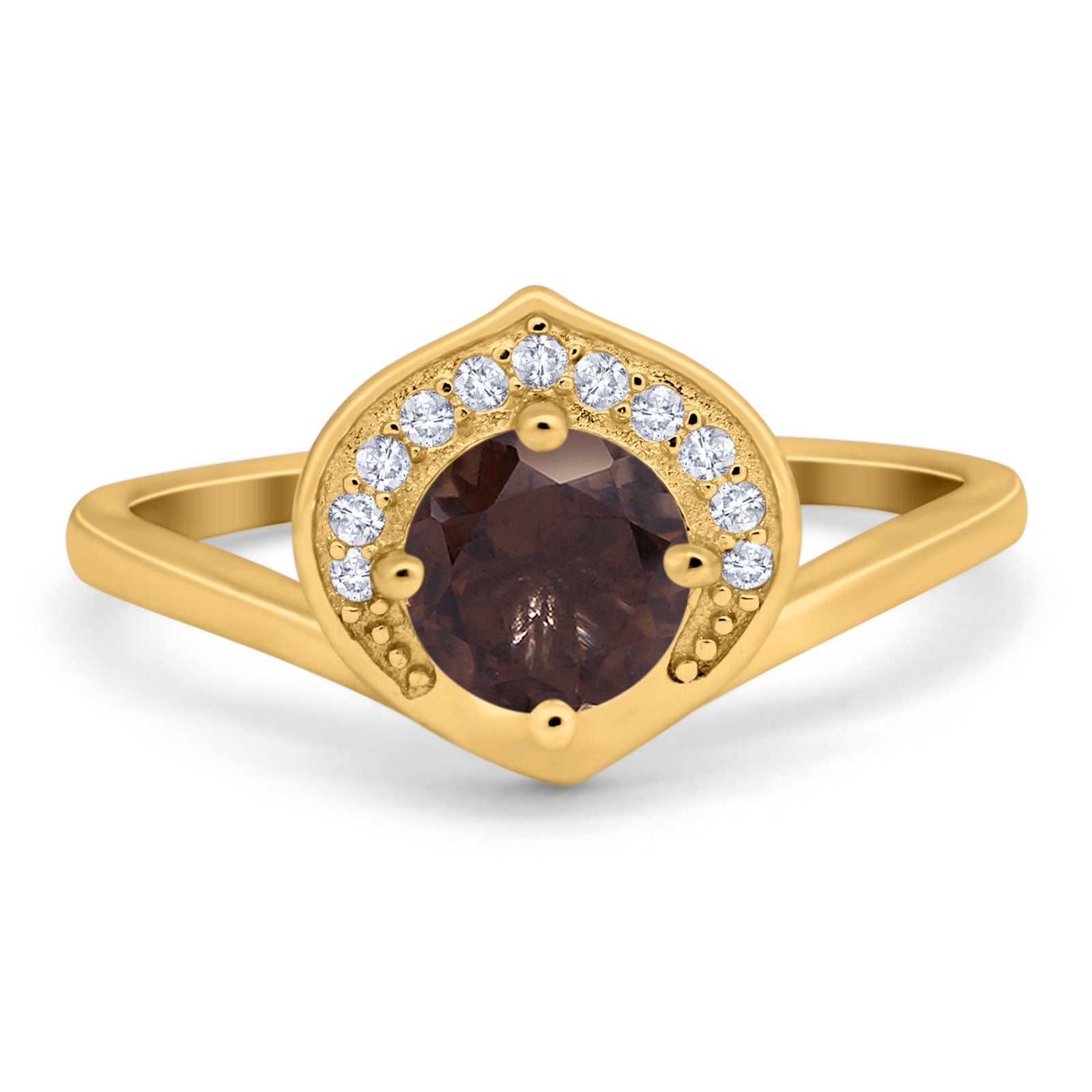 Vintage Style Round Natural Chocolate Smoky Quartz Leaf Style Ring 925 Sterling Silver