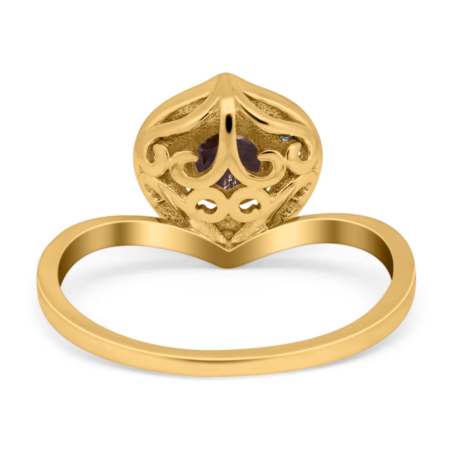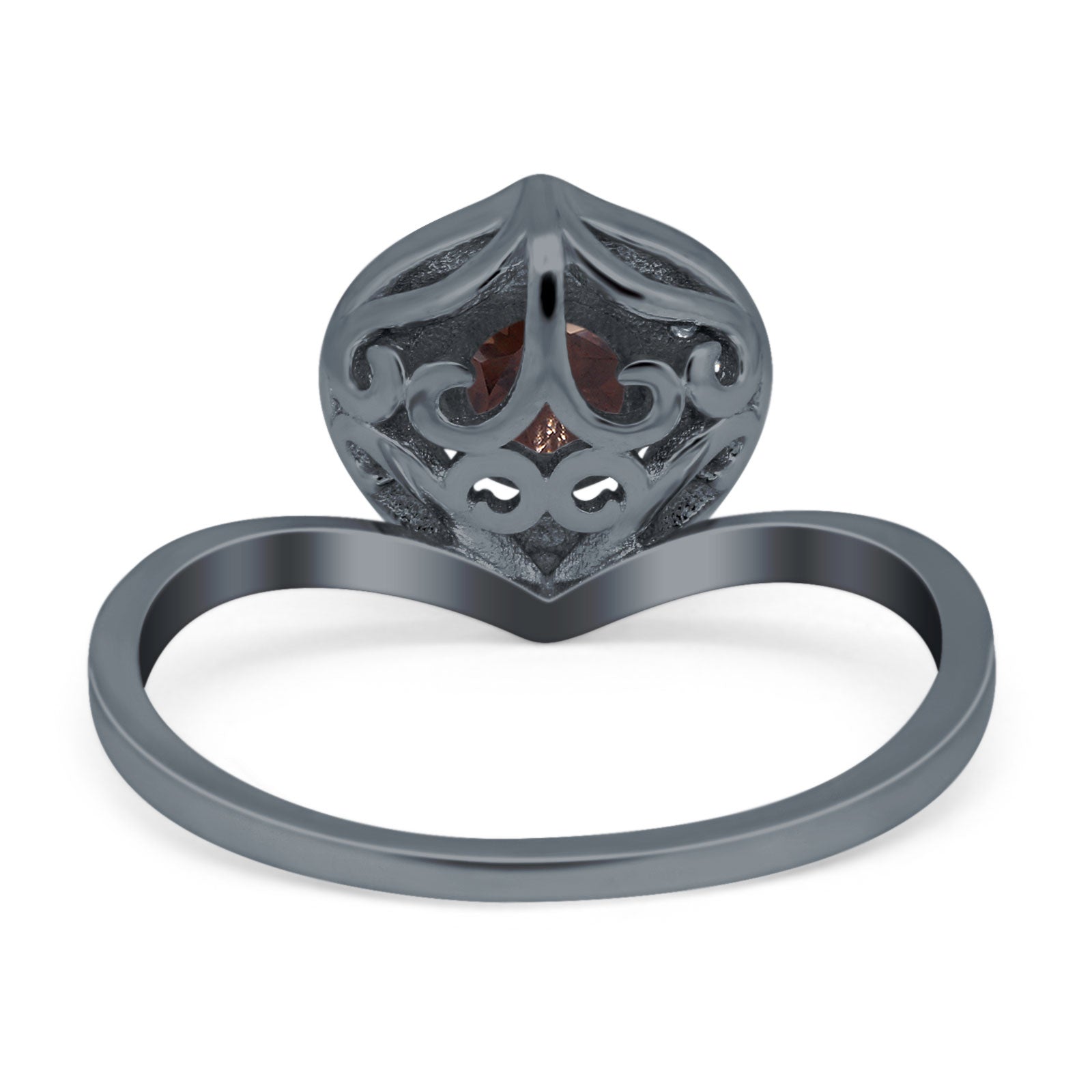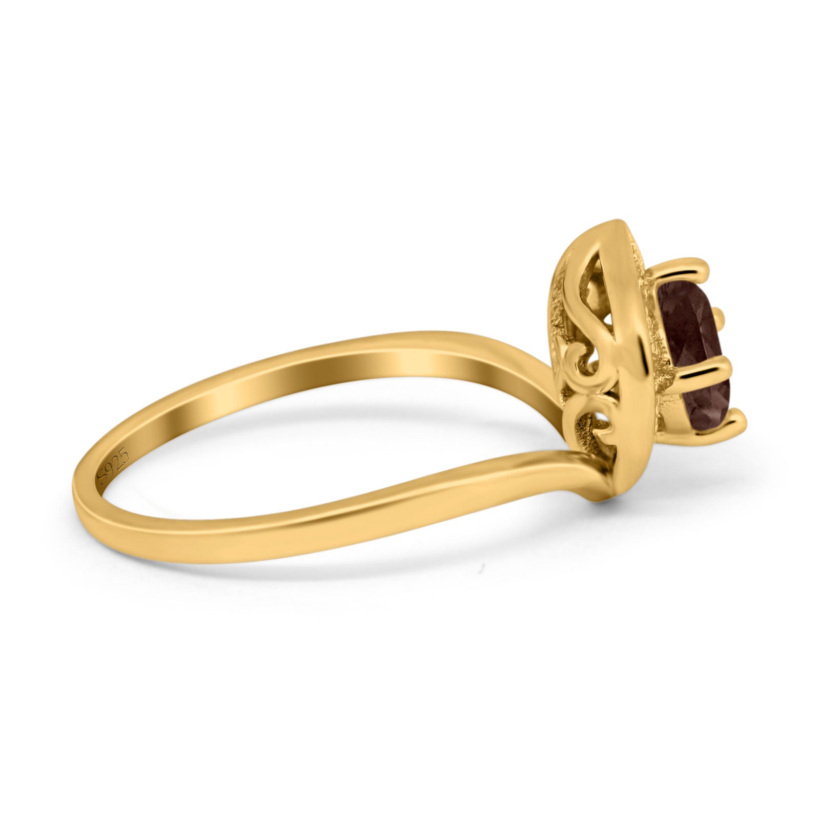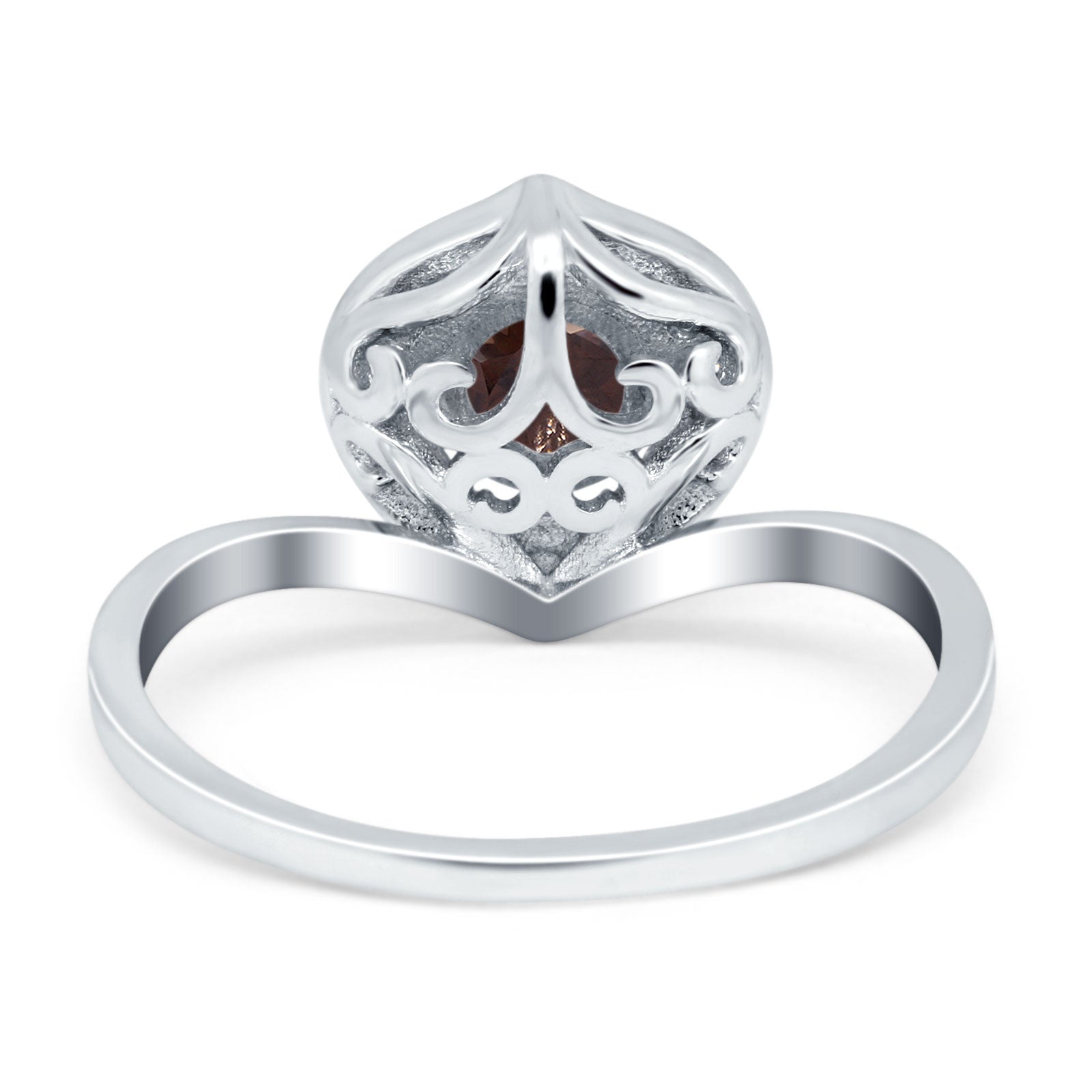 Vintage Style Round Natural Chocolate Smoky Quartz Leaf Style Ring 925 Sterling Silver
